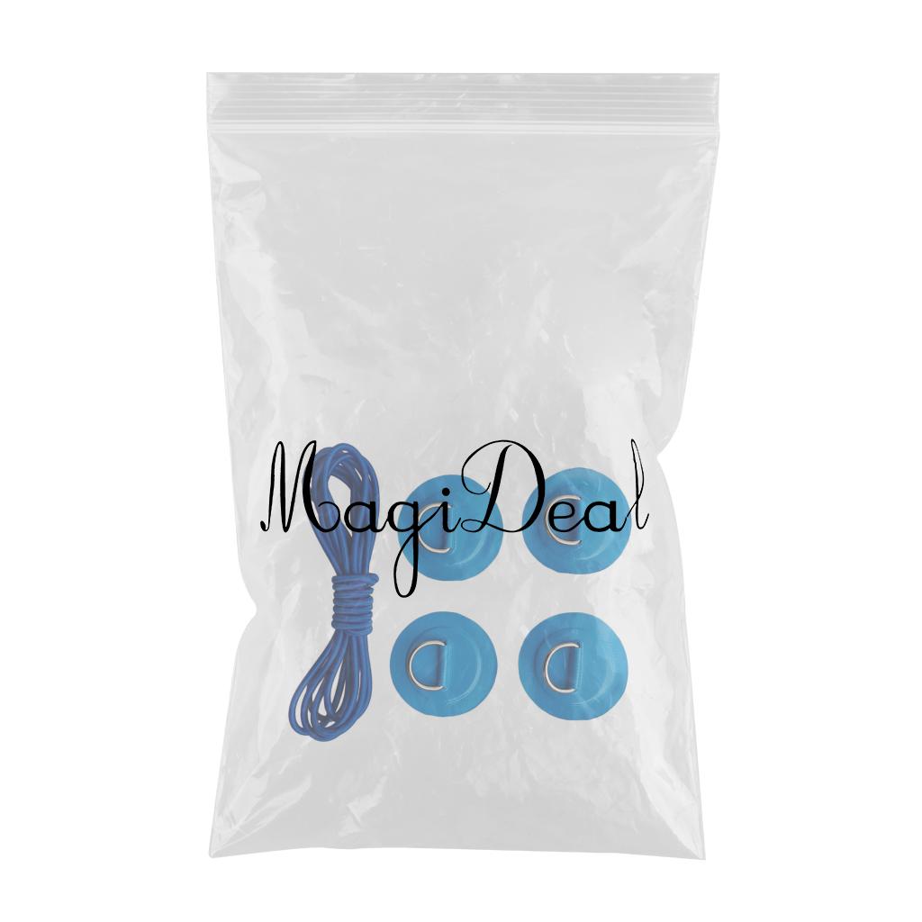 4 Pieces kayak inflatable boat D-ring round patch pad with 5mm 3.6m elastic shock cord, lightweight, strong, sturdy, long lasting and corrosion-resistant