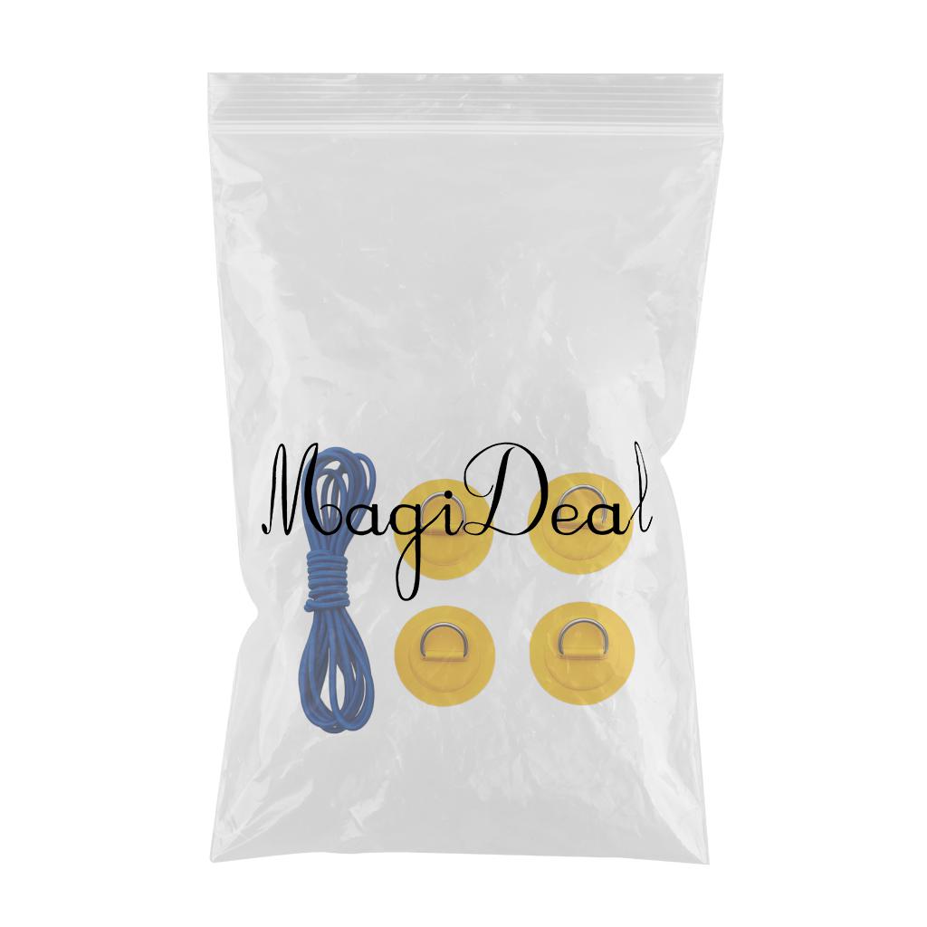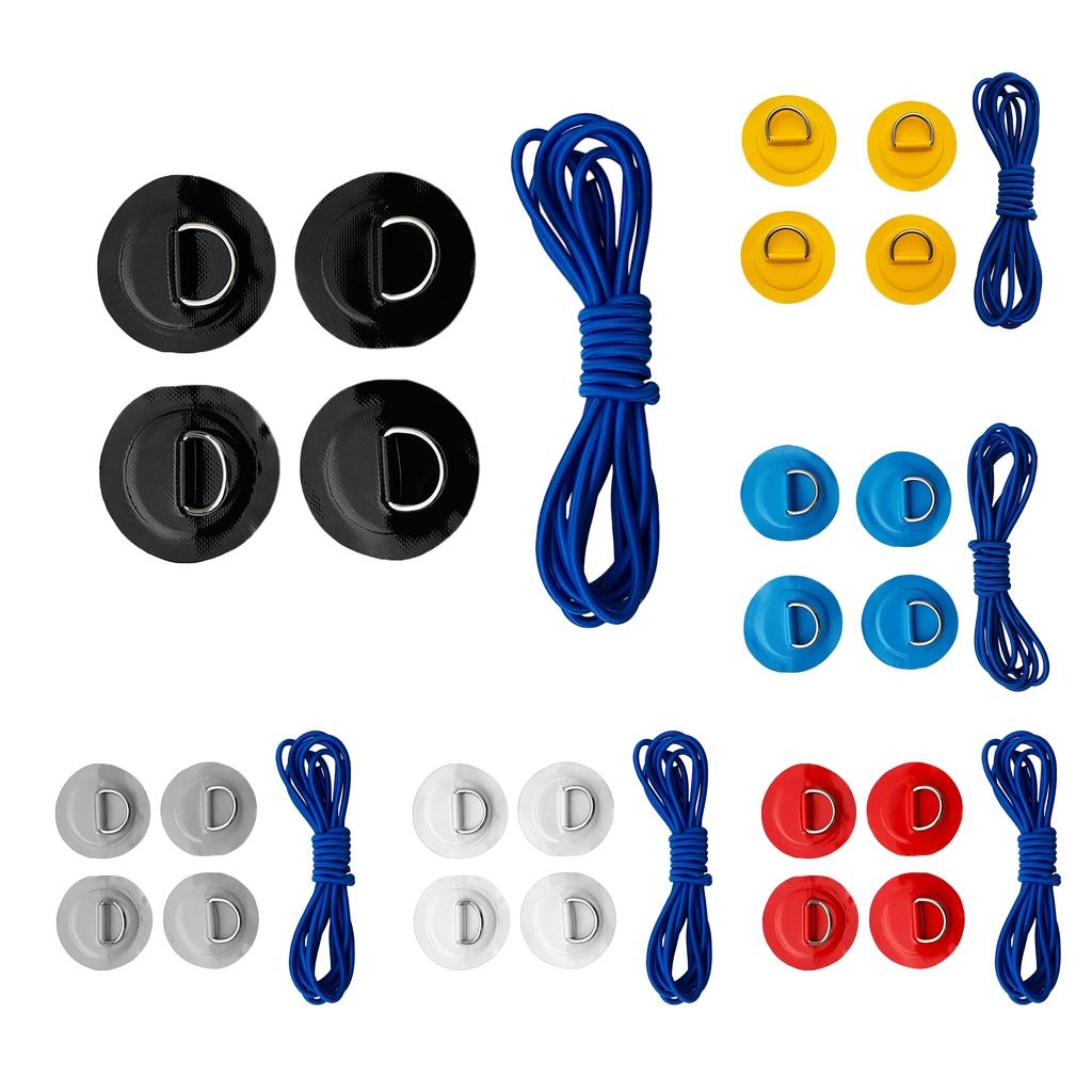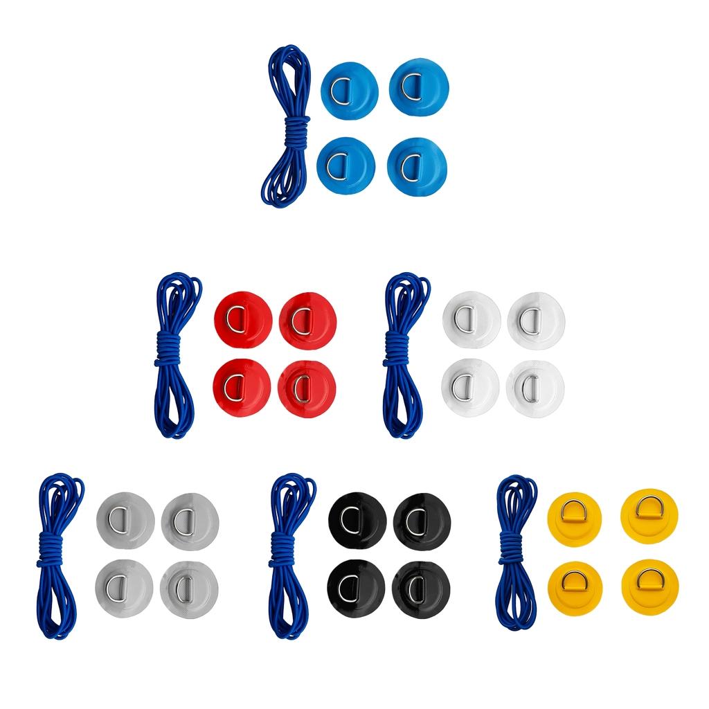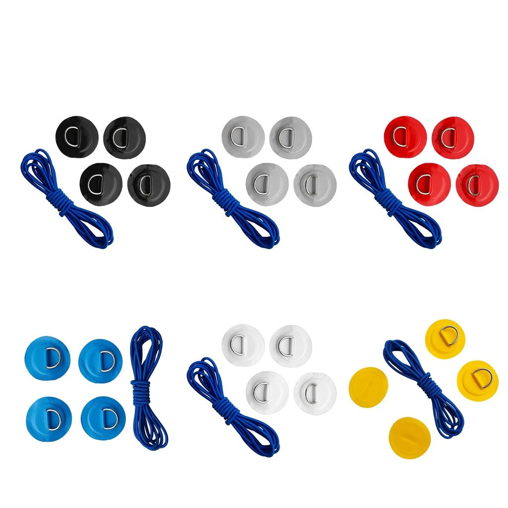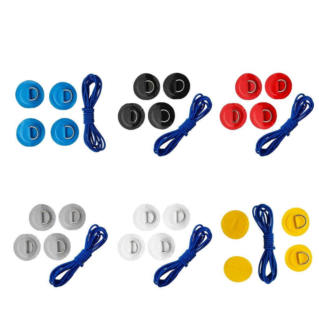 4 Pieces kayak inflatable boat D-ring round patch pad with 5mm 3.6m elastic shock cord, lightweight, strong, sturdy, long lasting and corrosion-resistant