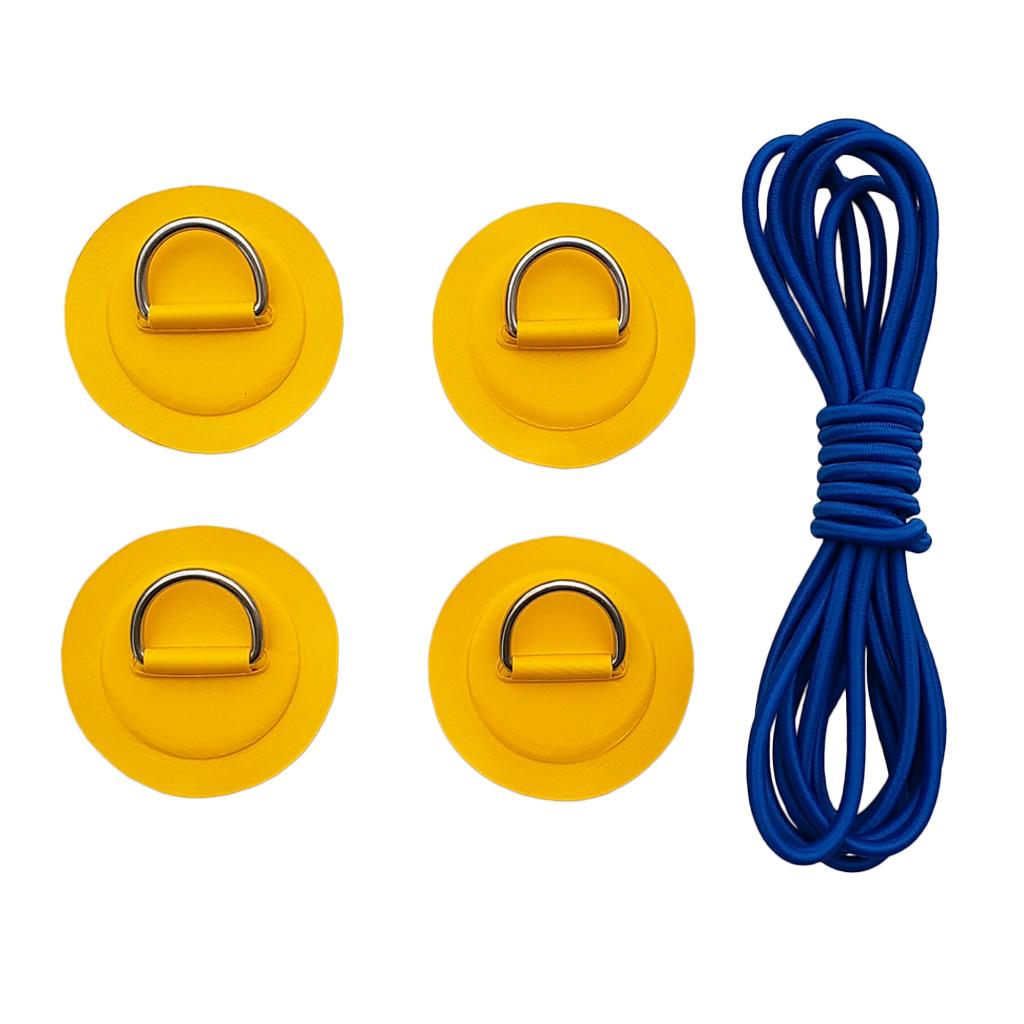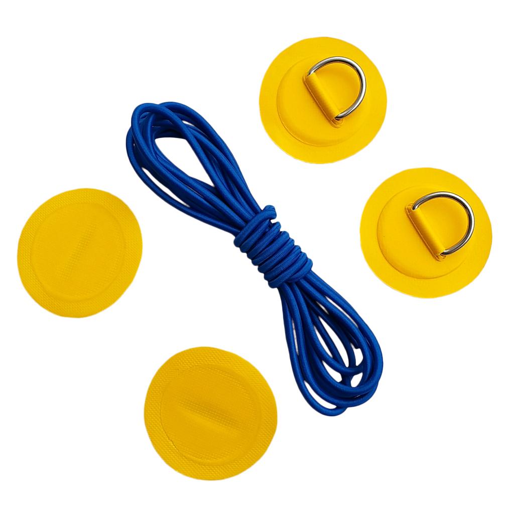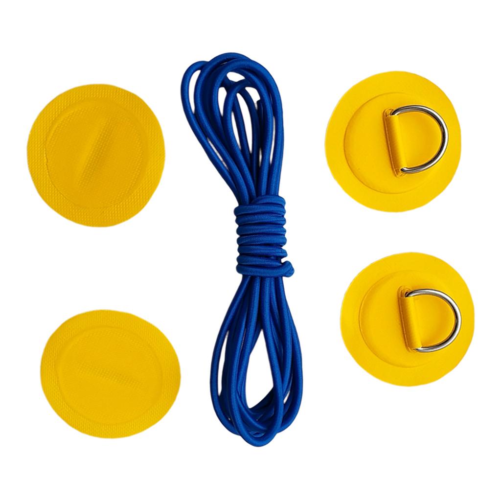 4 Pieces Inflatable Boat Kayak SUP D-ring Patch & Shock Bungee Cord Yellow
