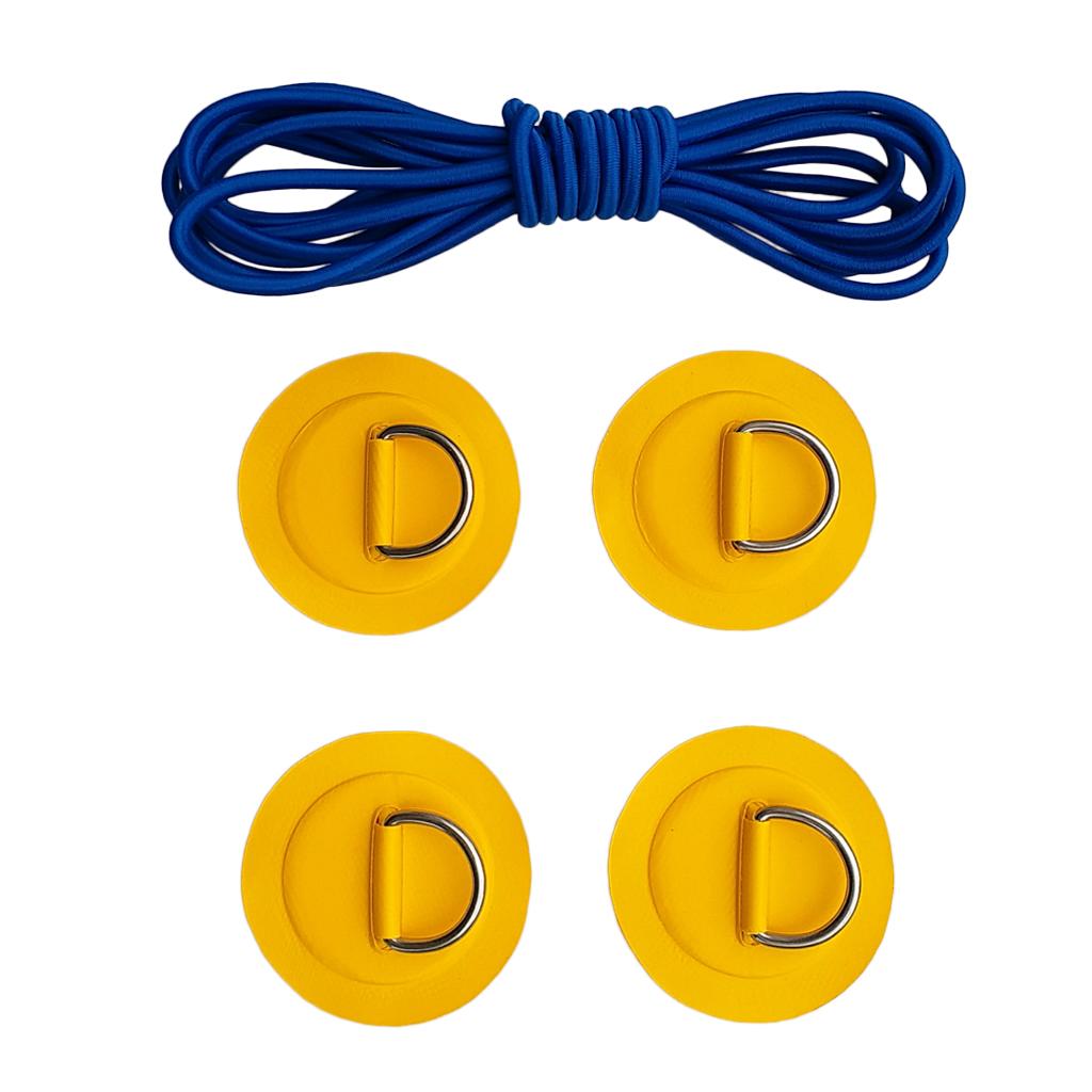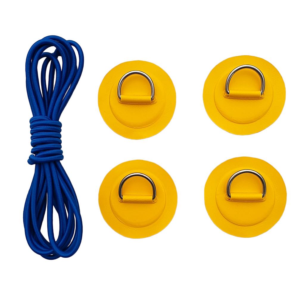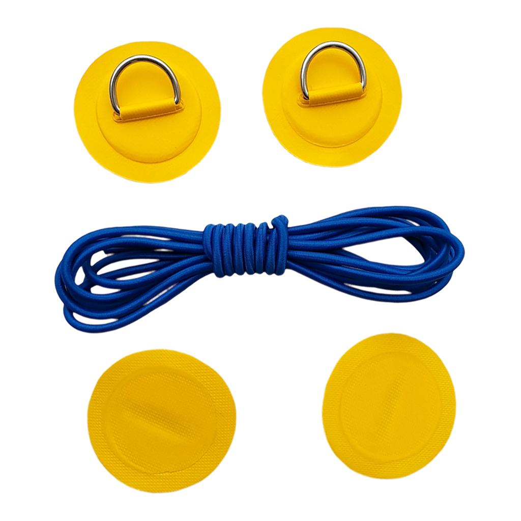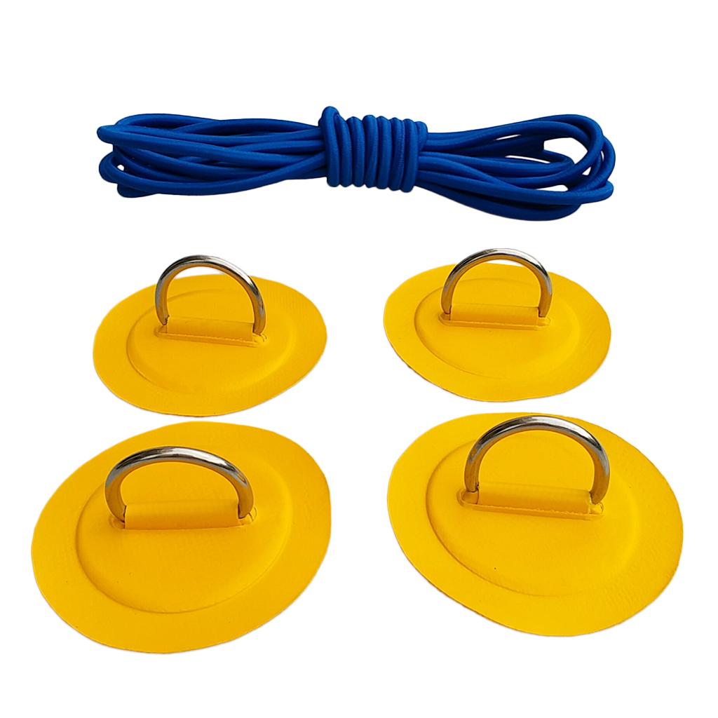 4 Pieces Inflatable Boat Kayak SUP D-ring Patch & Shock Bungee Cord Yellow
