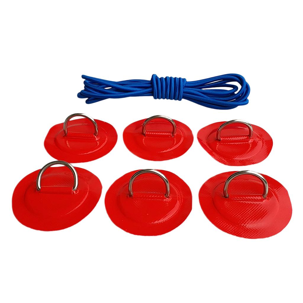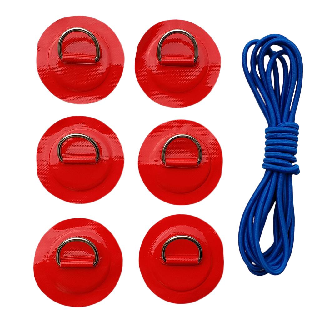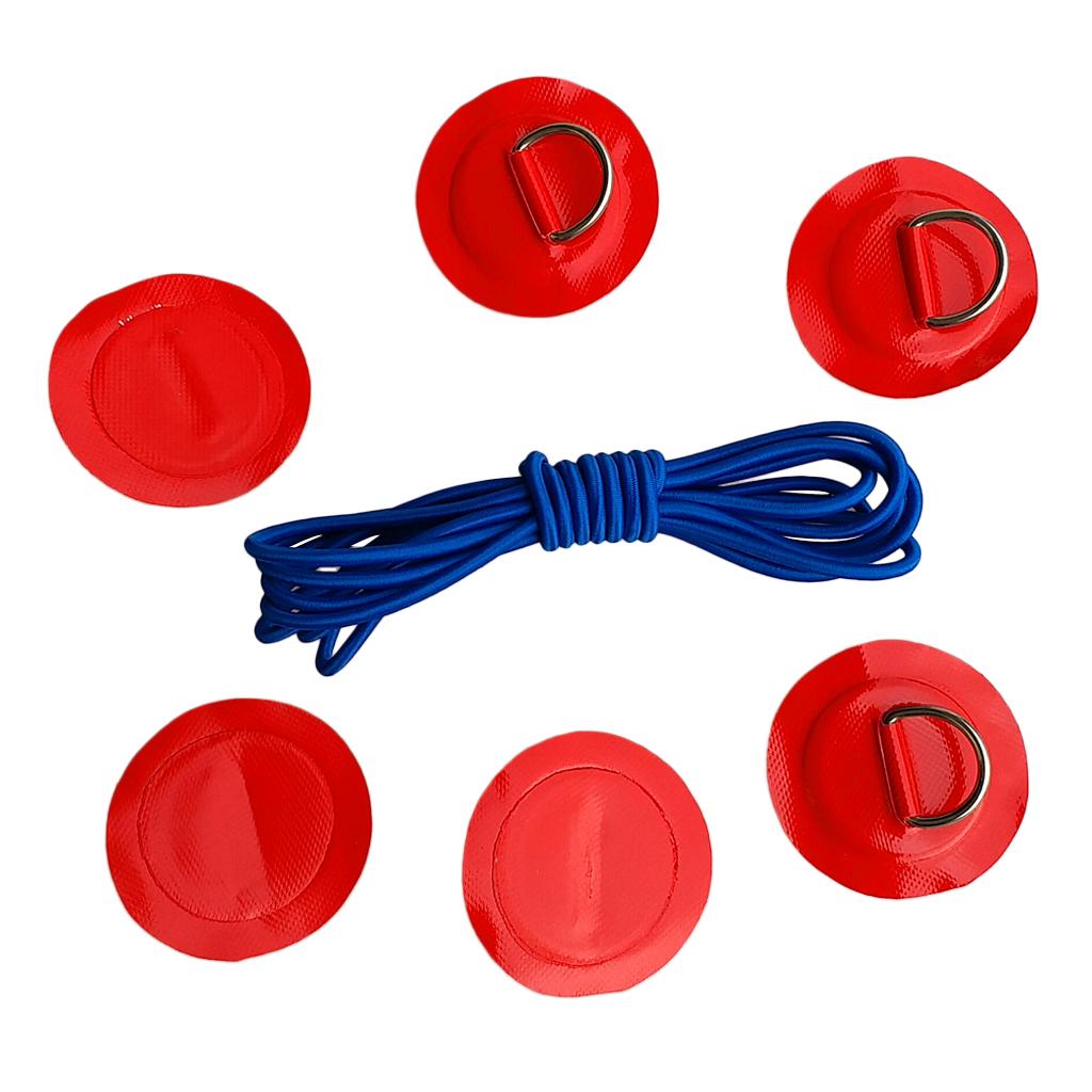 6 Pieces Inflatable Boat Kayak SUP D-ring Patch & Elastic Shock Cord Red