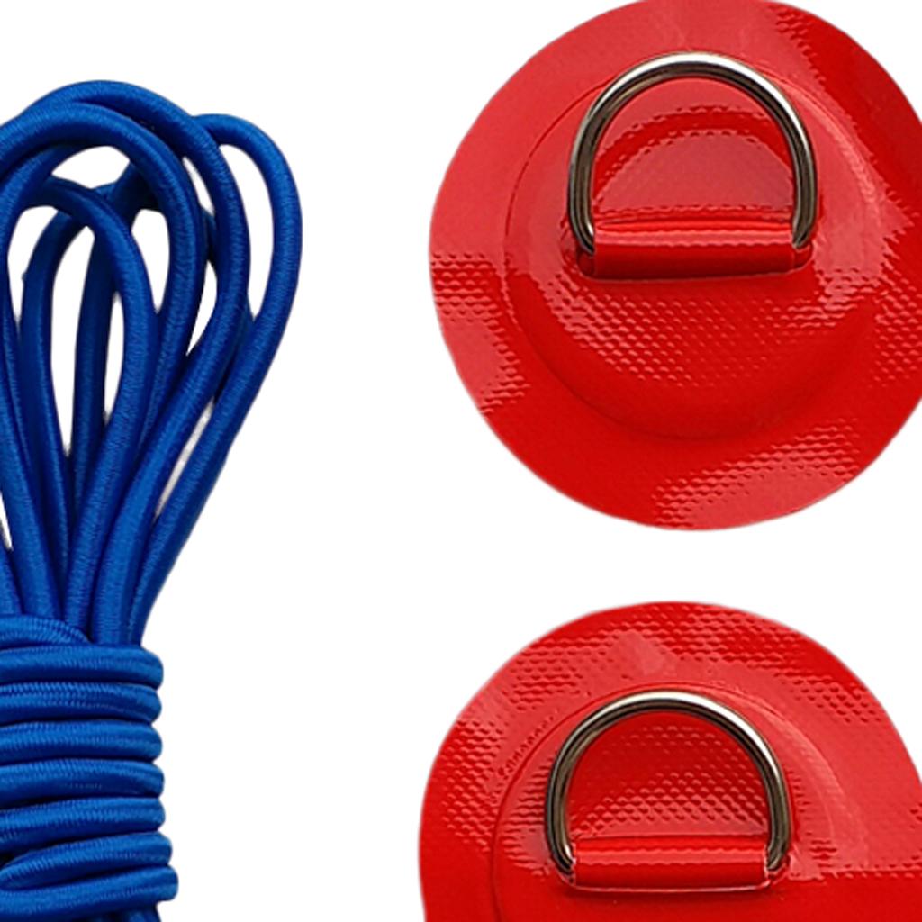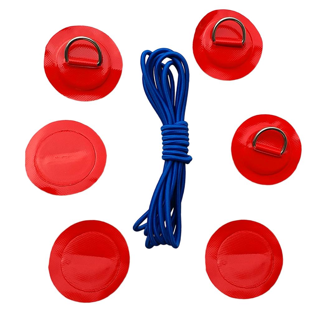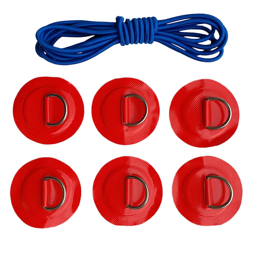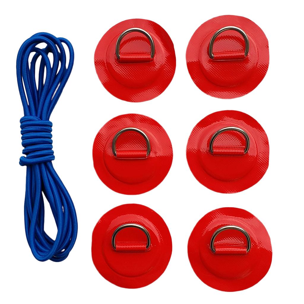6 Pieces Inflatable Boat Kayak SUP D-ring Patch & Elastic Shock Cord Red