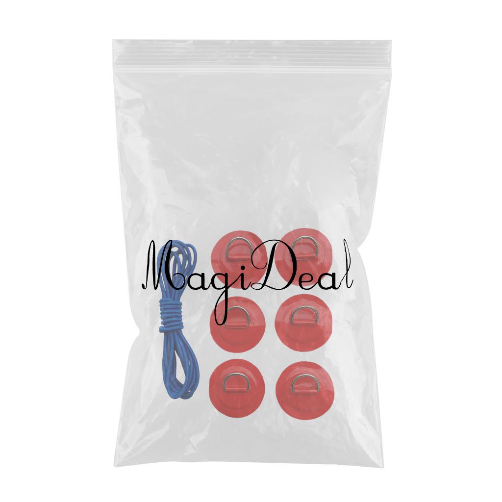 6 Pieces kayak inflatable boat D-ring round patch pad with 5mm 5m elastic shock cord, lightweight, strong, sturdy, long lasting and corrosion-resistant