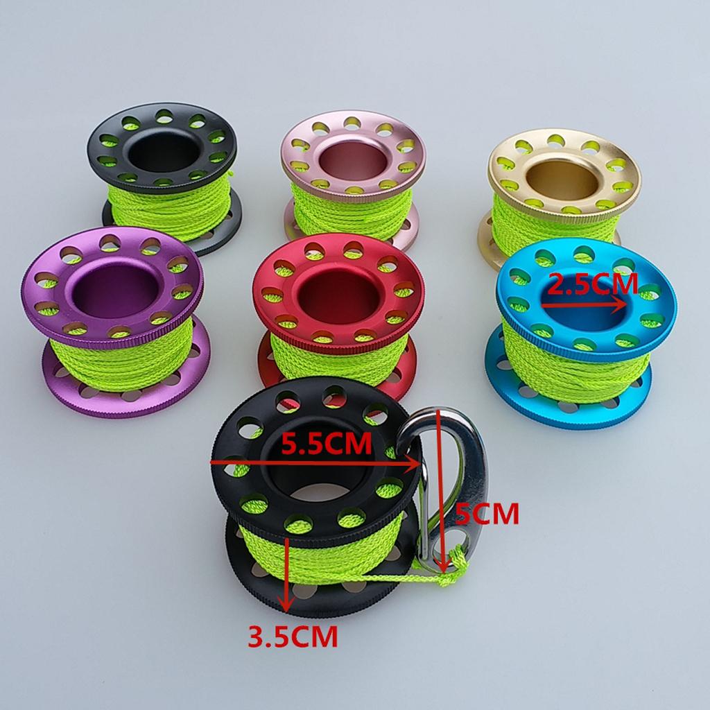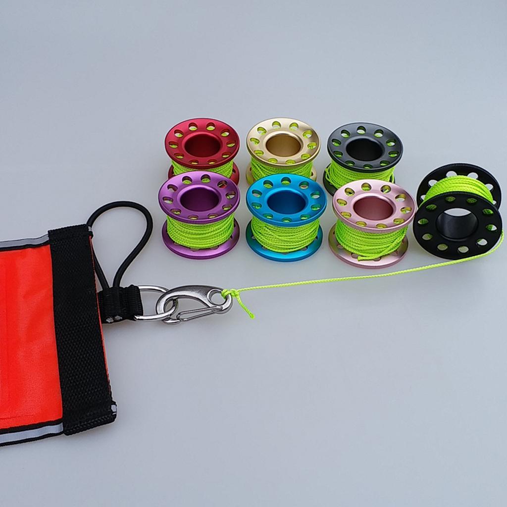 Scuba diving aluminum alloy finger spool reel with 10m/393.70inch high visibility colorful wear-resistant line, compact, lightweight, durable and portable.