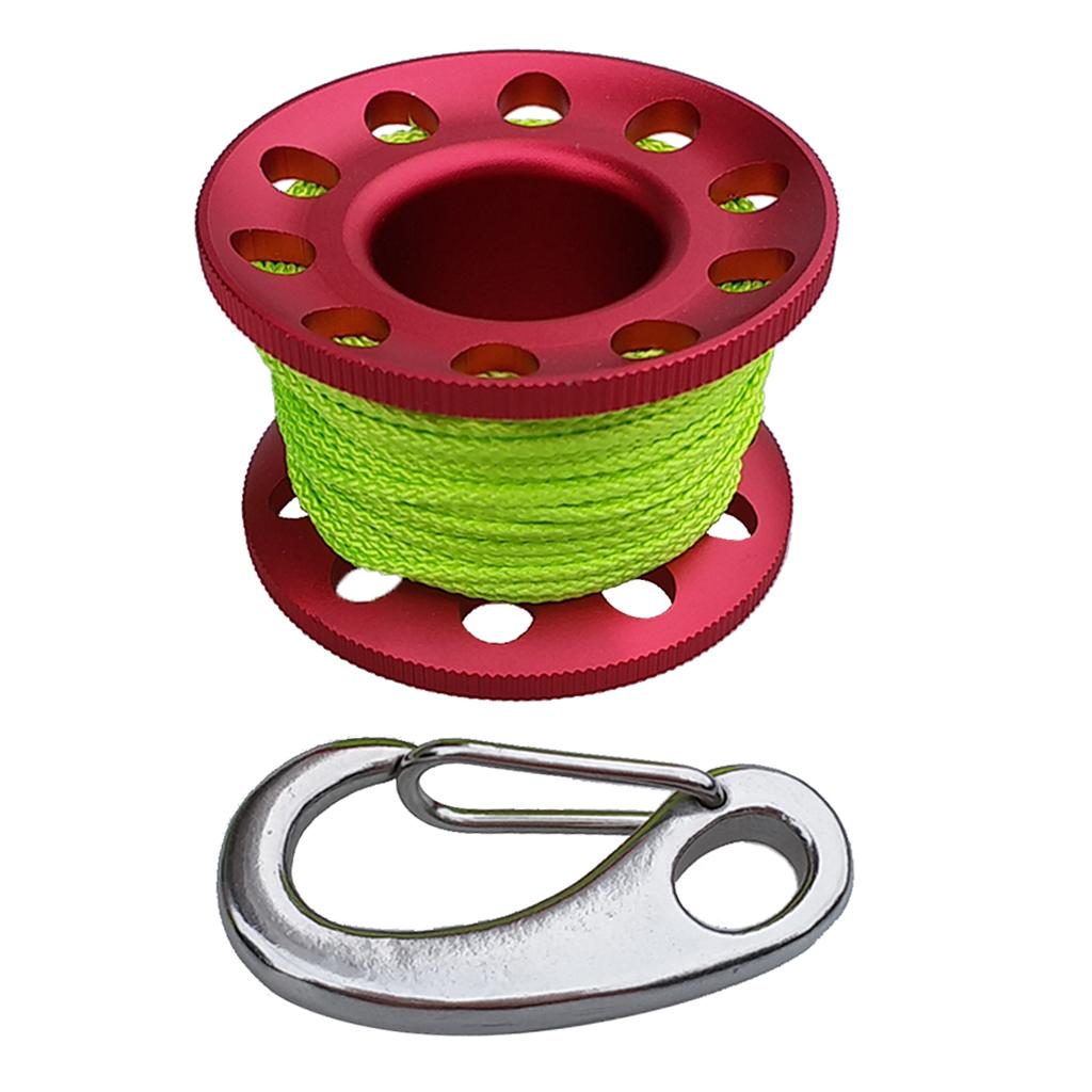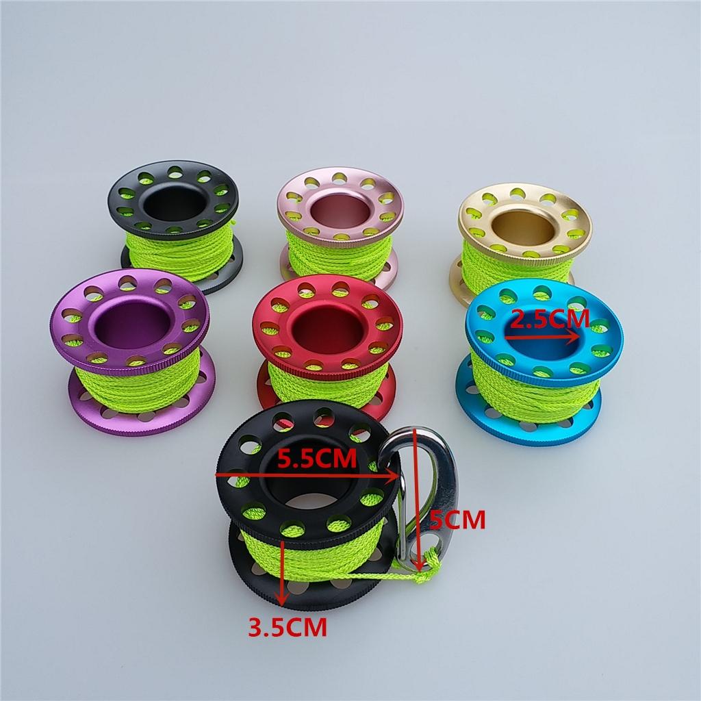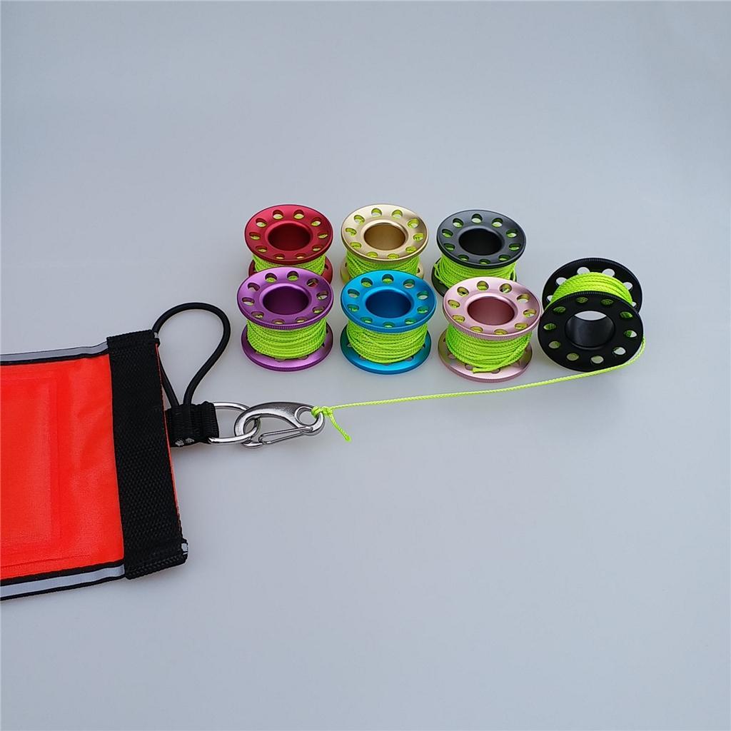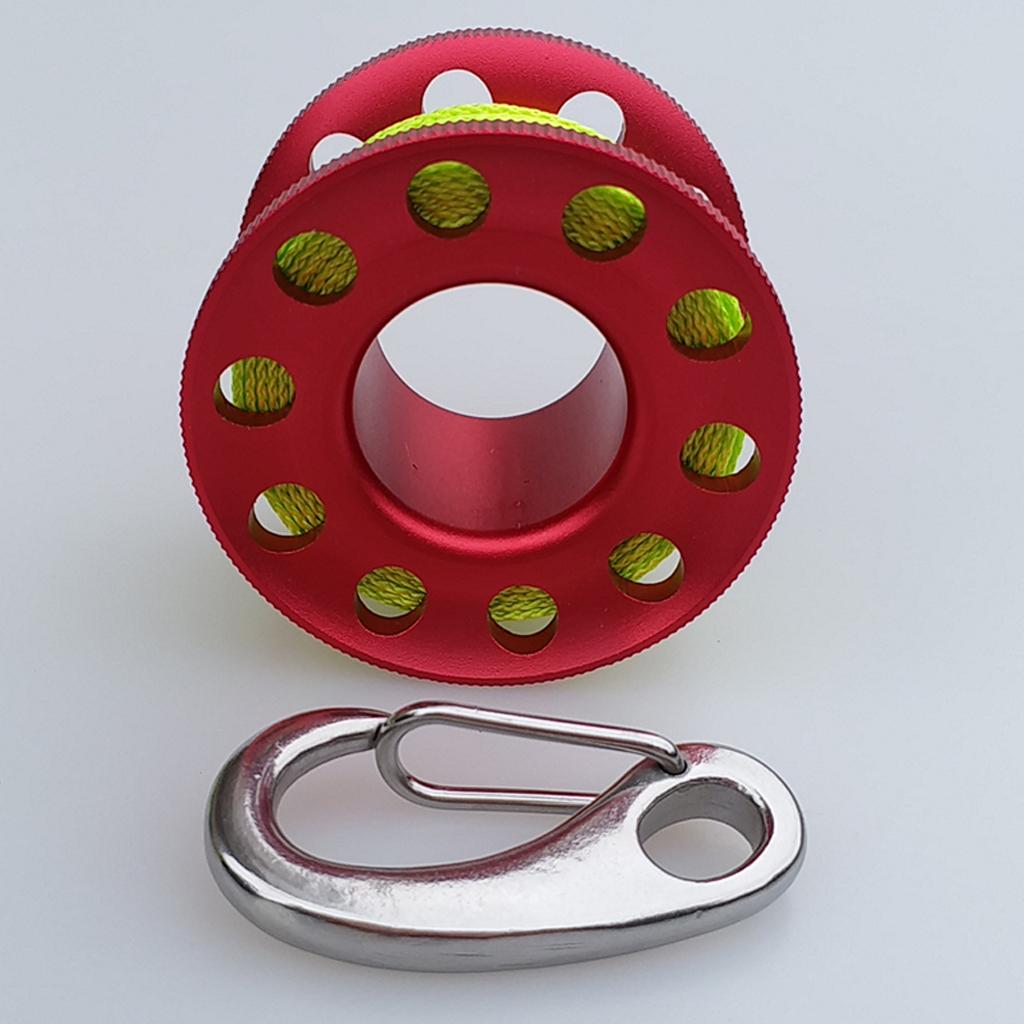 Scuba diving aluminum alloy finger spool reel with 10m/393.70inch high visibility colorful wear-resistant line, compact, lightweight, durable and portable.