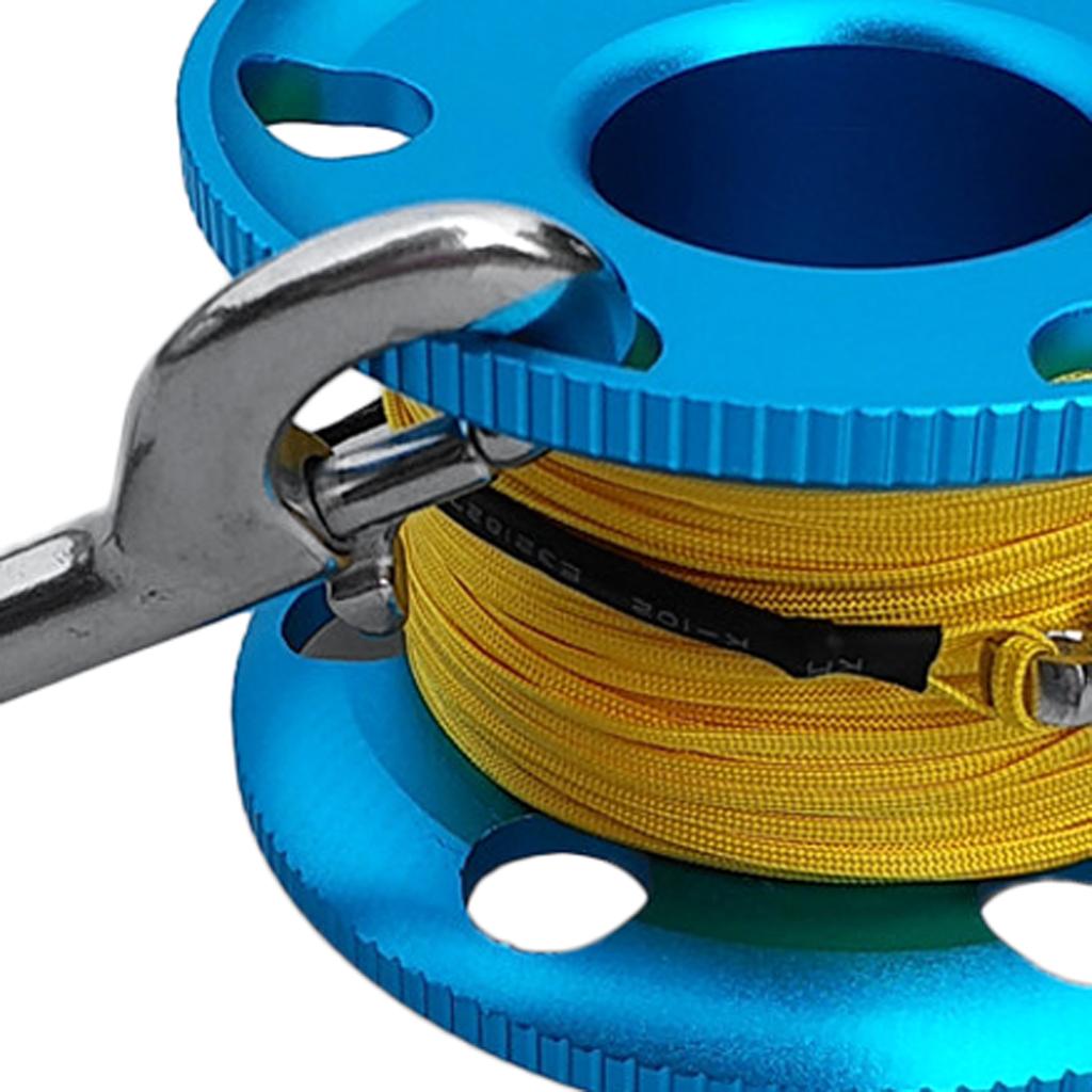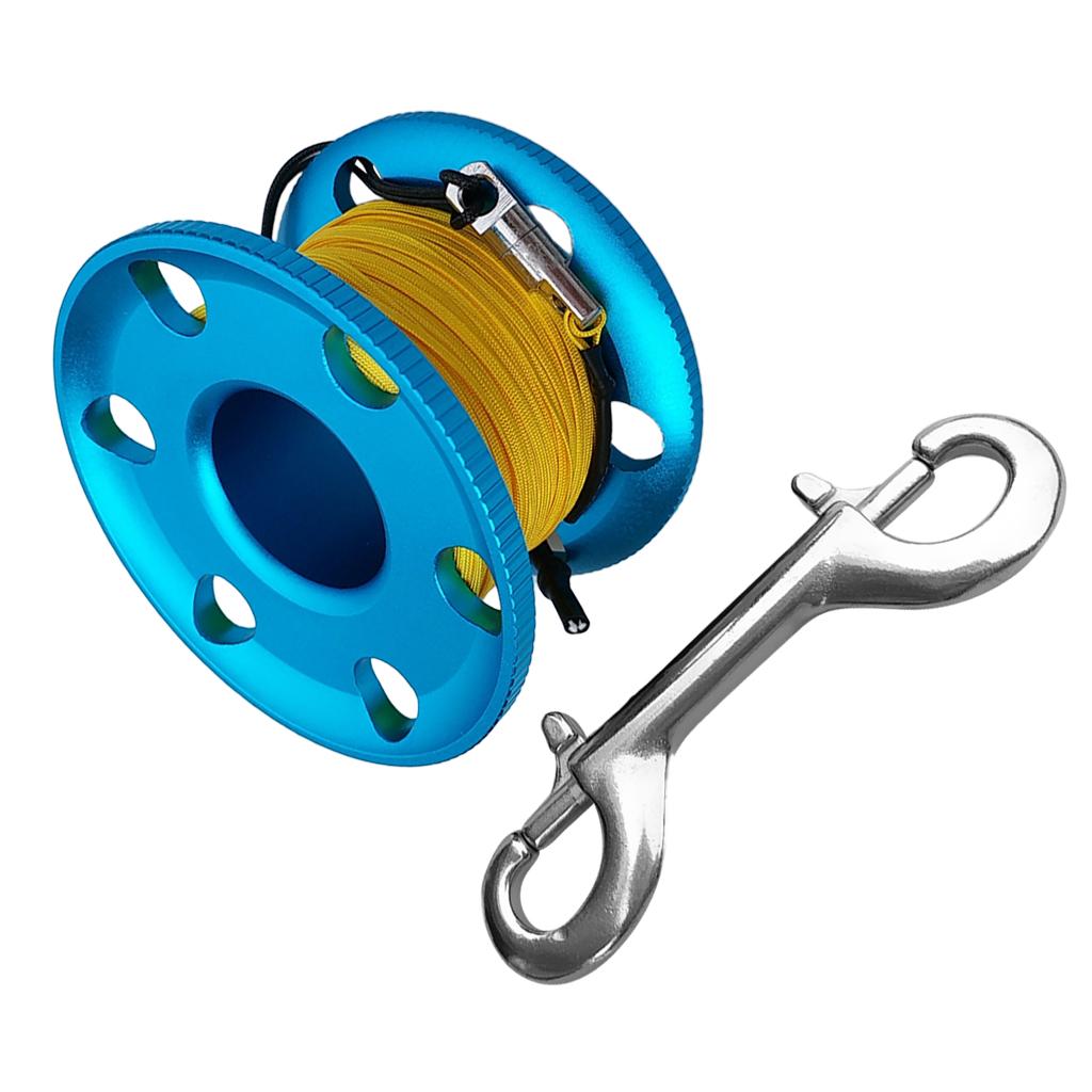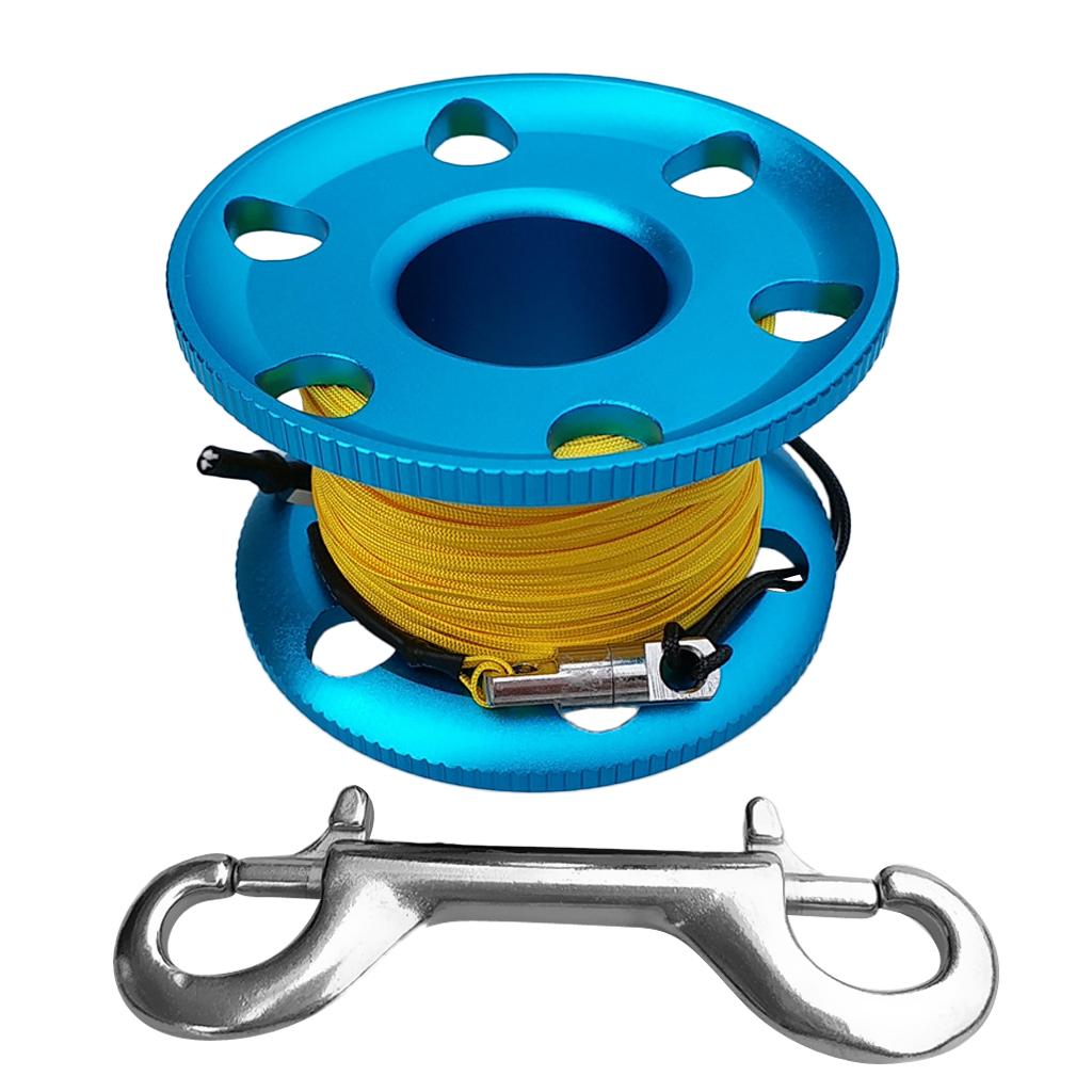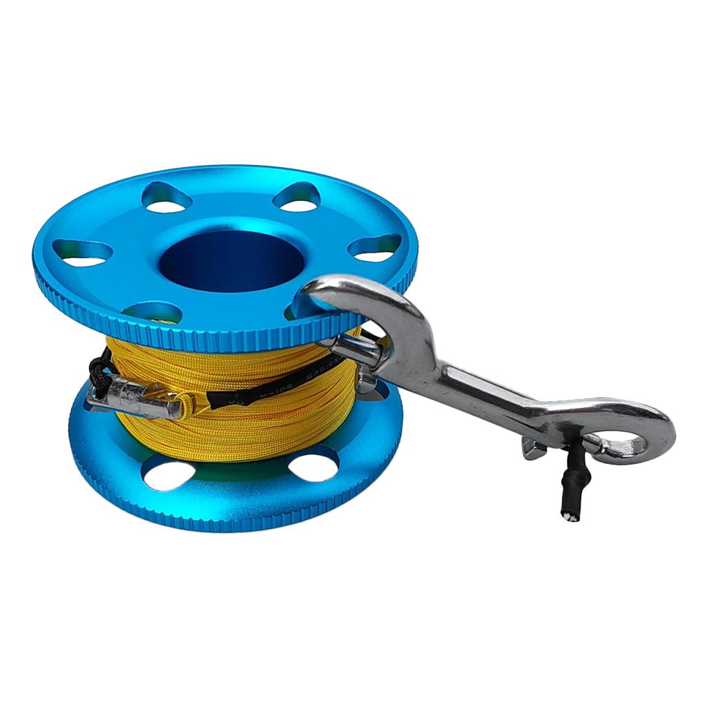 Alloy Scuba Diving Finger Spool Reel with Line &Double Ended Hook Blue-20m