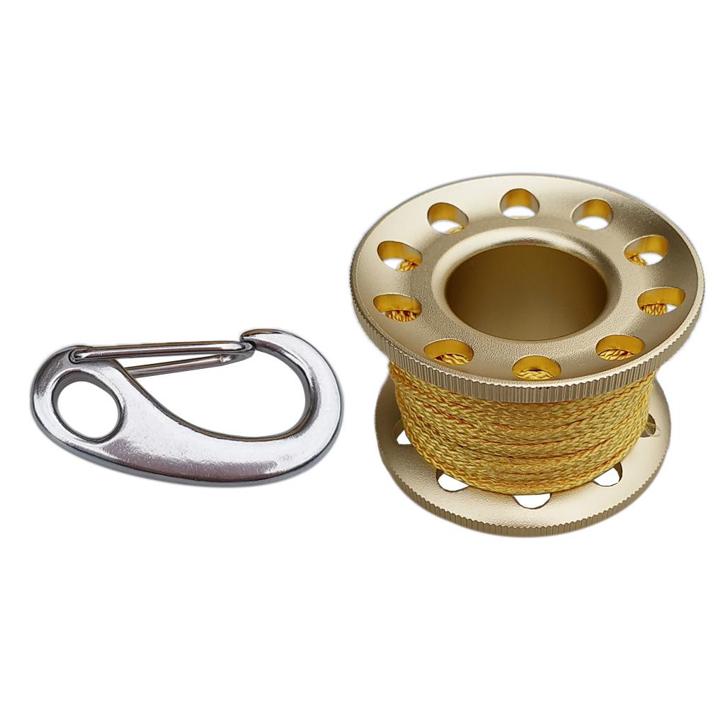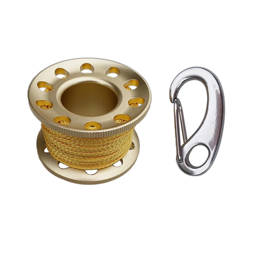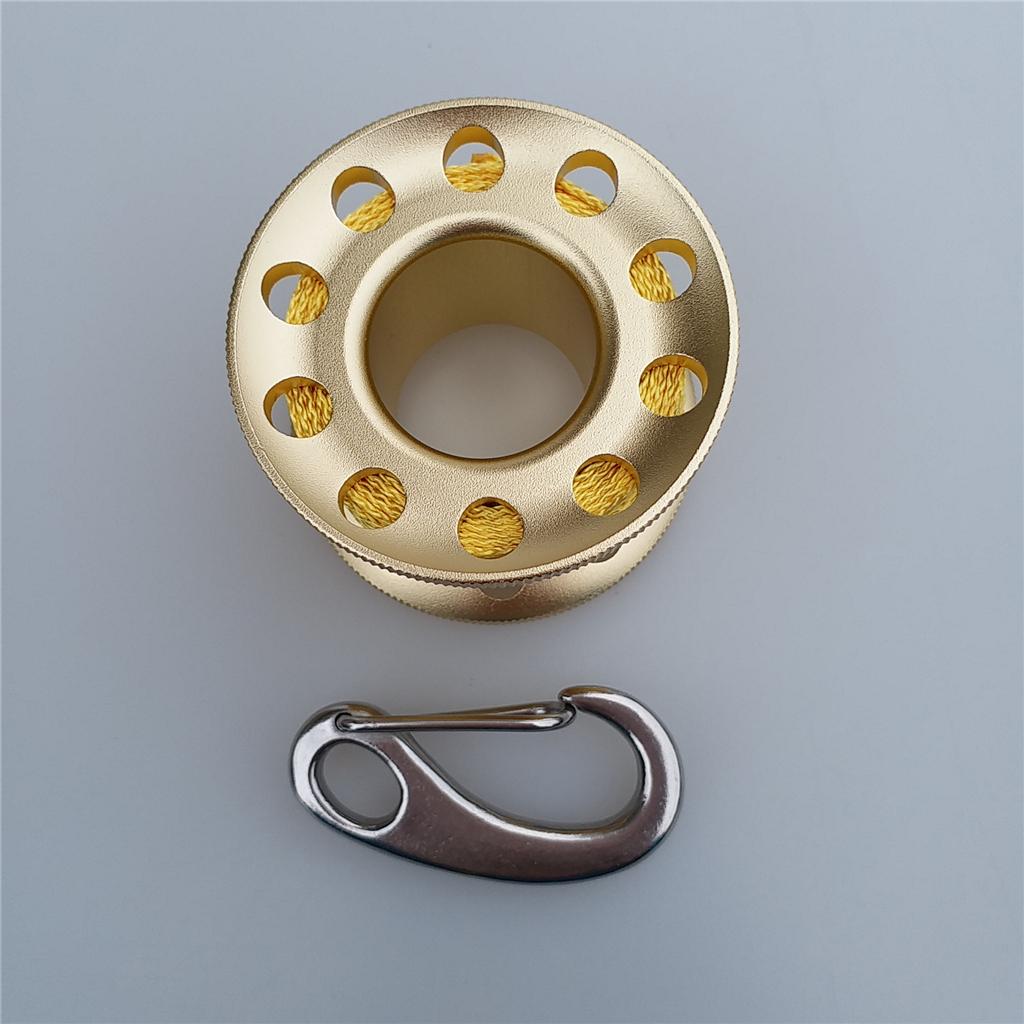 Aluminum Scuba Diving Finger Spool Reel+10m Line+Snap Quick Link Golden