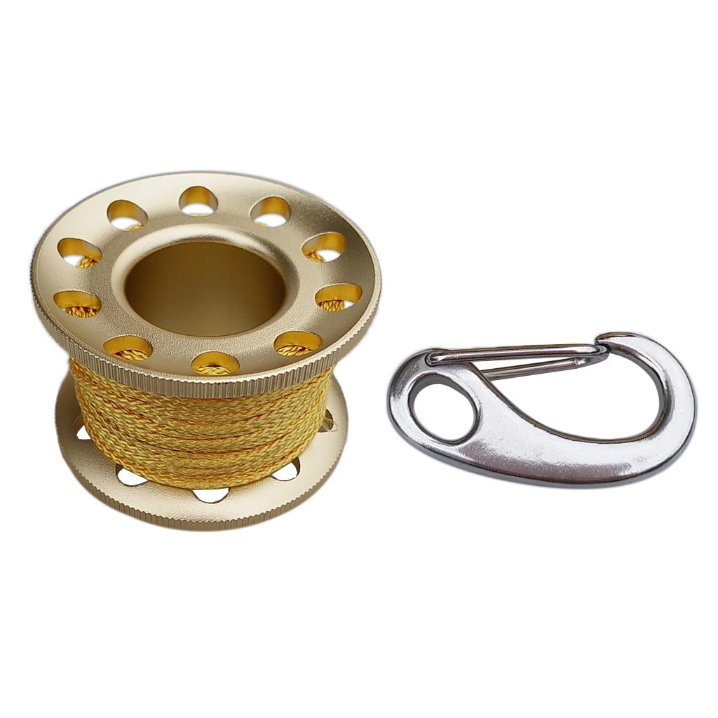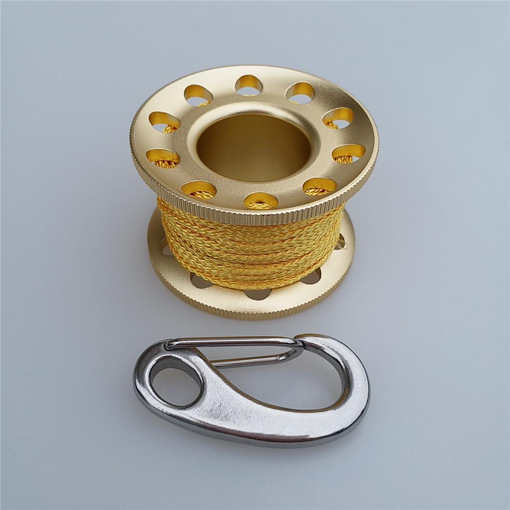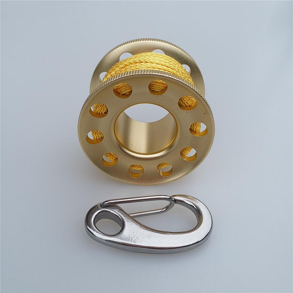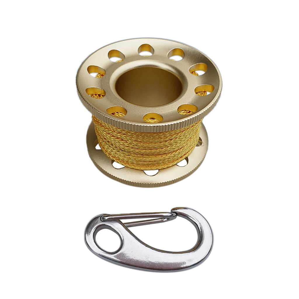 Aluminum Scuba Diving Finger Spool Reel+10m Line+Snap Quick Link Golden