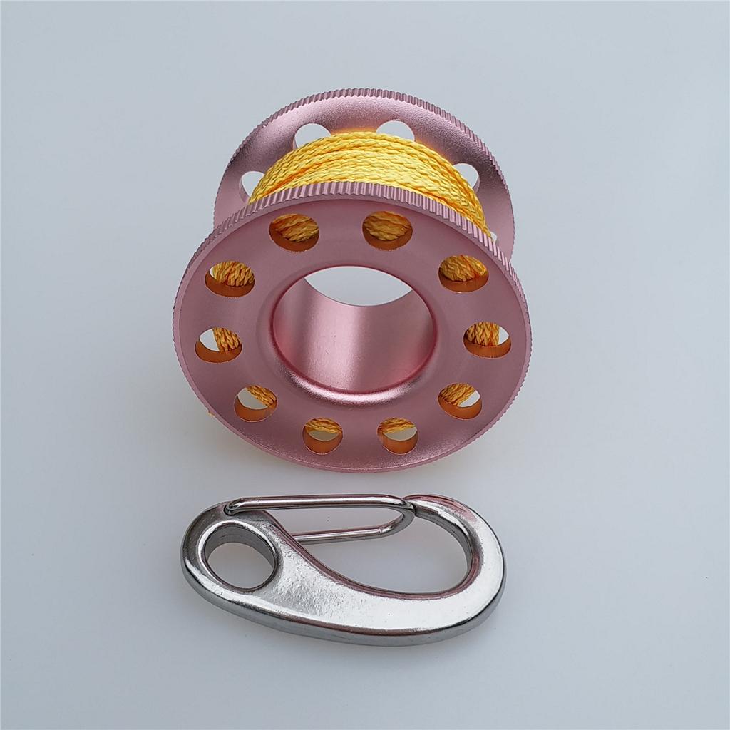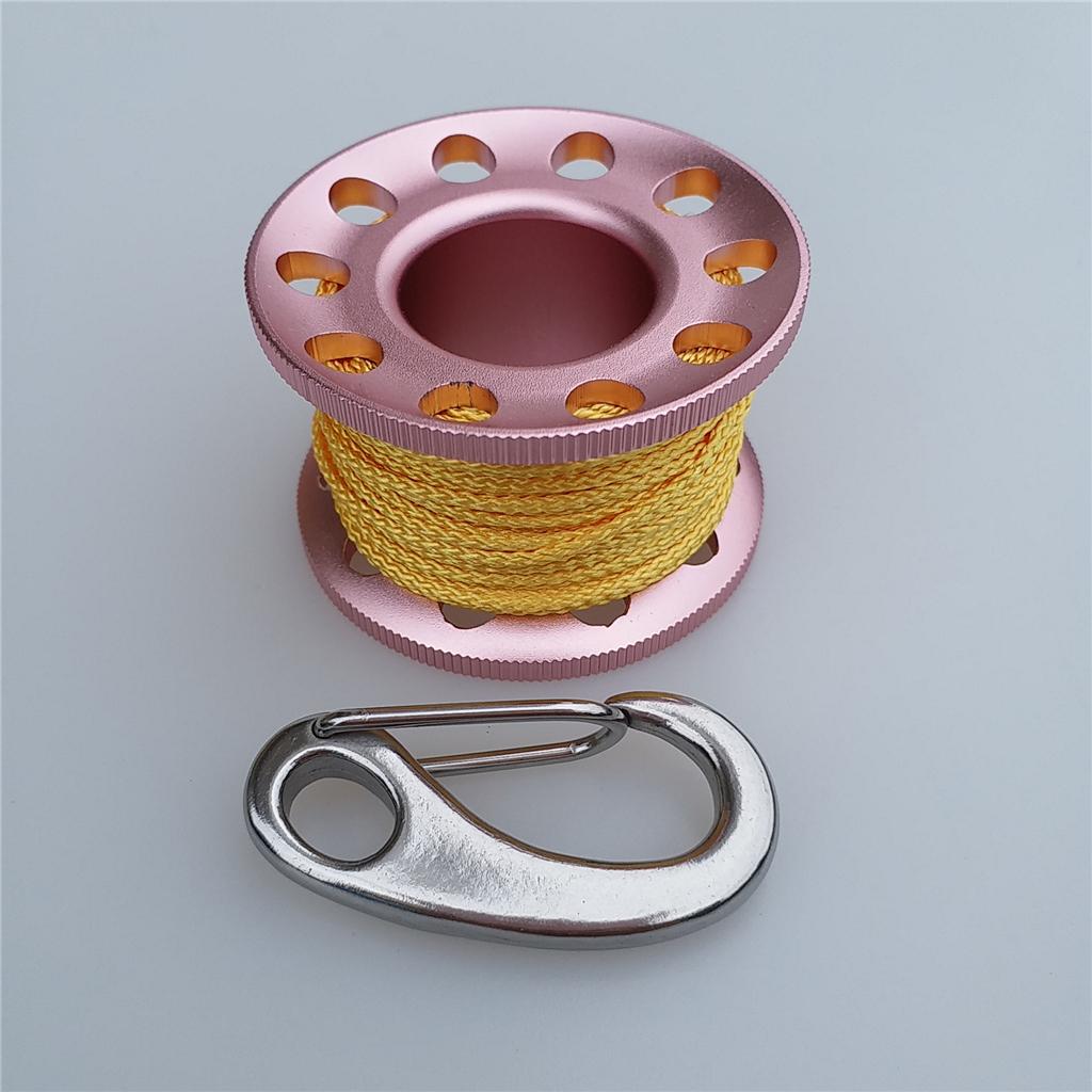 Aluminum Scuba Diving Finger Spool Reel+10m Line+Snap Quick Link Pink