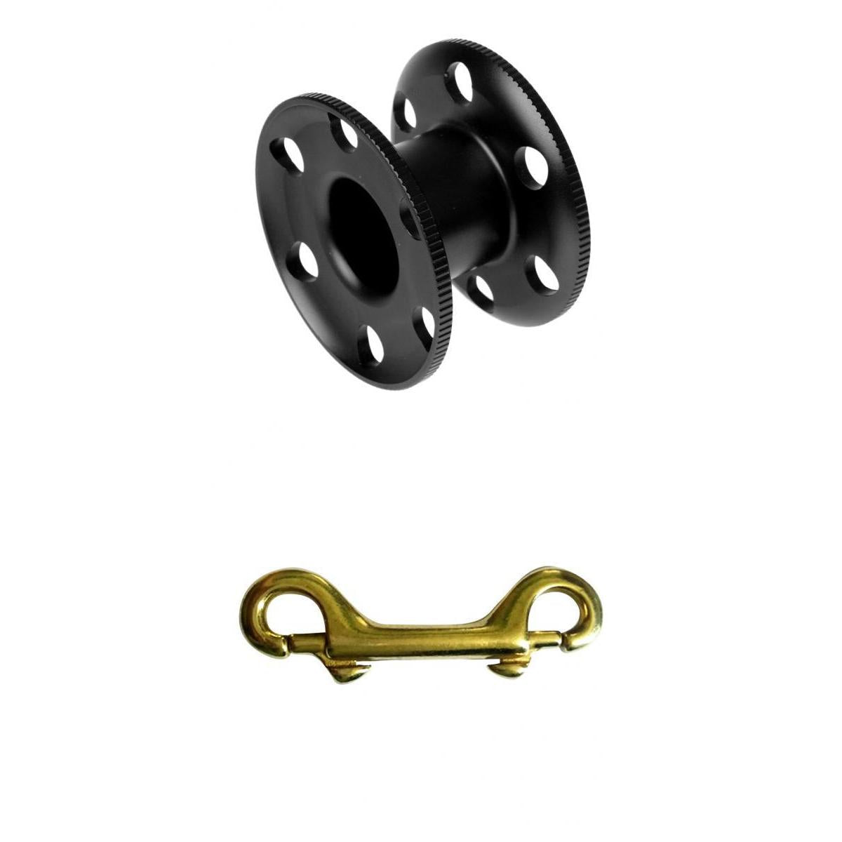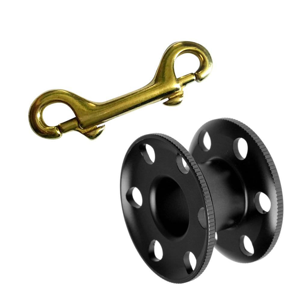 1 Piece black aluminum alloy diving finger spool with 1 piece brass double end snap hooks.