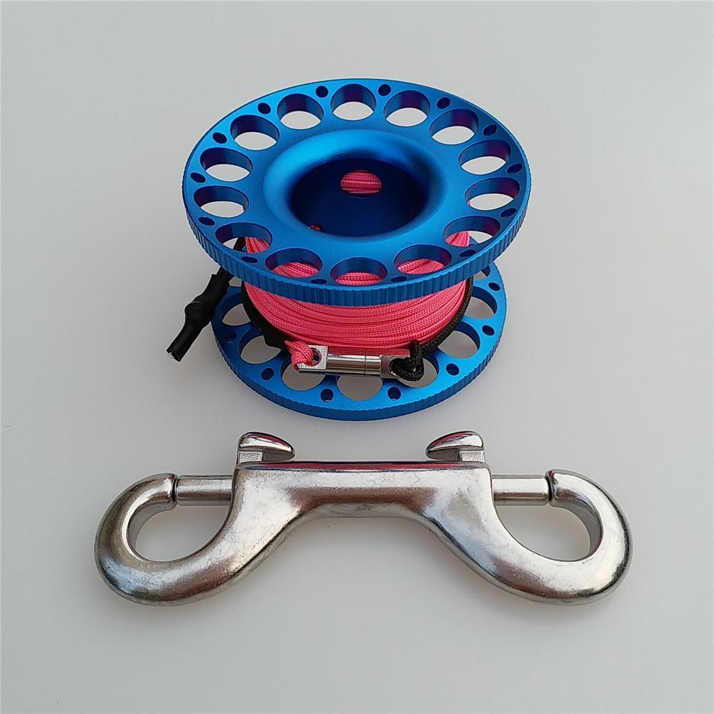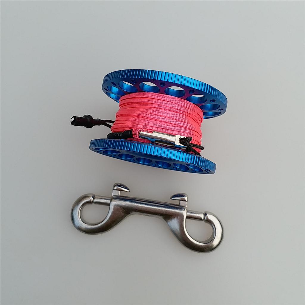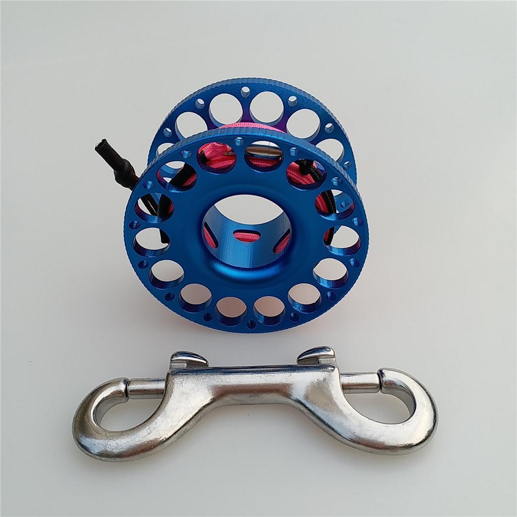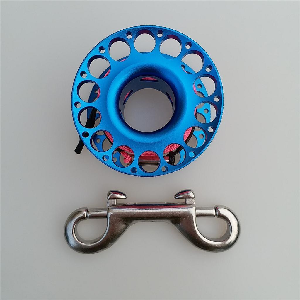 -Scuba diving aluminum alloy compact finger spool reel with 15m/50ft high visibility wear-resistant line.