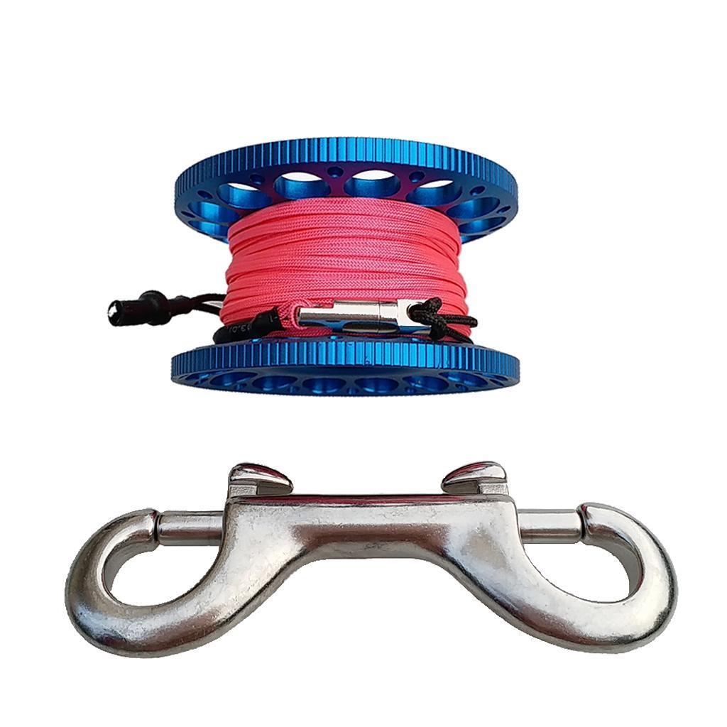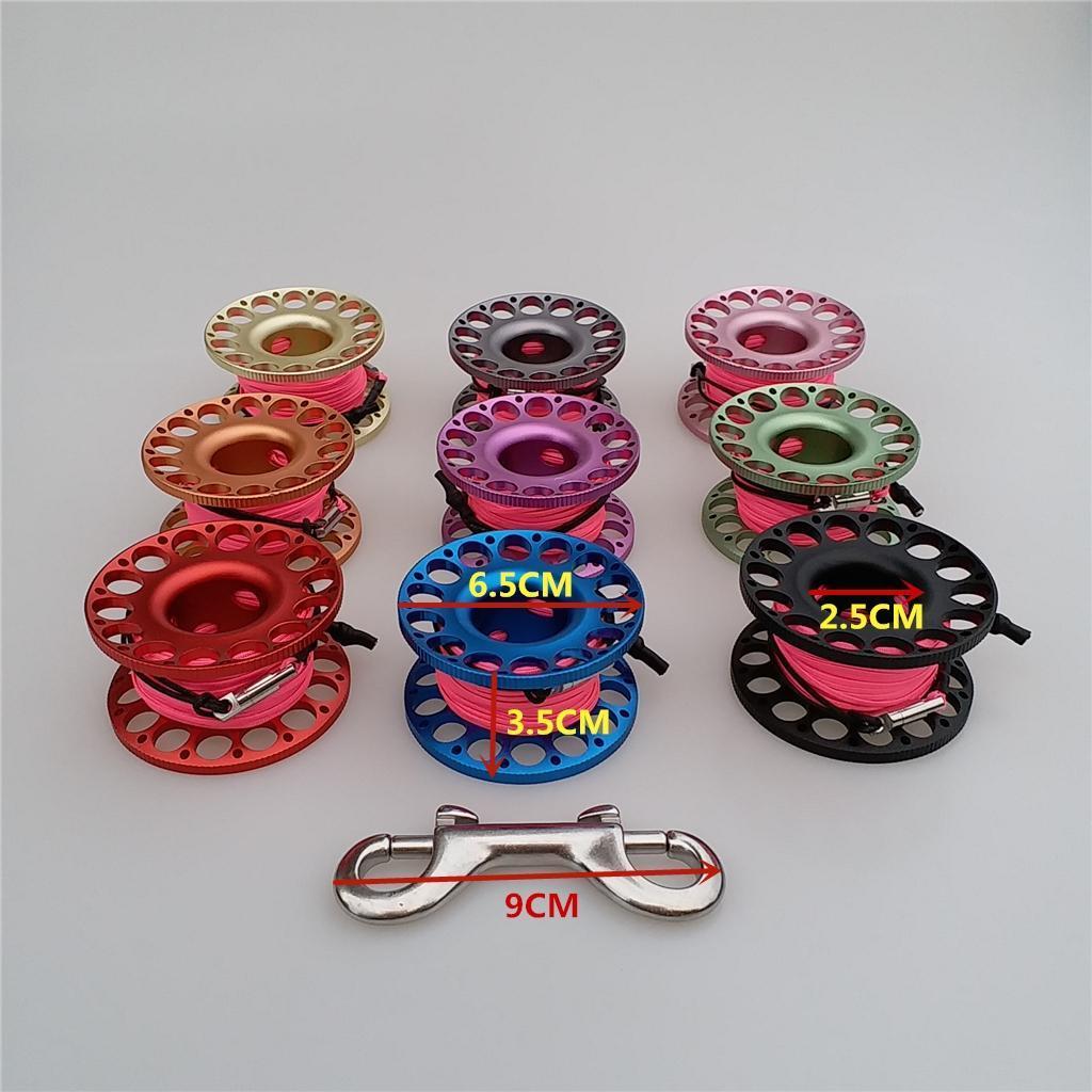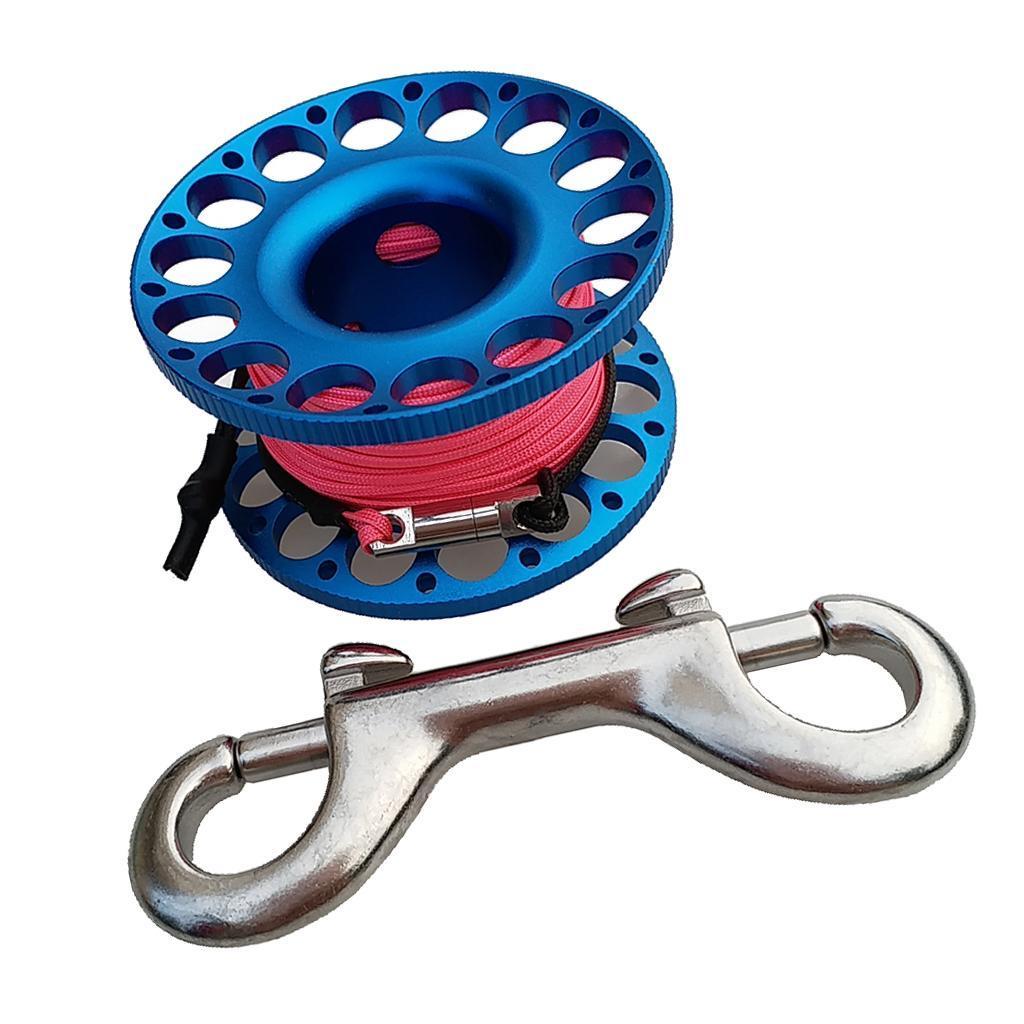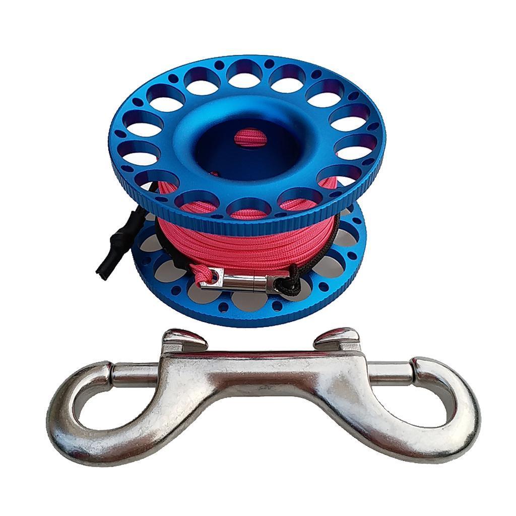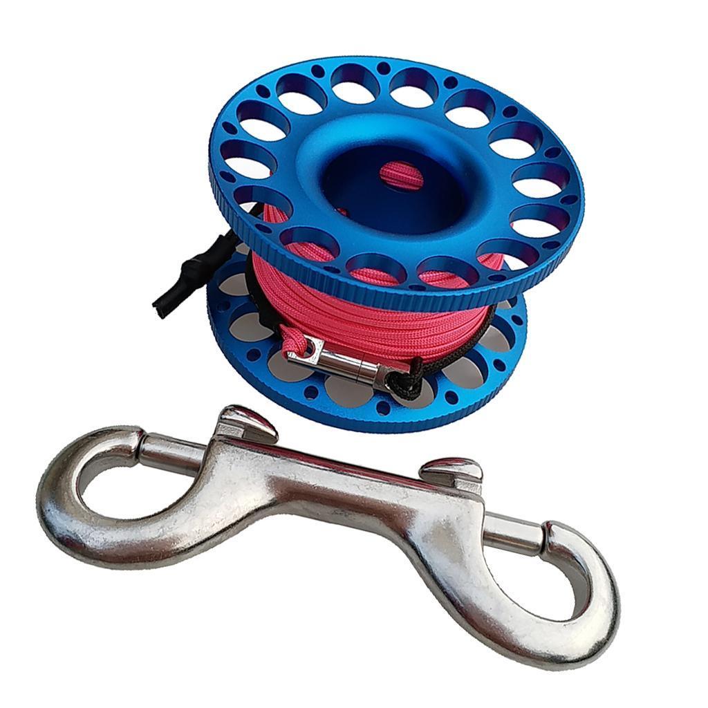 -Scuba diving aluminum alloy compact finger spool reel with 15m/50ft high visibility wear-resistant line.