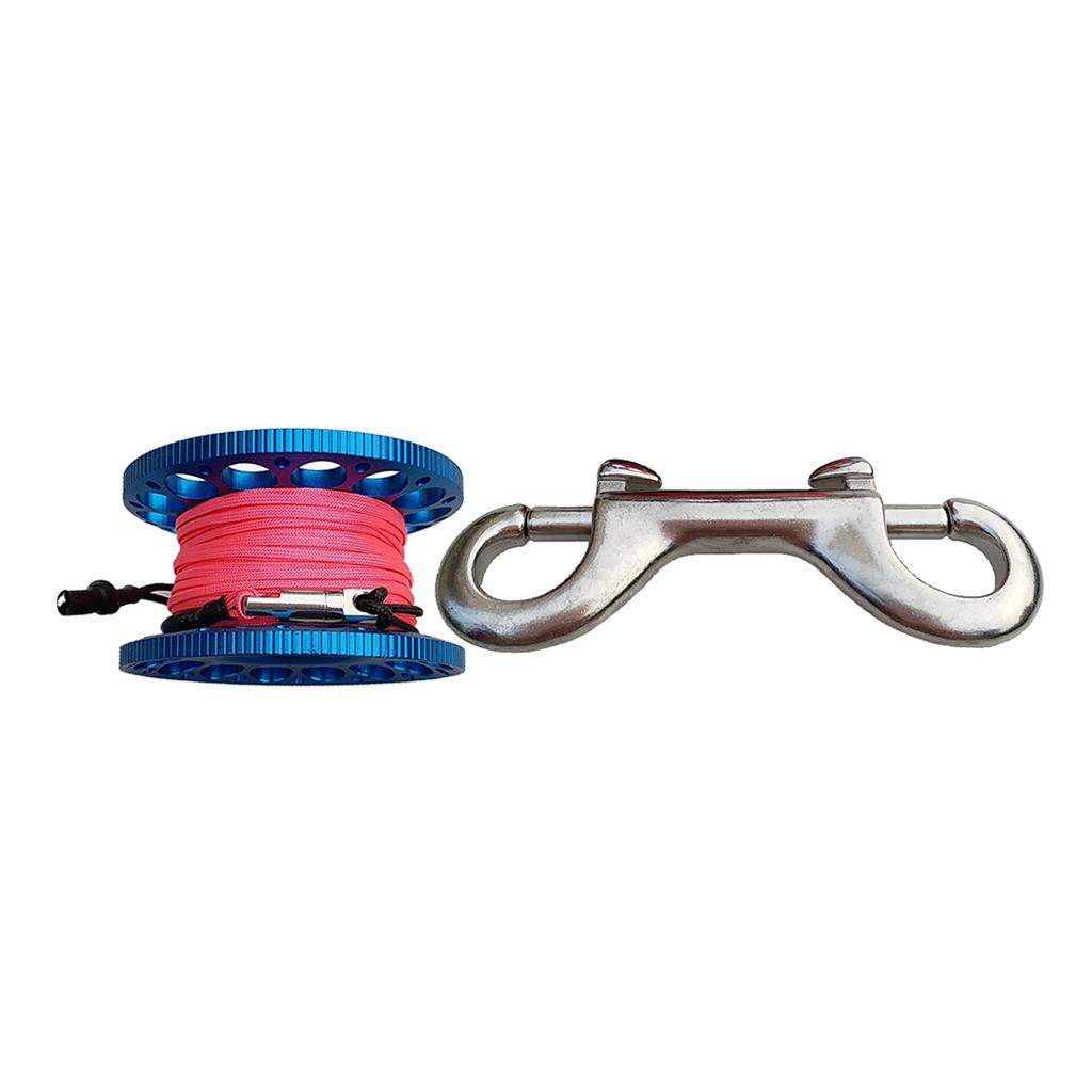 1 Set Scuba Diving Finger Spool (Aluminum alloy spool + diving line + stainless steel rotary head + stainless steel hook)