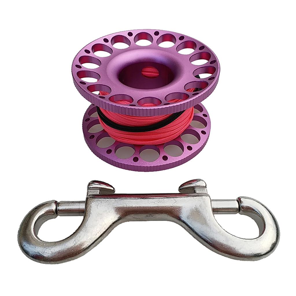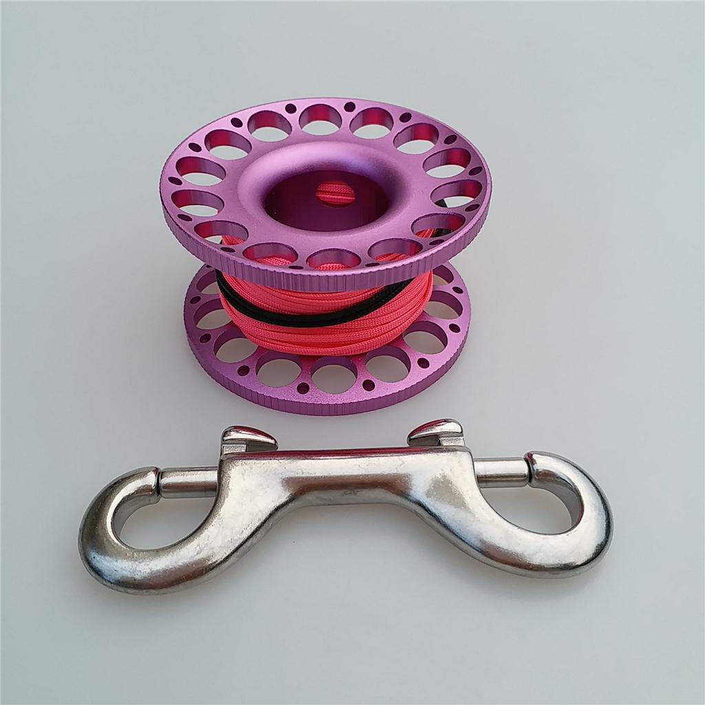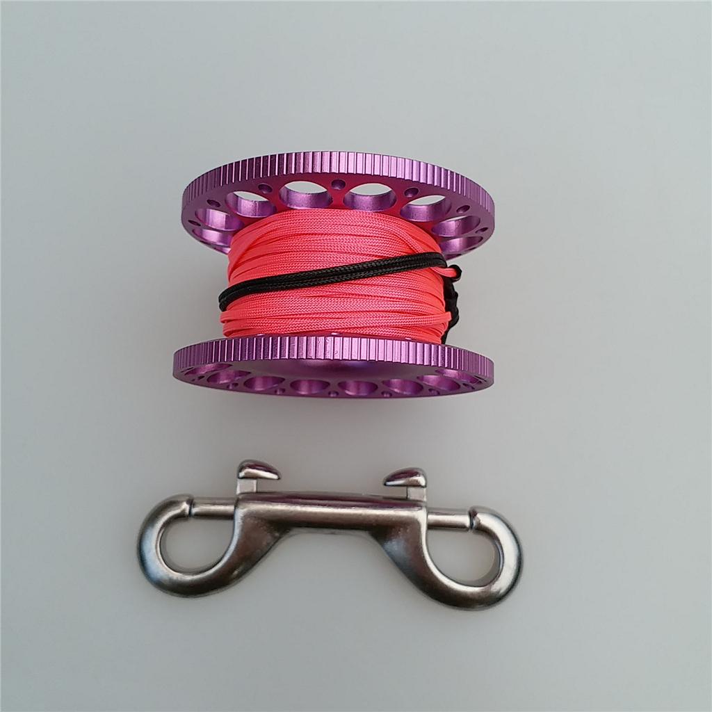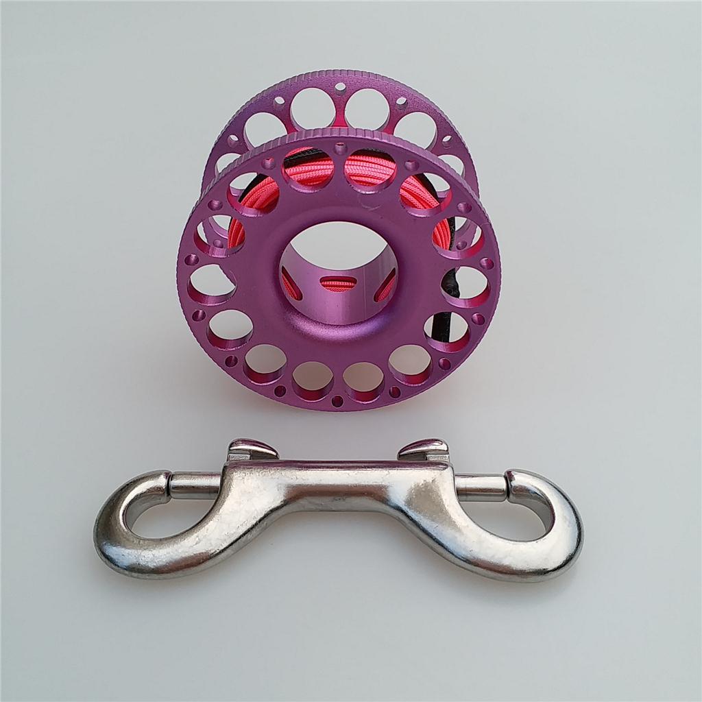 -Scuba diving aluminum alloy compact finger spool reel with 15m/50ft high visibility wear-resistant line.