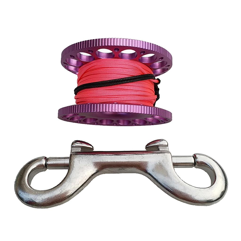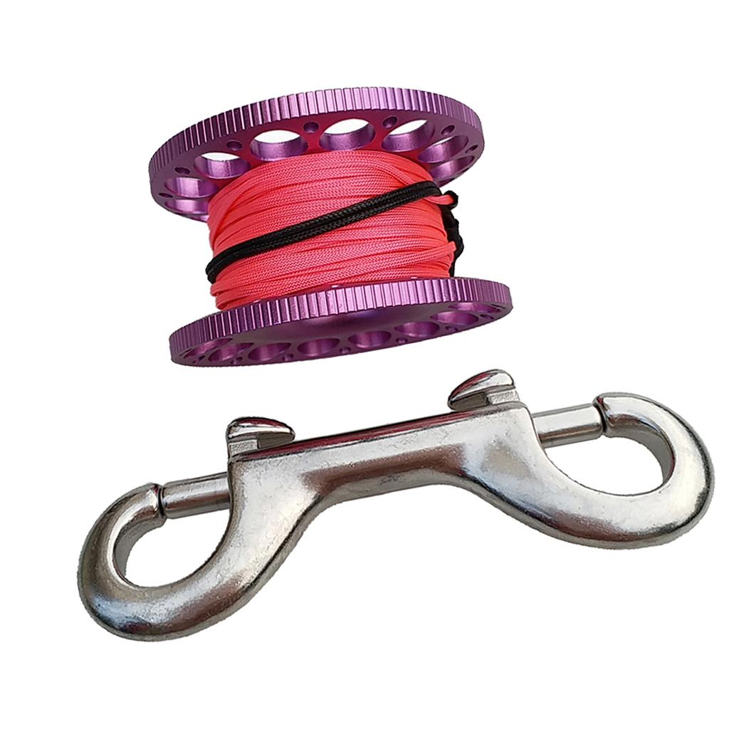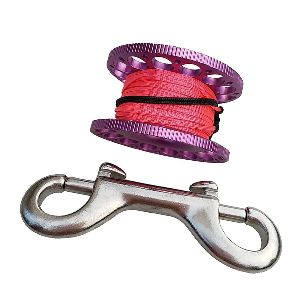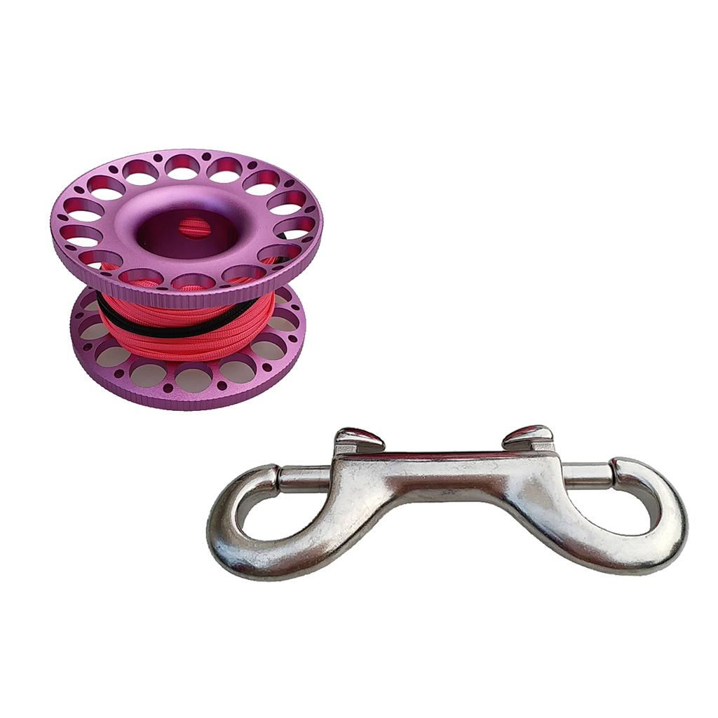 -Scuba diving aluminum alloy compact finger spool reel with 15m/50ft high visibility wear-resistant line.