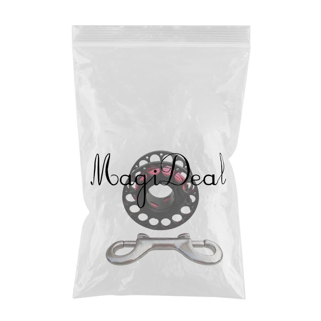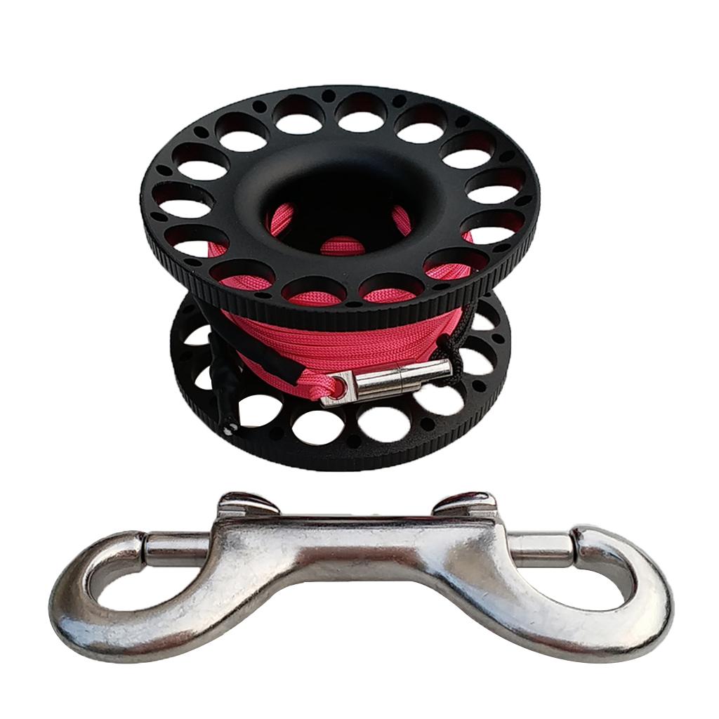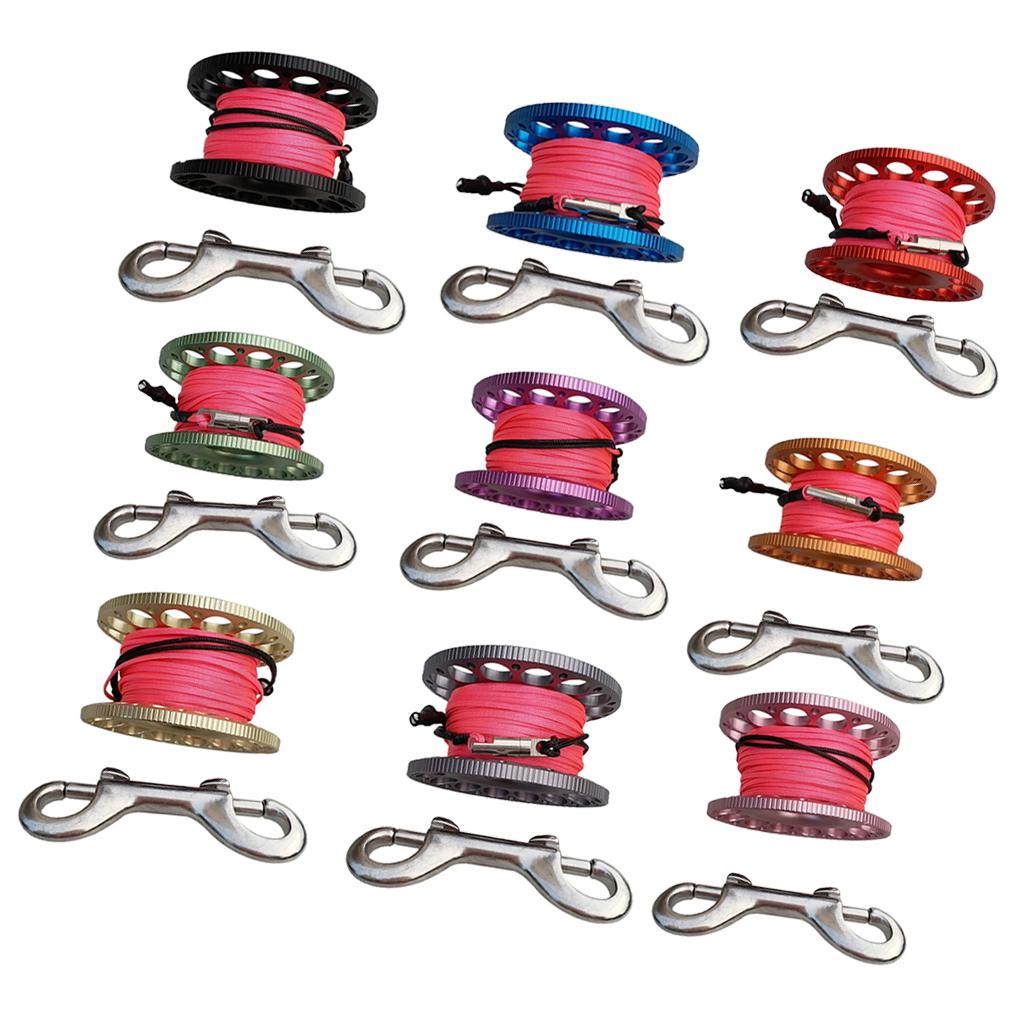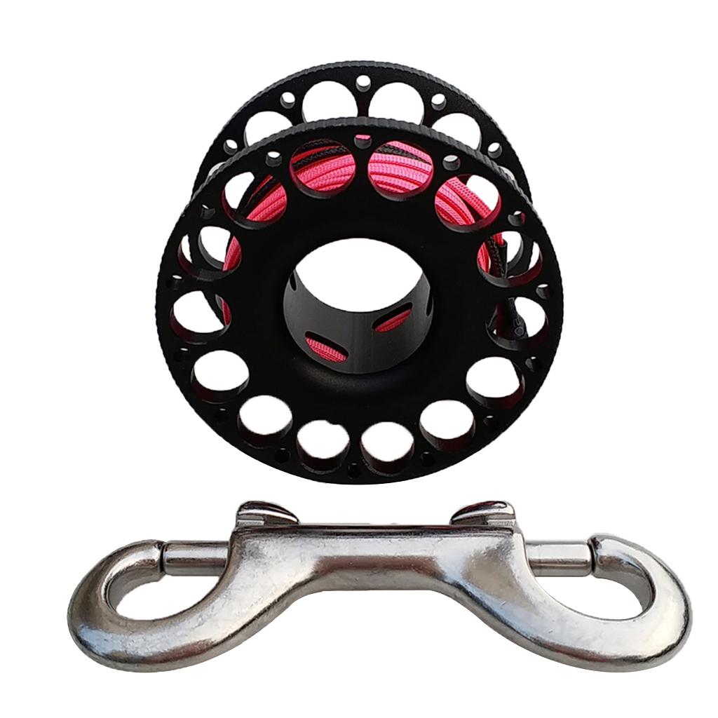 -Scuba diving aluminum alloy compact finger spool reel with 30m/98ft high visibility wear-resistant line.