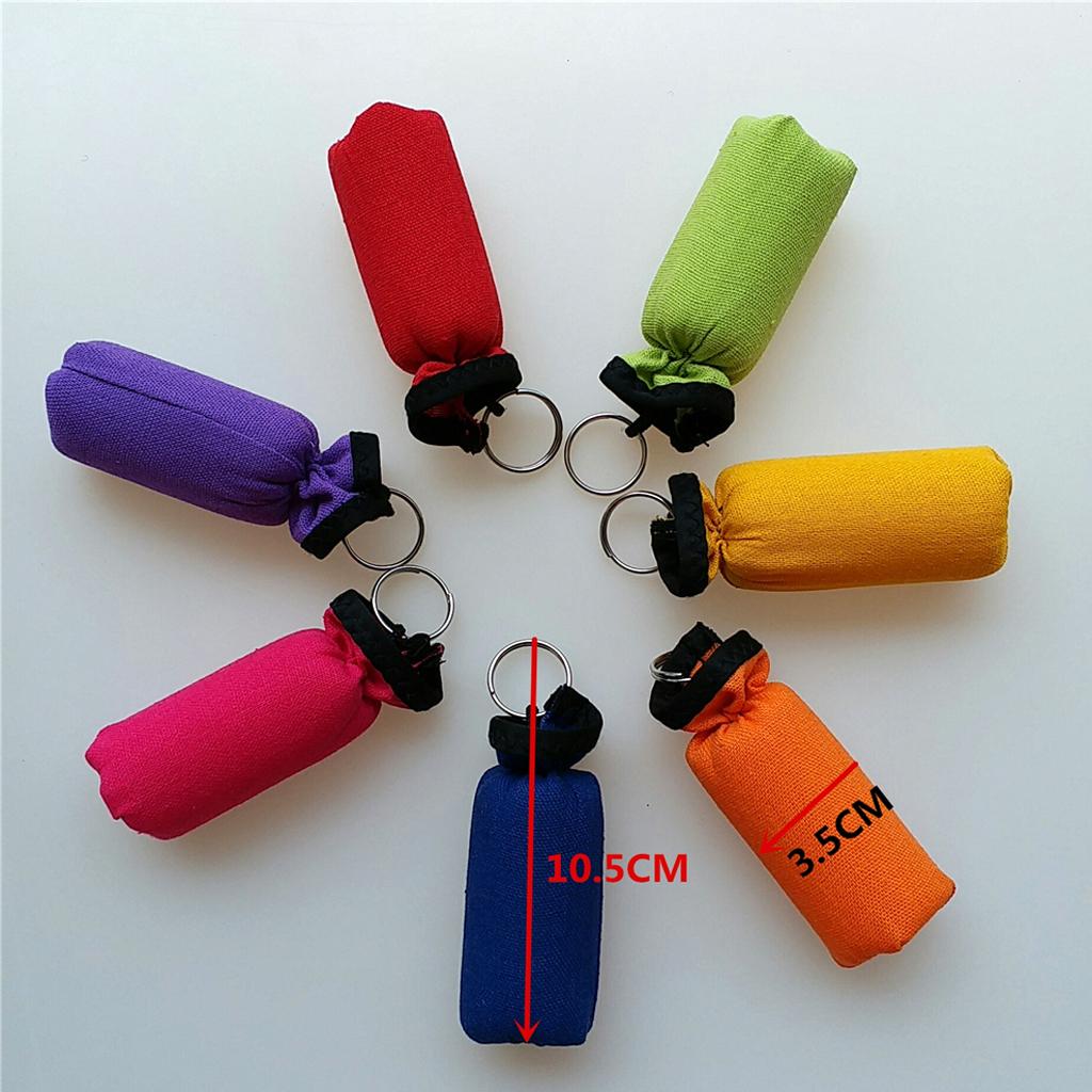 Novelty cylinder shaped EPE foam floating keyring covered with linen, soft and comfortable in your hand