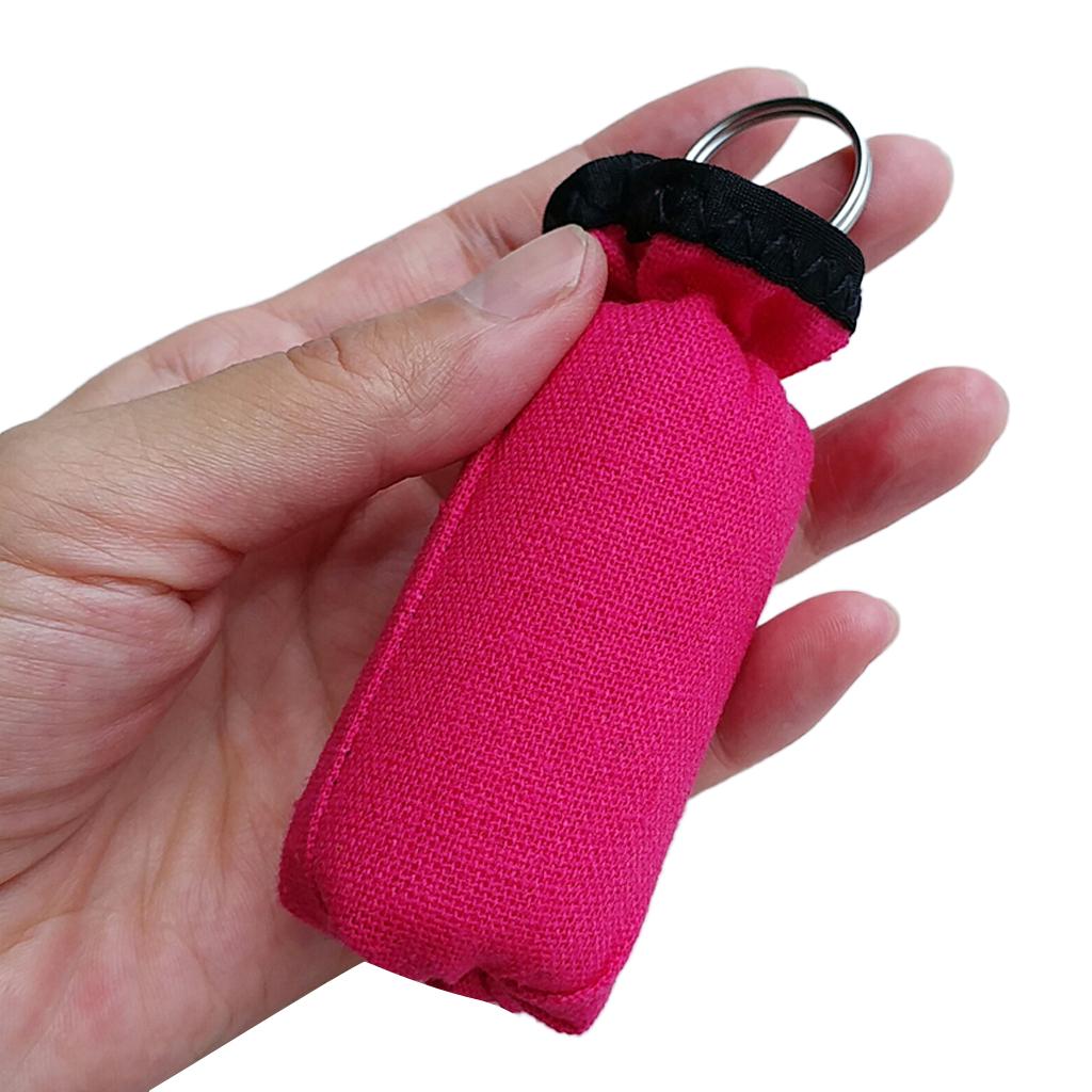 Novelty cylinder shaped EPE foam floating keyring covered with linen, soft and comfortable in your hand