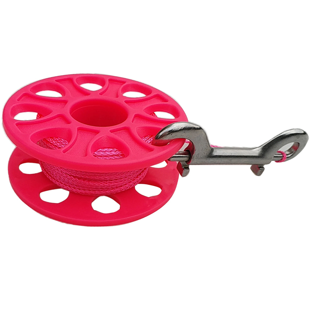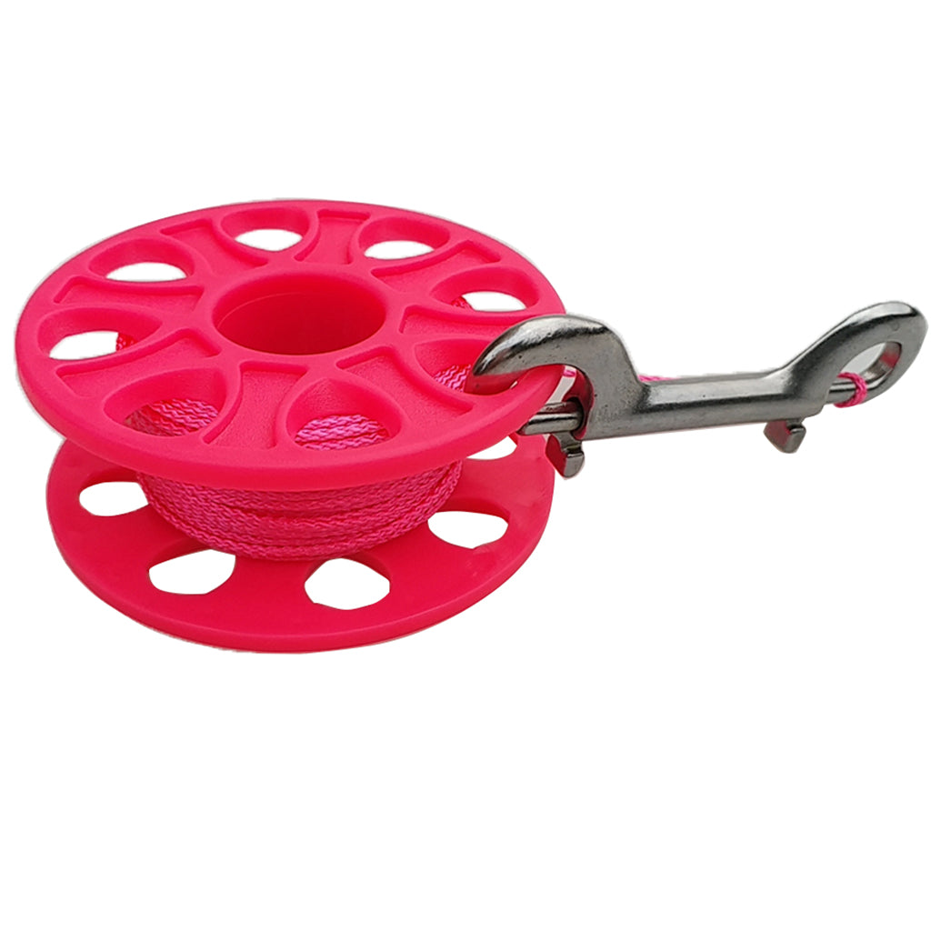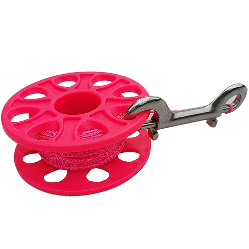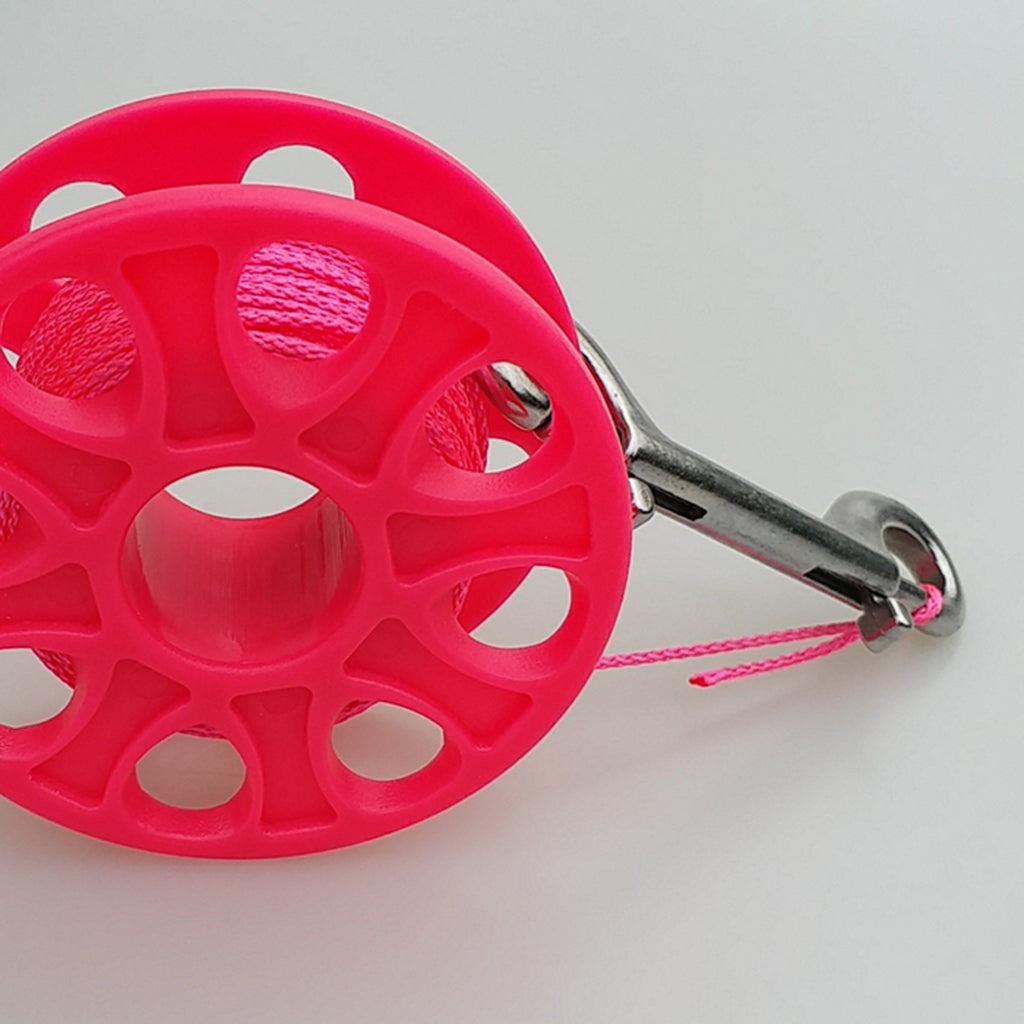 Dive Reel Finger Spool 30m Line Dual Ended Bolt Snap for Scuba Diving Pink