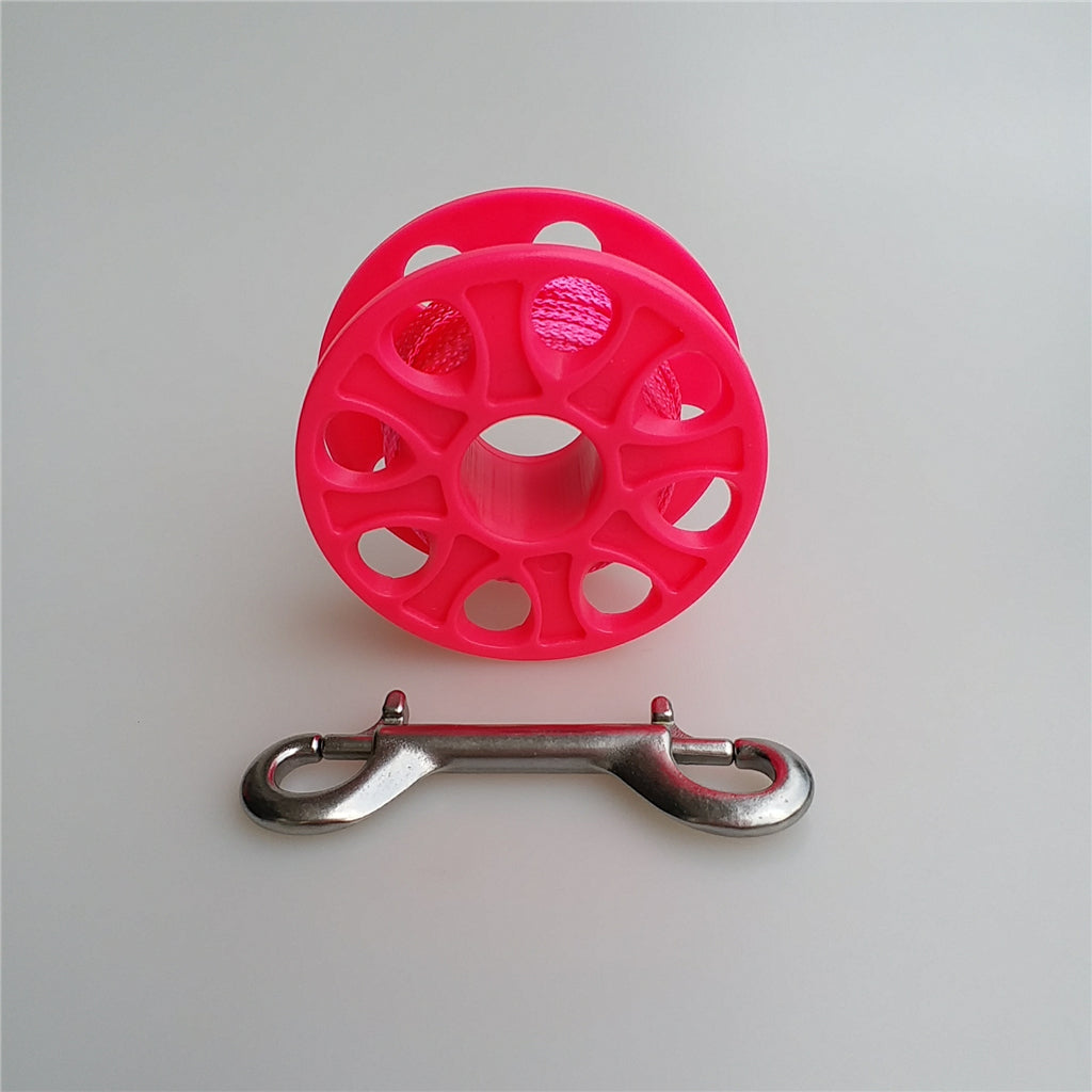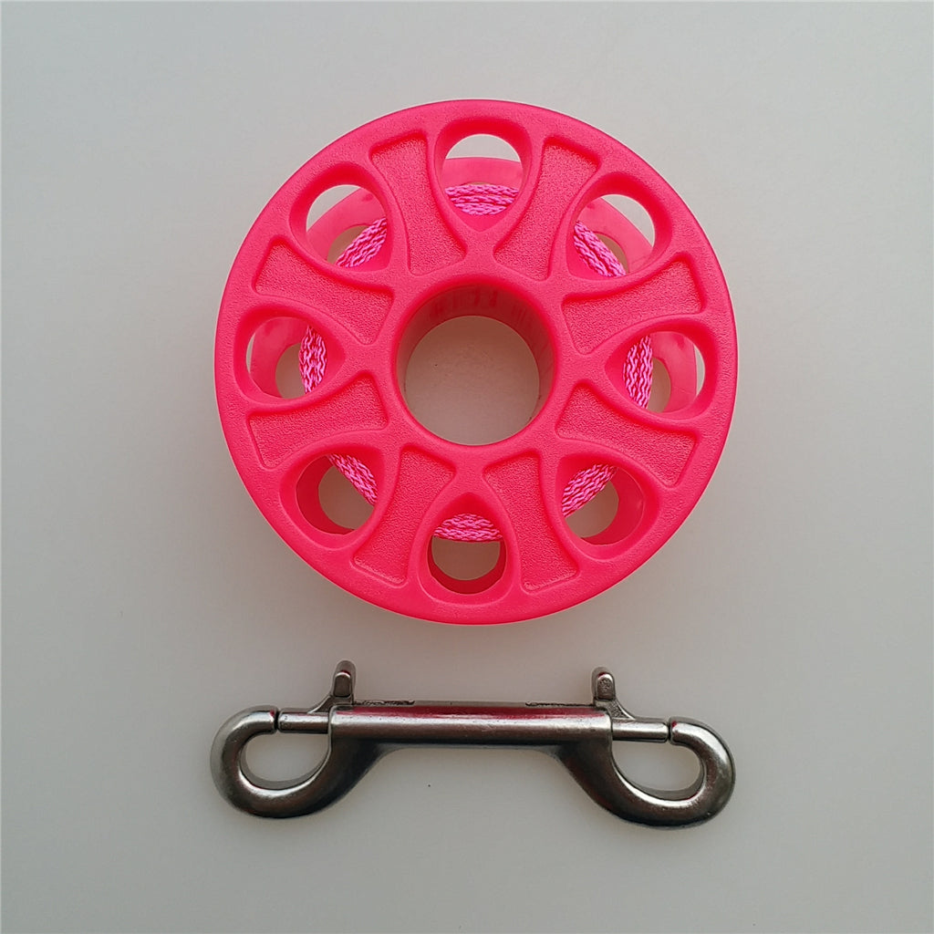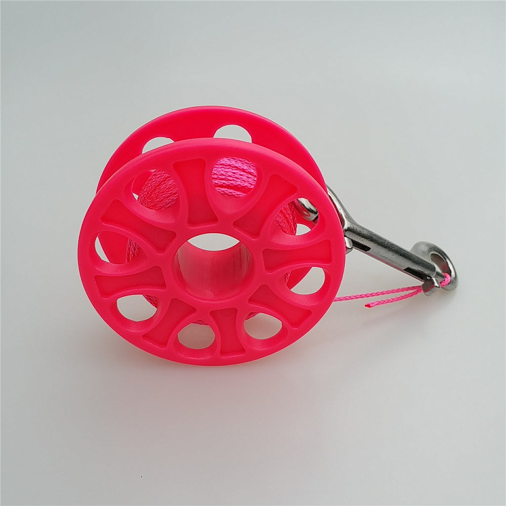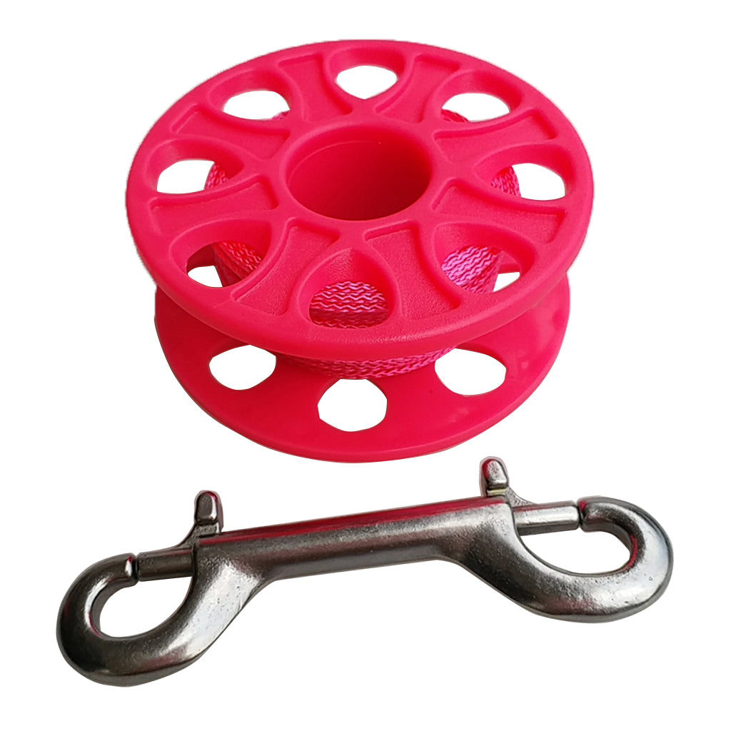 Dive Reel Finger Spool 30m Line Dual Ended Bolt Snap for Scuba Diving Pink
