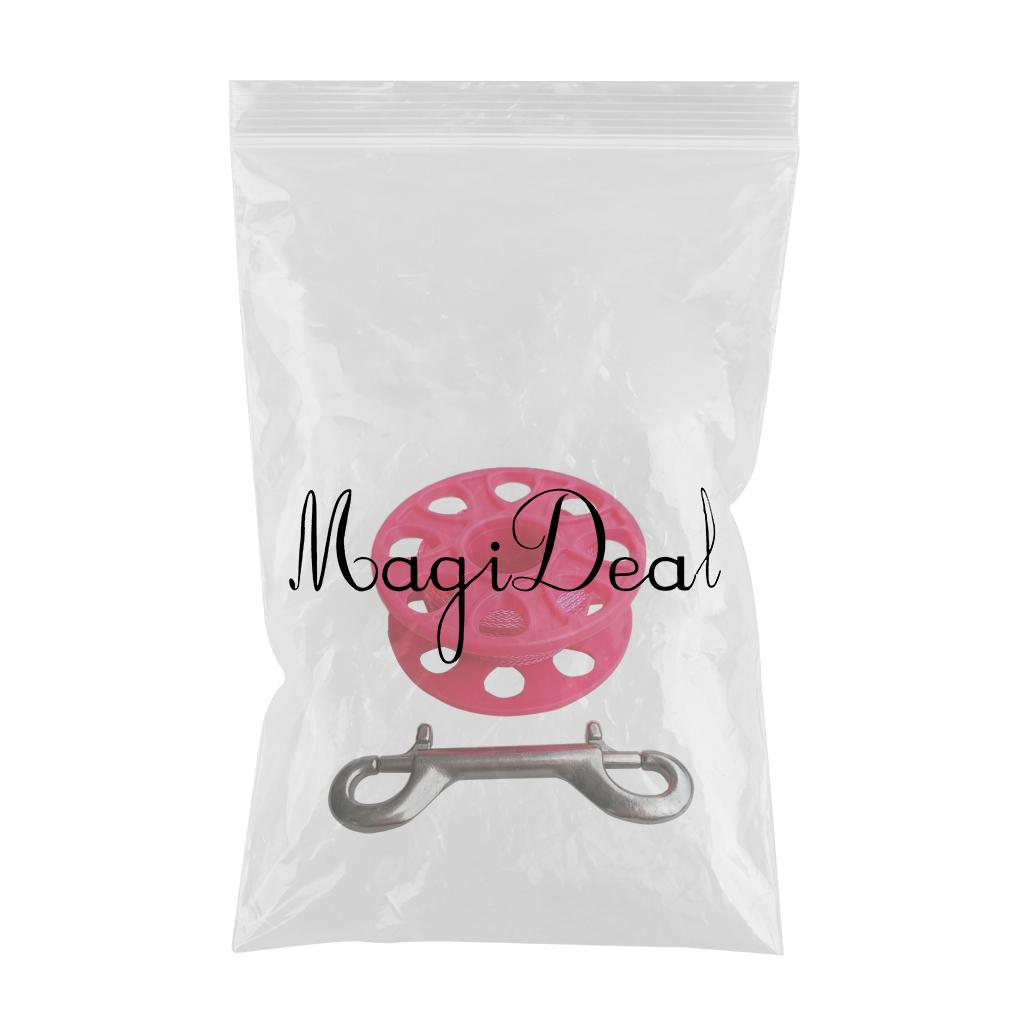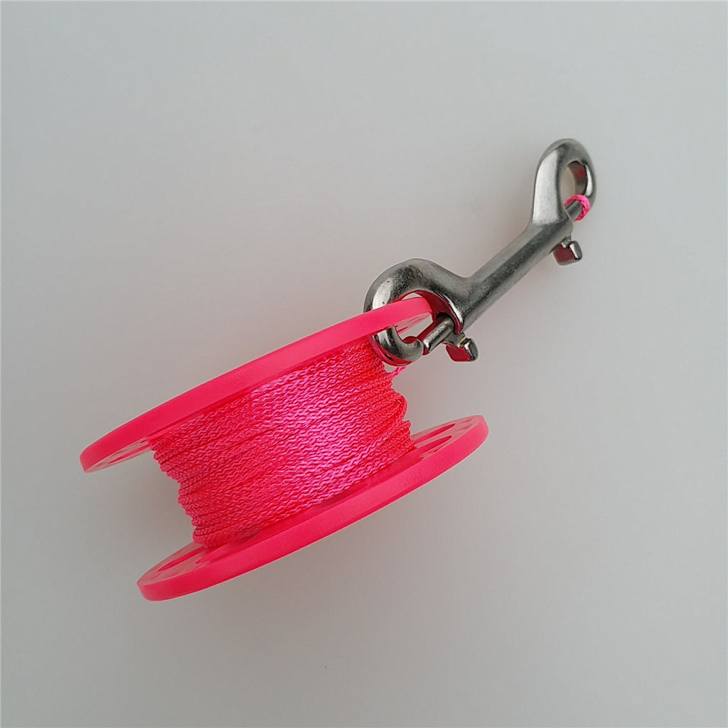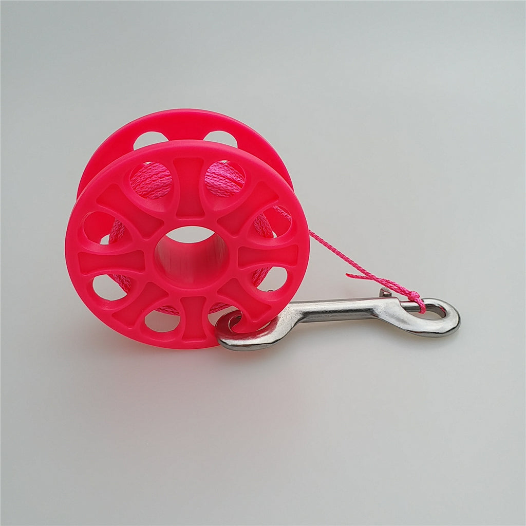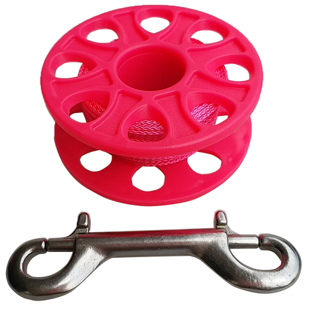 Dive Reel Finger Spool 30m Line Dual Ended Bolt Snap for Scuba Diving Pink