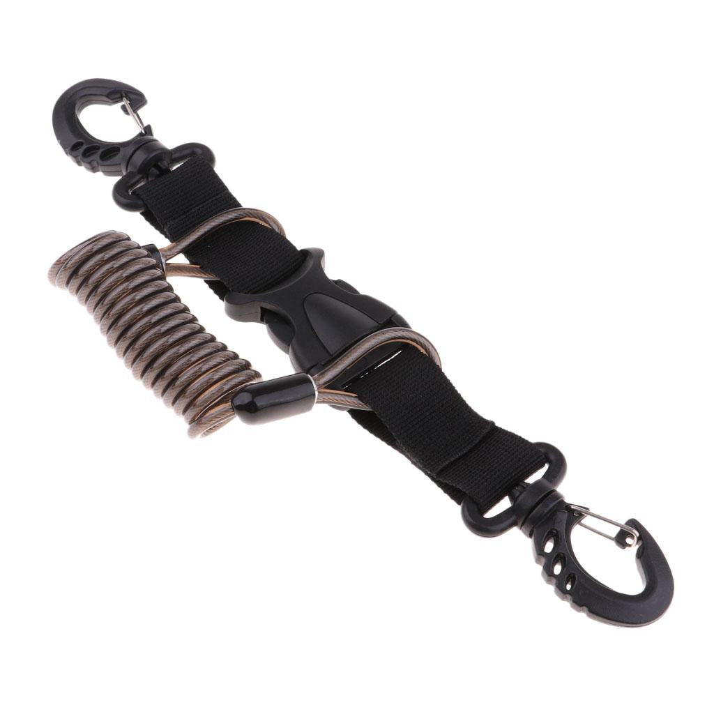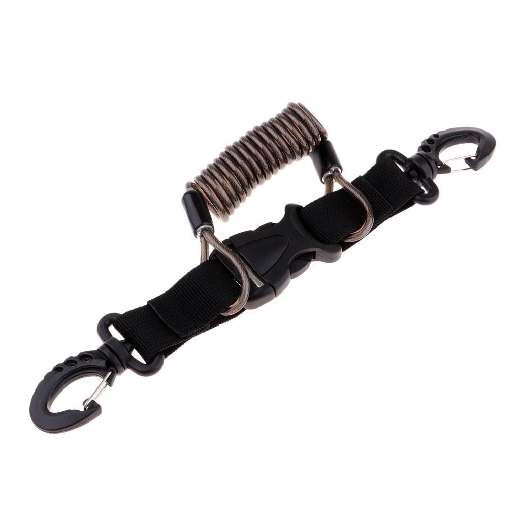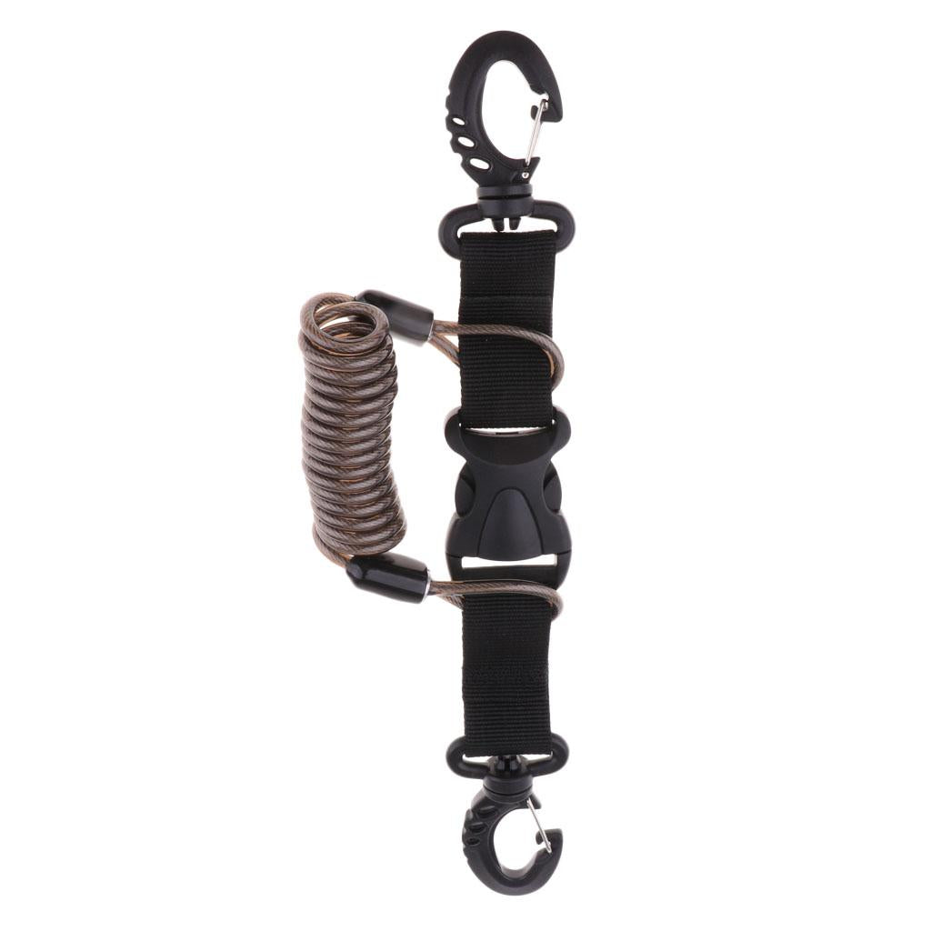 Camera coil lanyard with quick release buckle and carabiner steel core