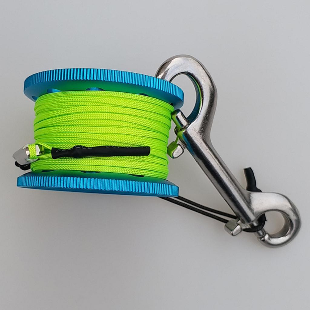 Aluminum alloy finger reel with high visibility line, length of 15m/49.21ft