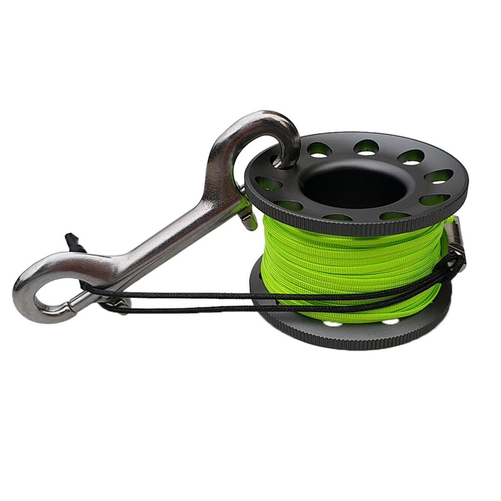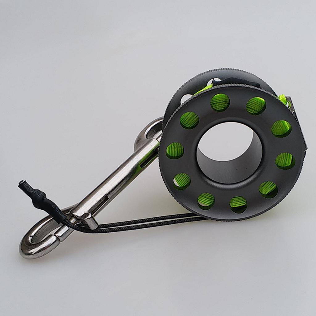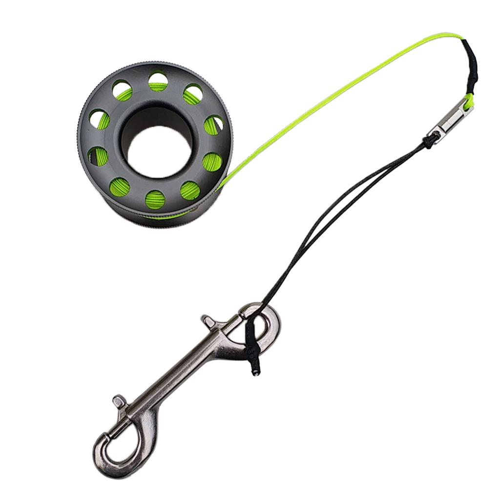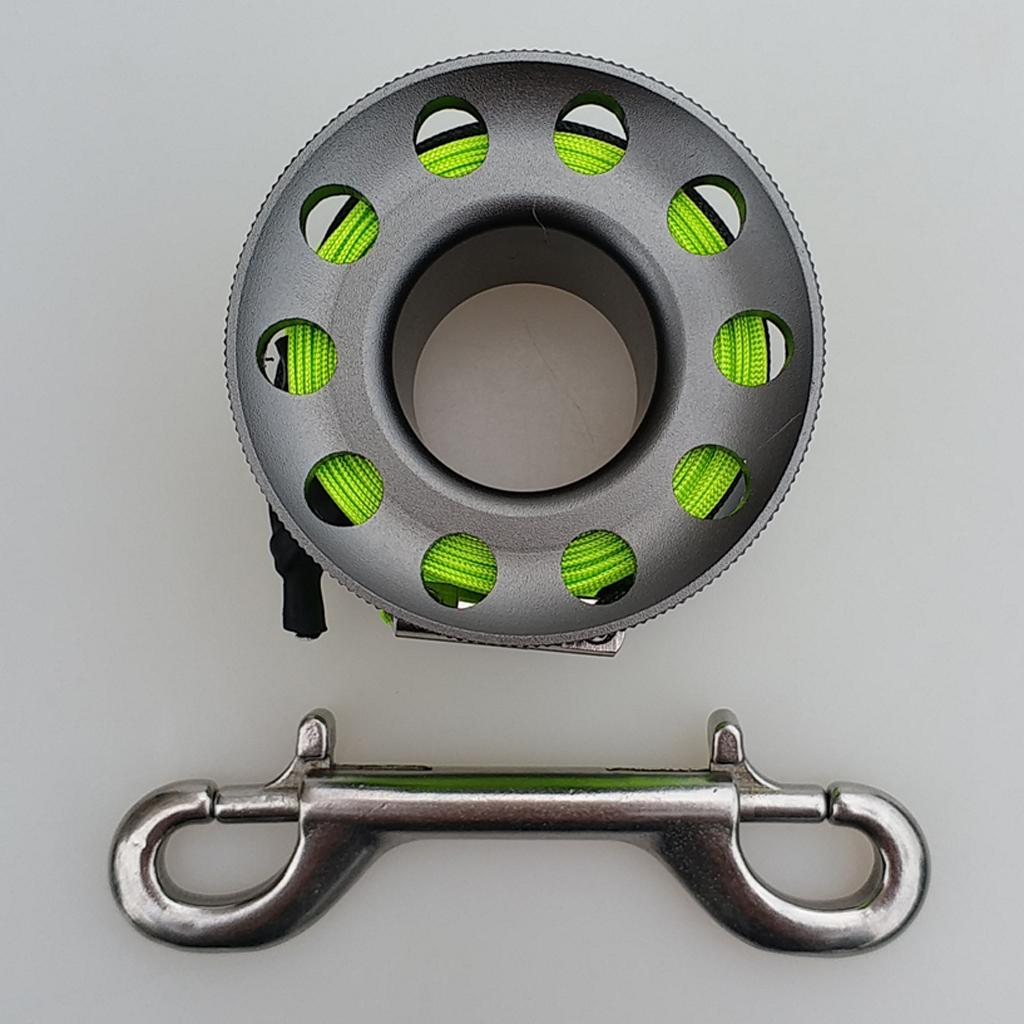 Finger Reel Scuba Diving Spool with Stainless Double Ended Clips 15m gray