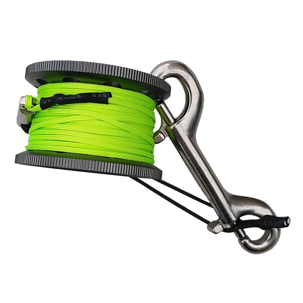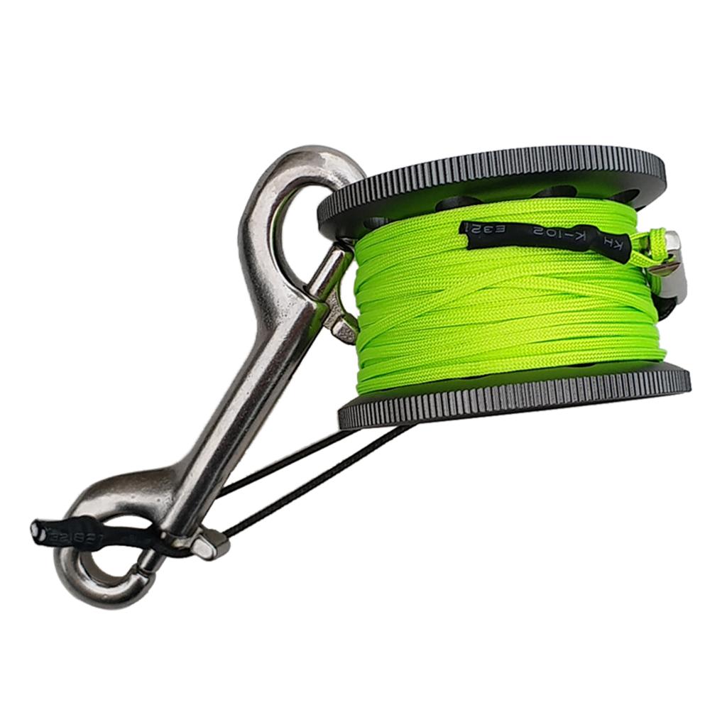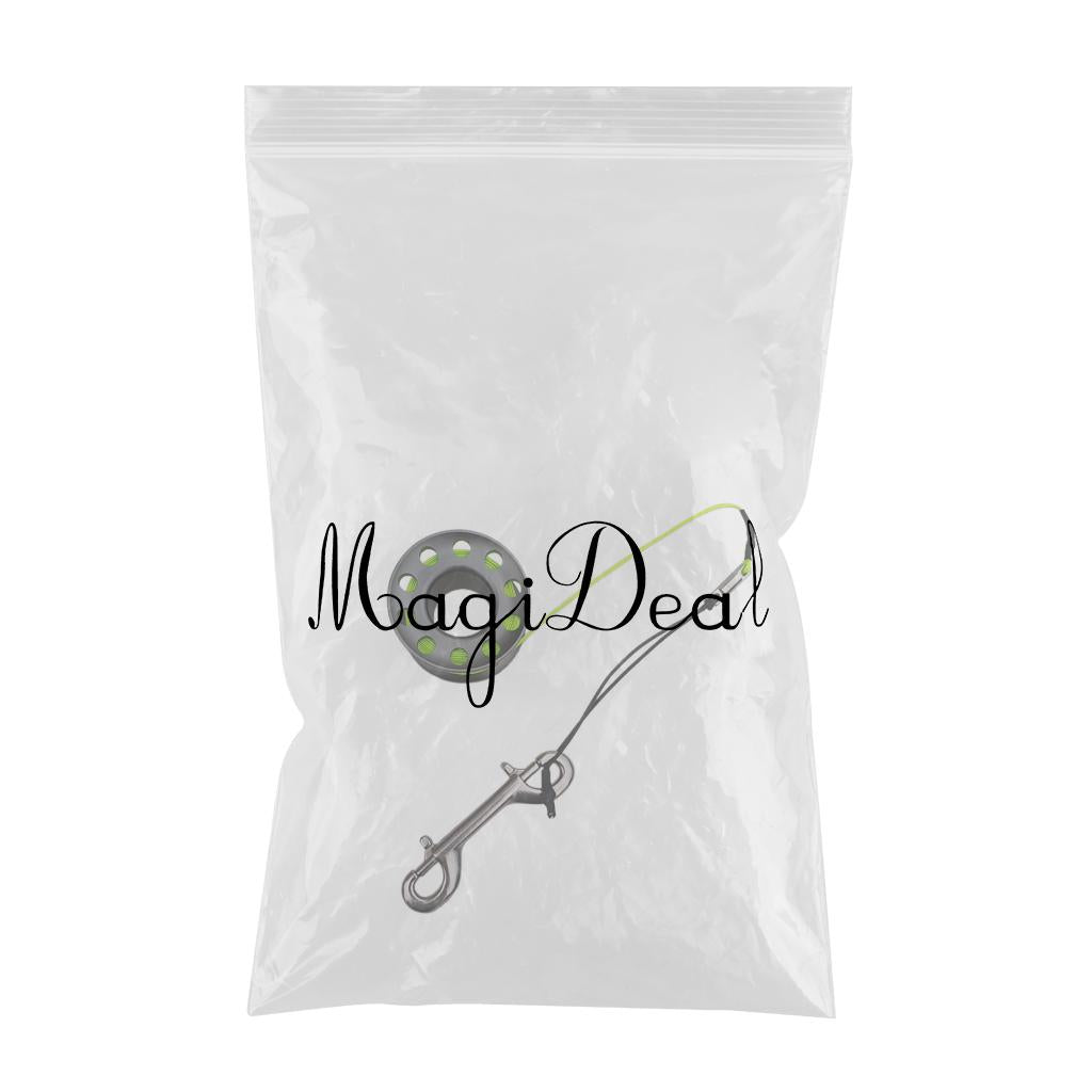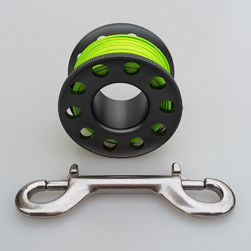 Finger Reel Scuba Diving Spool with Stainless Double Ended Clips 15m gray