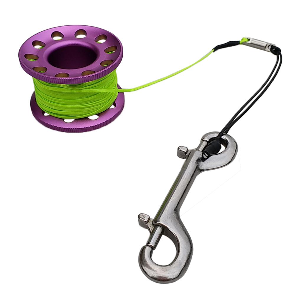 Finger Reel Scuba Diving Spool with Stainless Double Ended Clips 15m purple