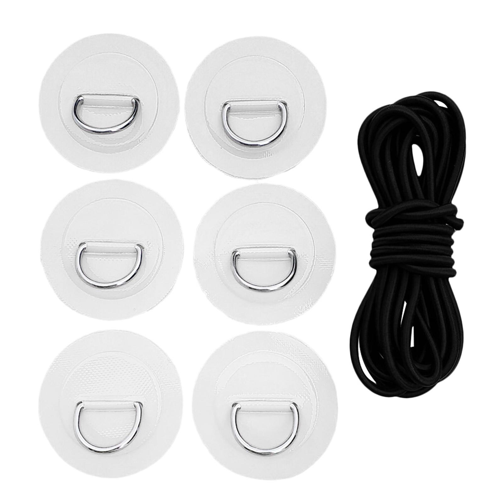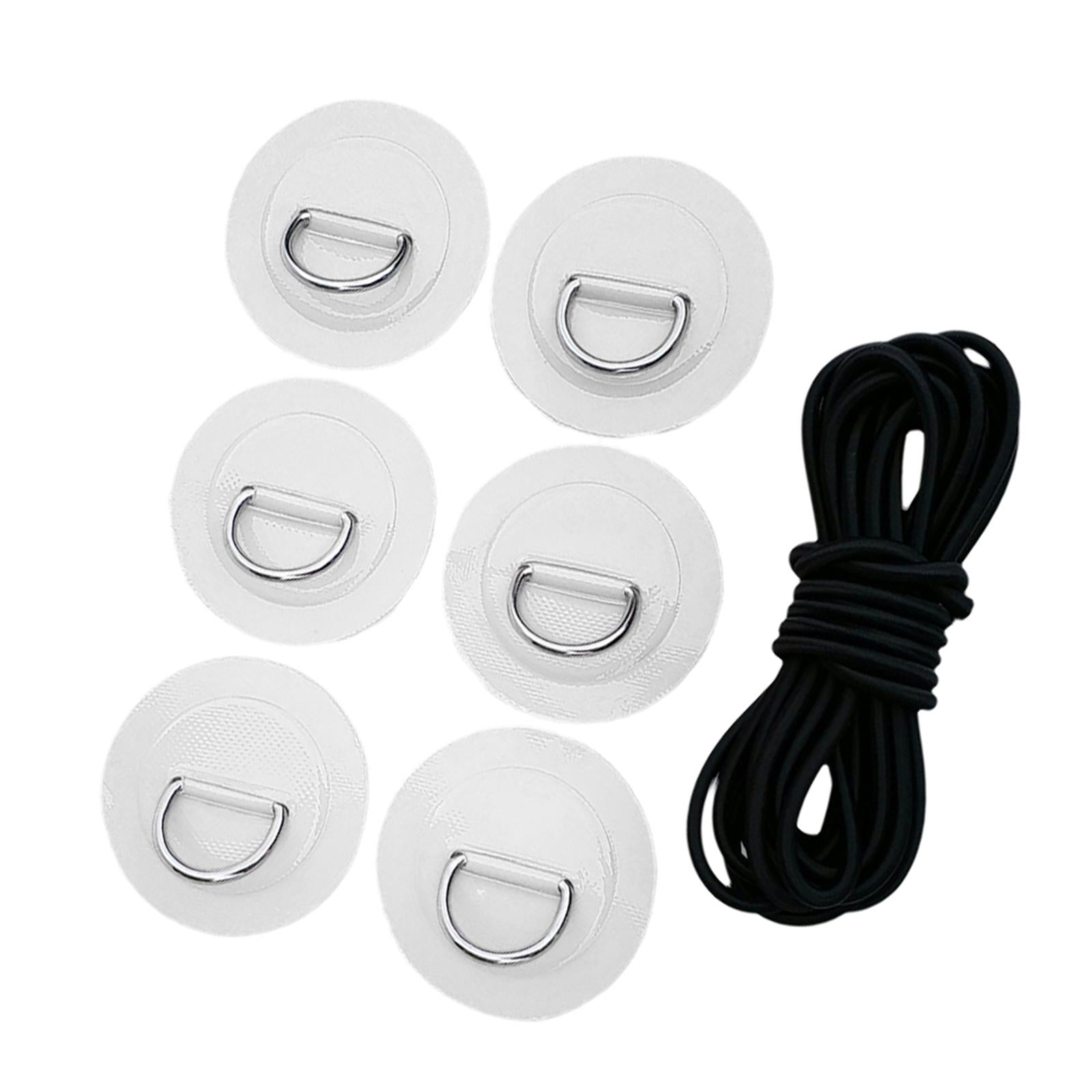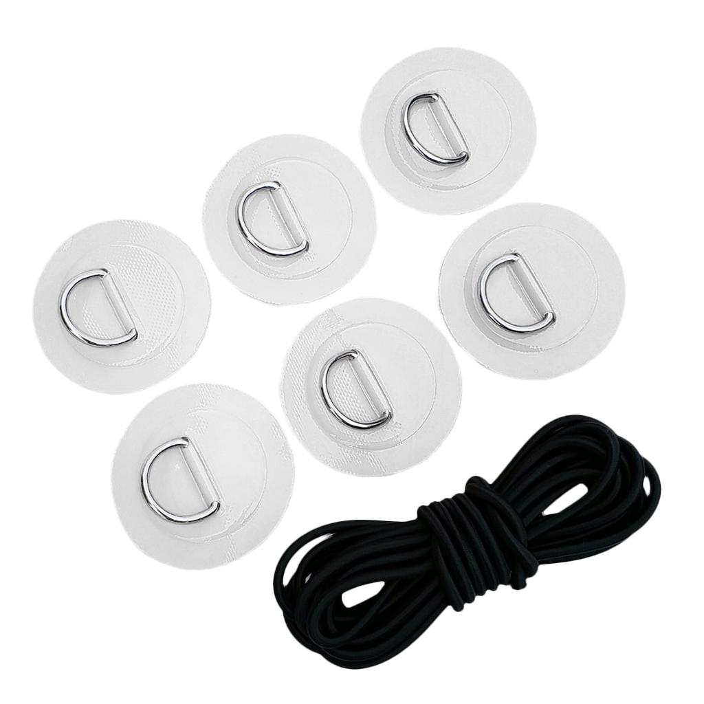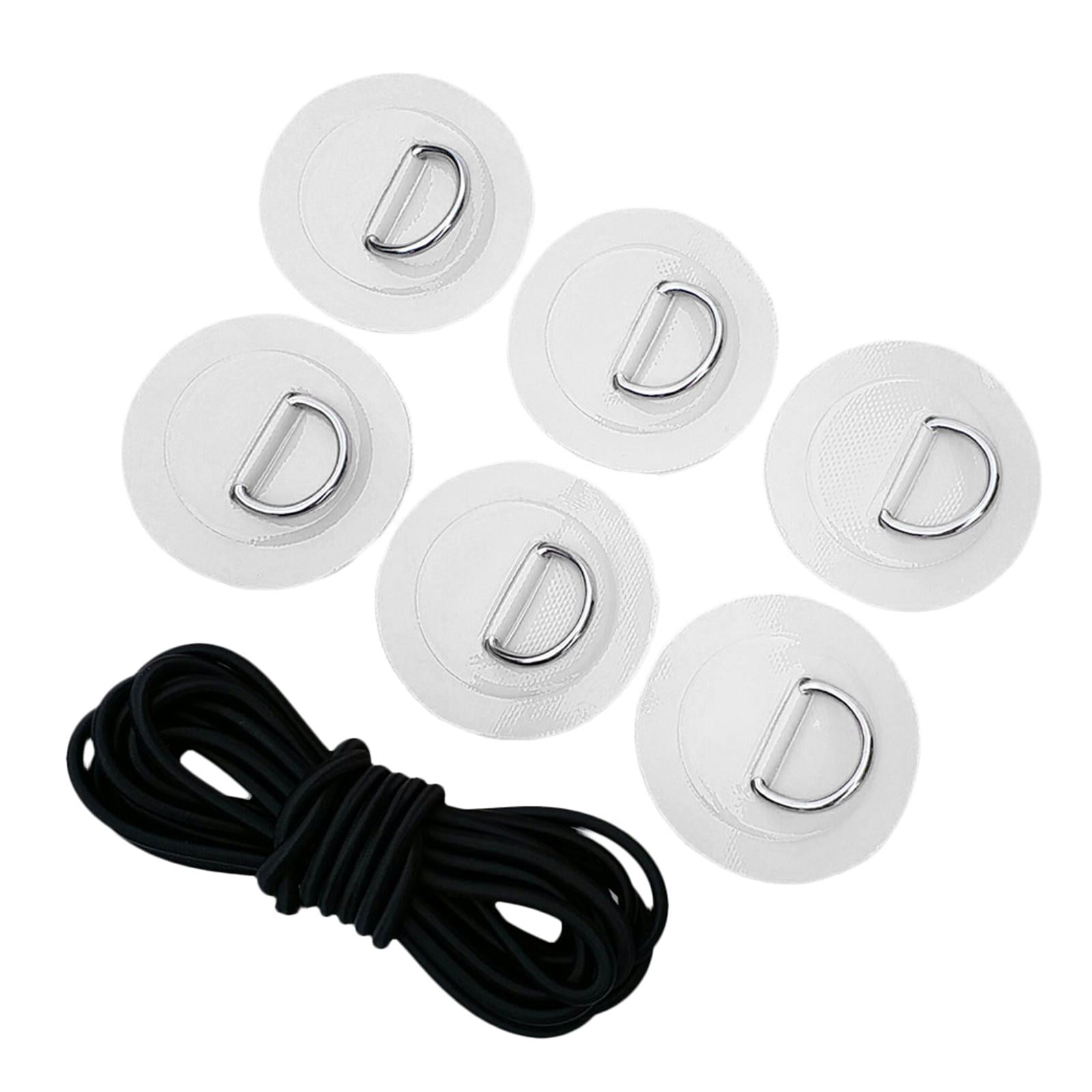 1 Set kit includes: 6 stainless steel D rings patches and 5mm black elastic bungee cord.