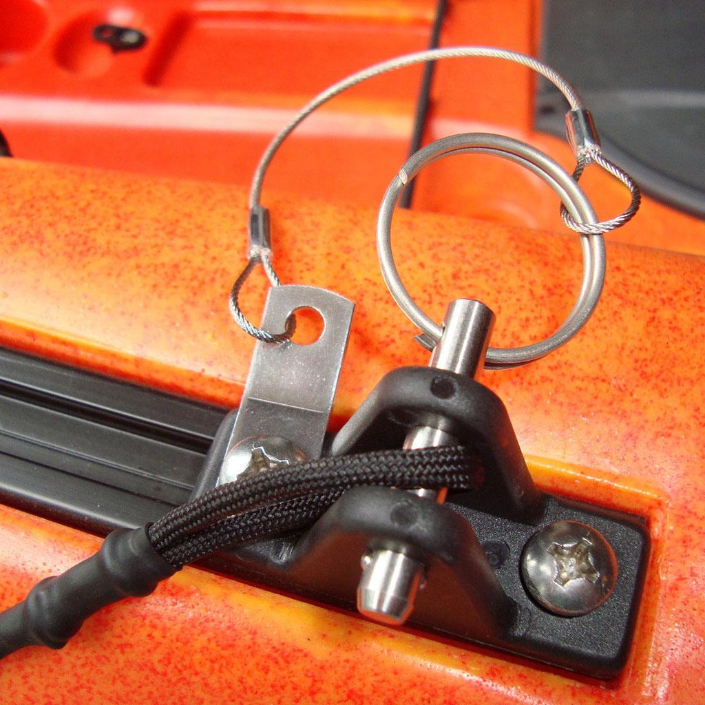 Durable nylon kayak deck hinge mount with split ring, quick release pin and lanyard