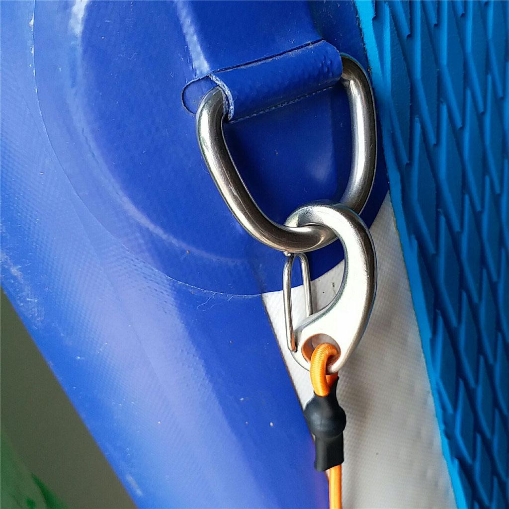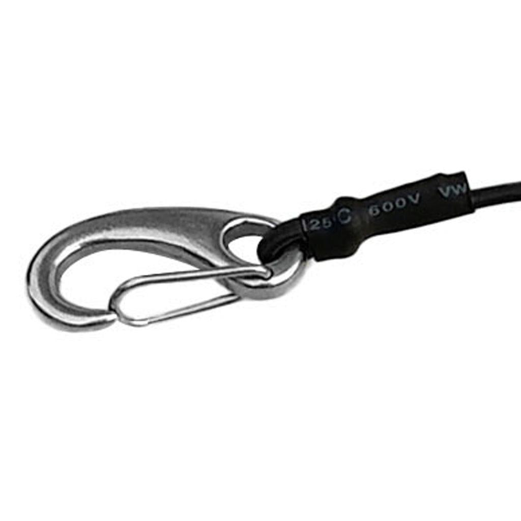 With strong stainless steel spring loaded carabiner clip at one end, can clip to your life jacket, decking rigging pad eye or D ring