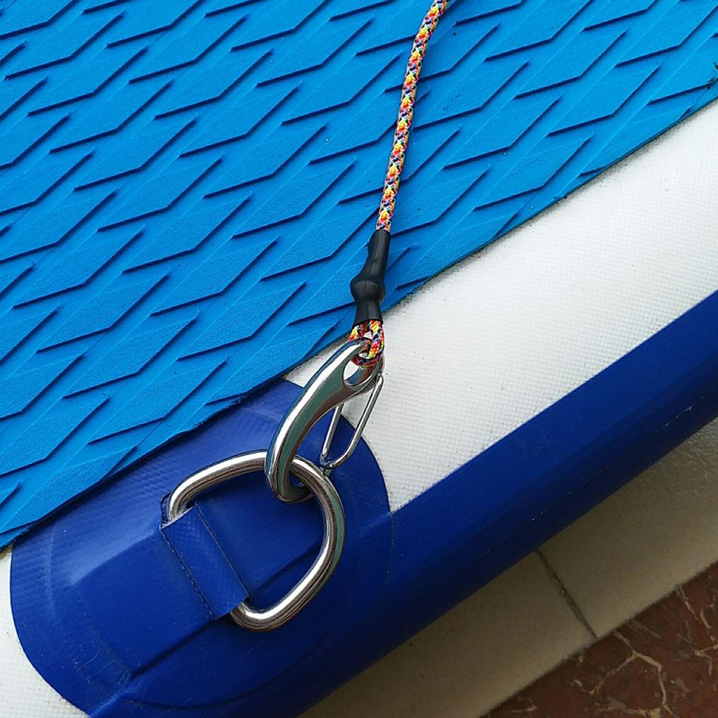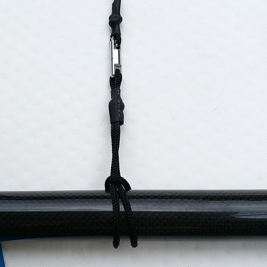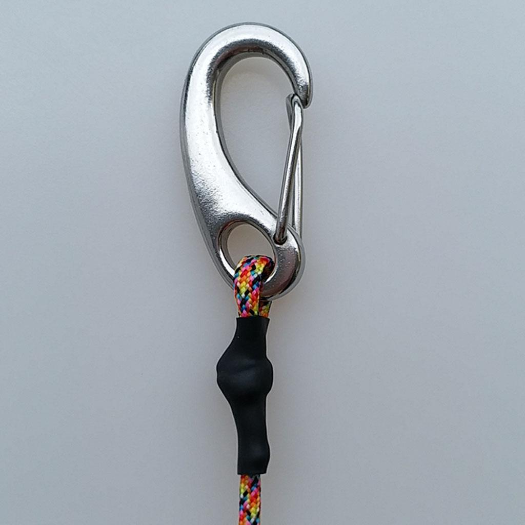 Strong stainless steel spring loaded carabiner clip at the other end, can clip to your life jacket, decking rigging pad eye or D ring