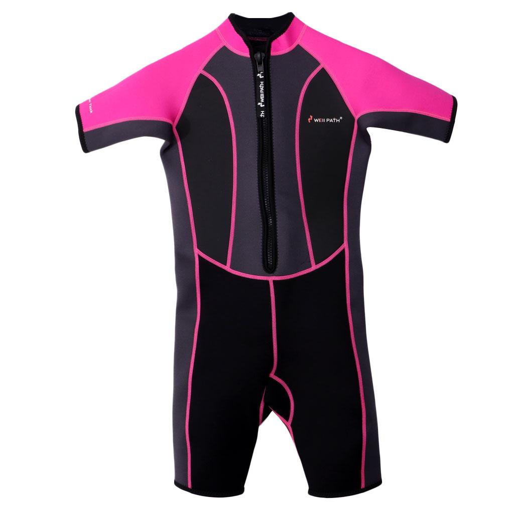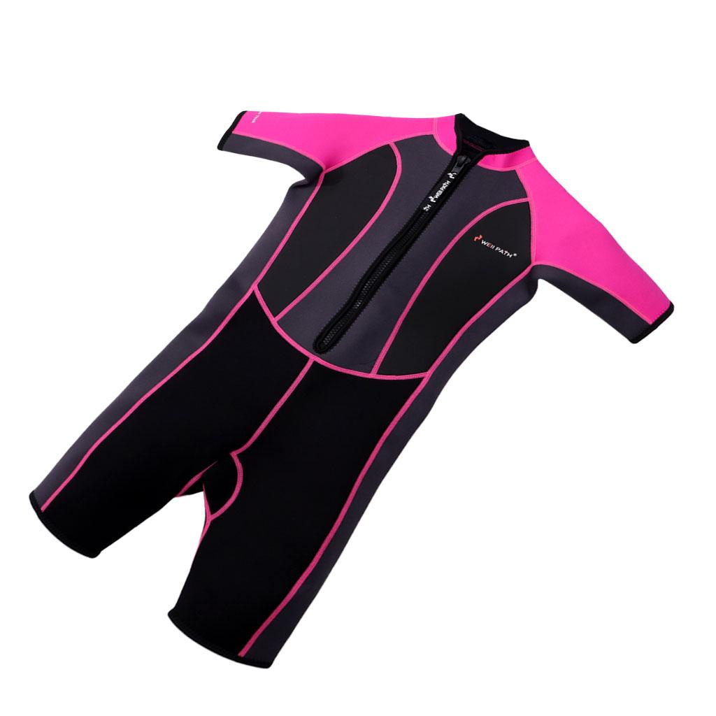 Kids 3.5mm Neoprene Wetsuit One-Piece Short Sleeve Jumpsuit Swimwear Pink-4