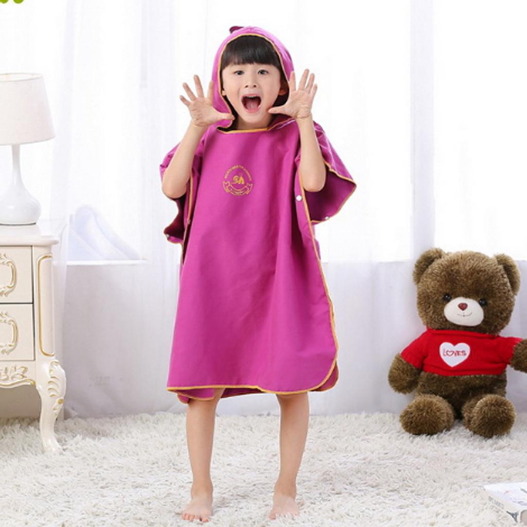 Kids Children Surf Beach Bath Hooded Poncho Wetsuit Changing Robe Pink