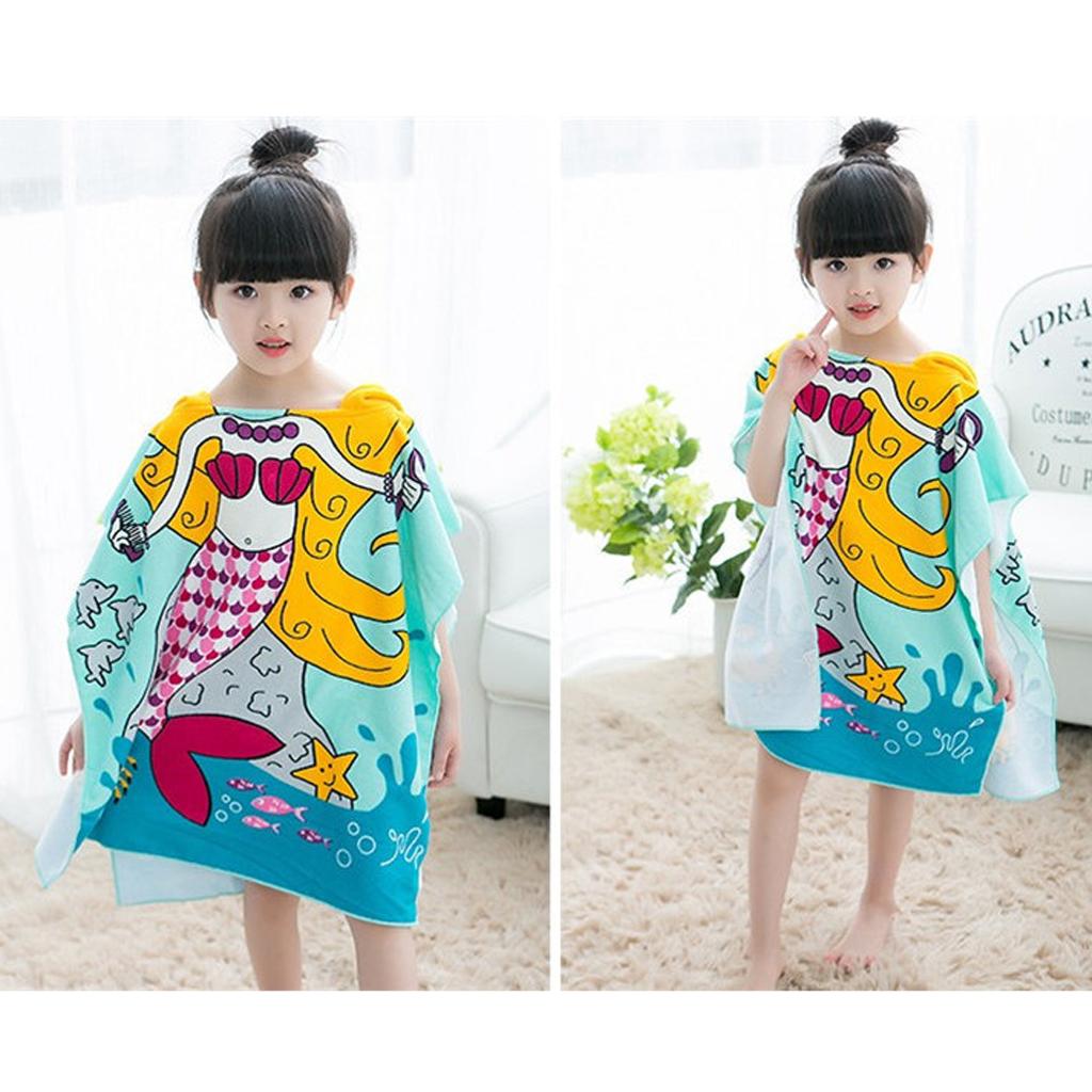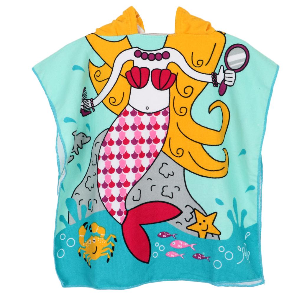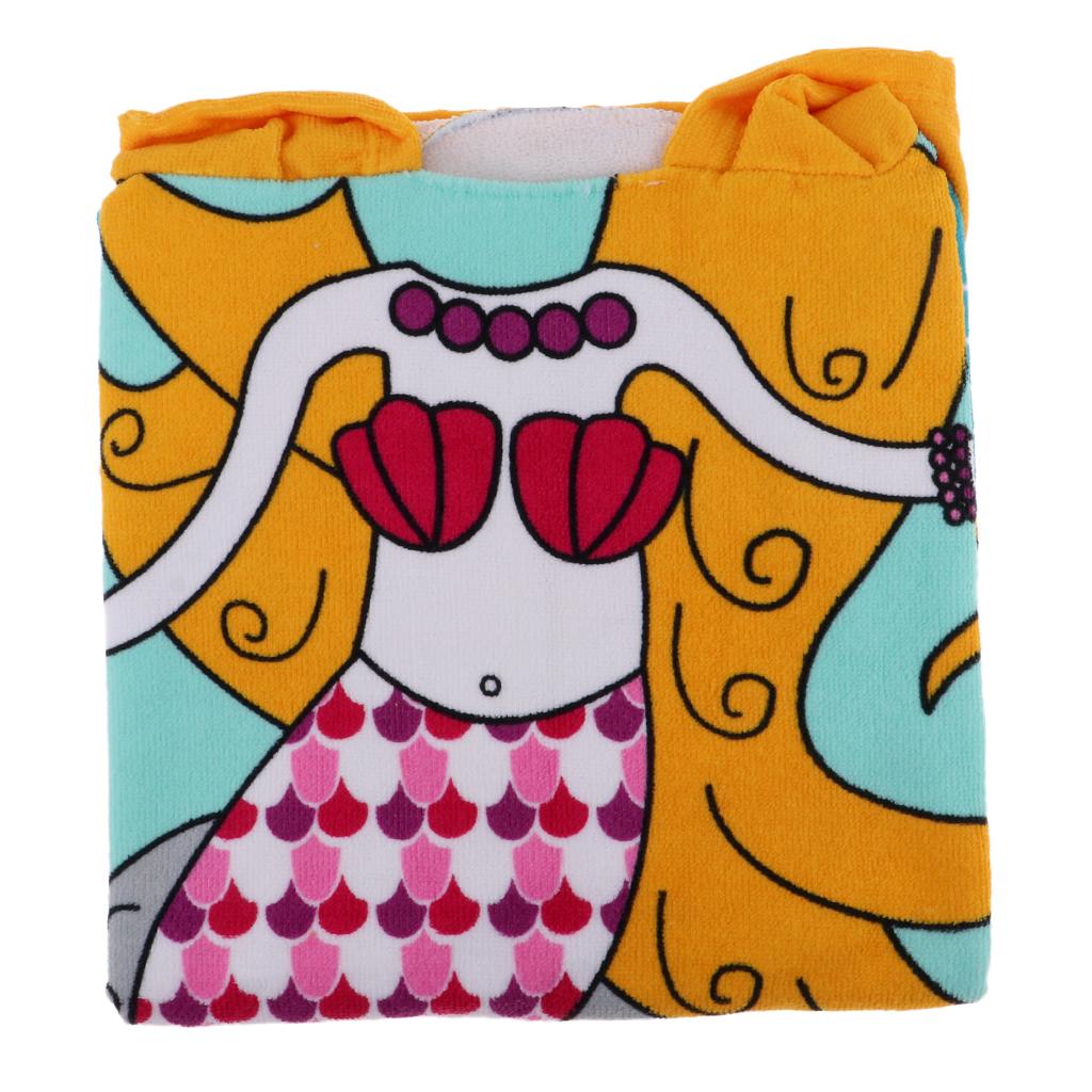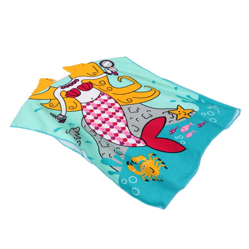Kids Surf Beach Hooded Poncho Changing Robe Pool Bath Towel Blue Mermaid