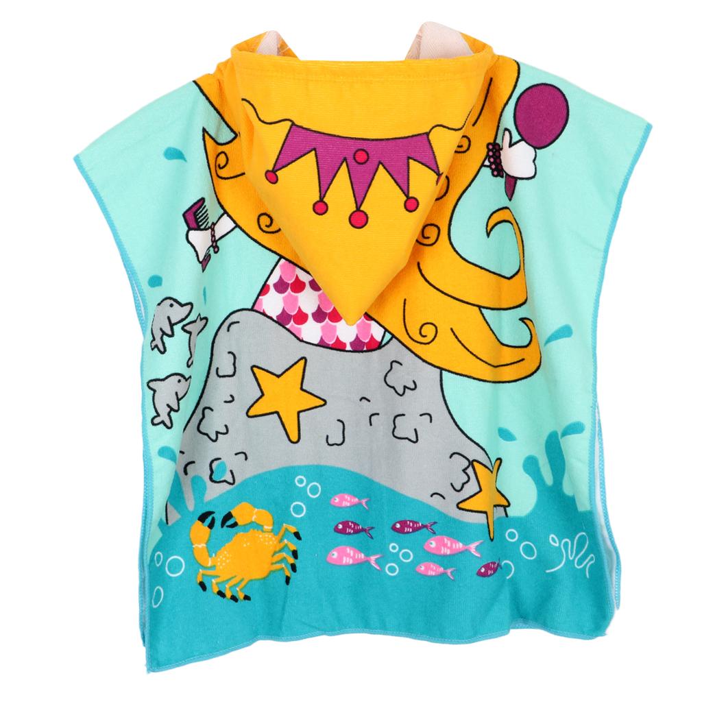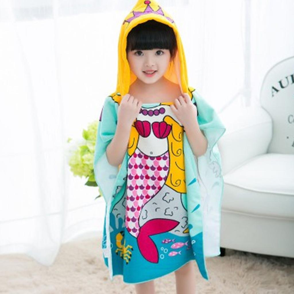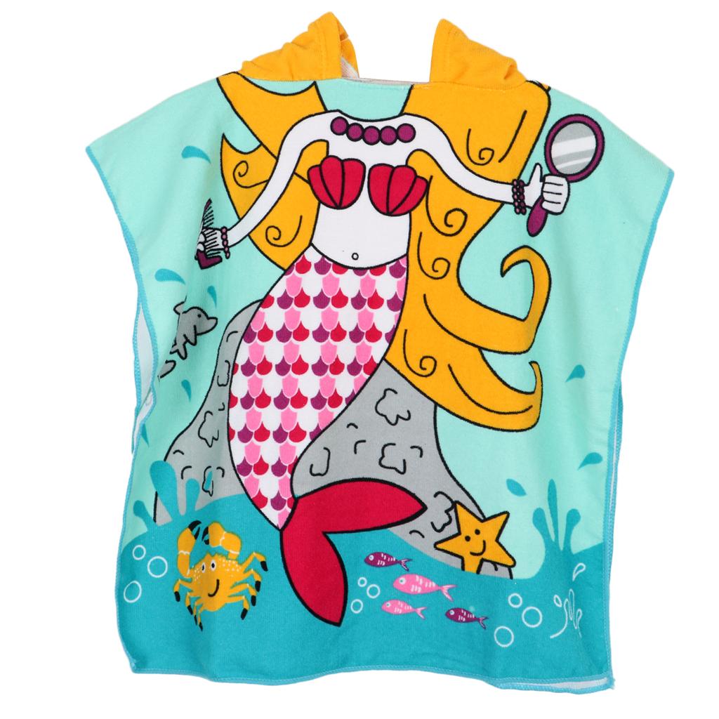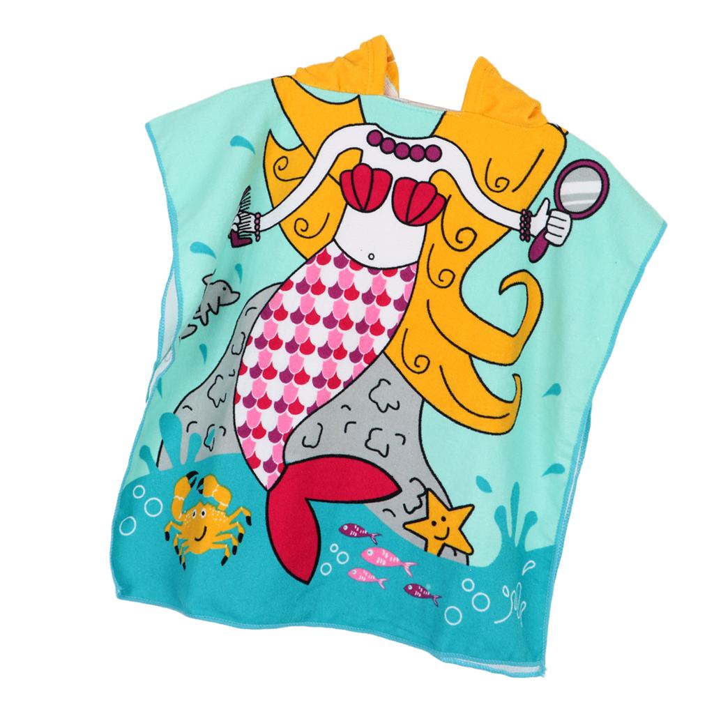 Kids Surf Beach Hooded Poncho Changing Robe Pool Bath Towel Blue Mermaid