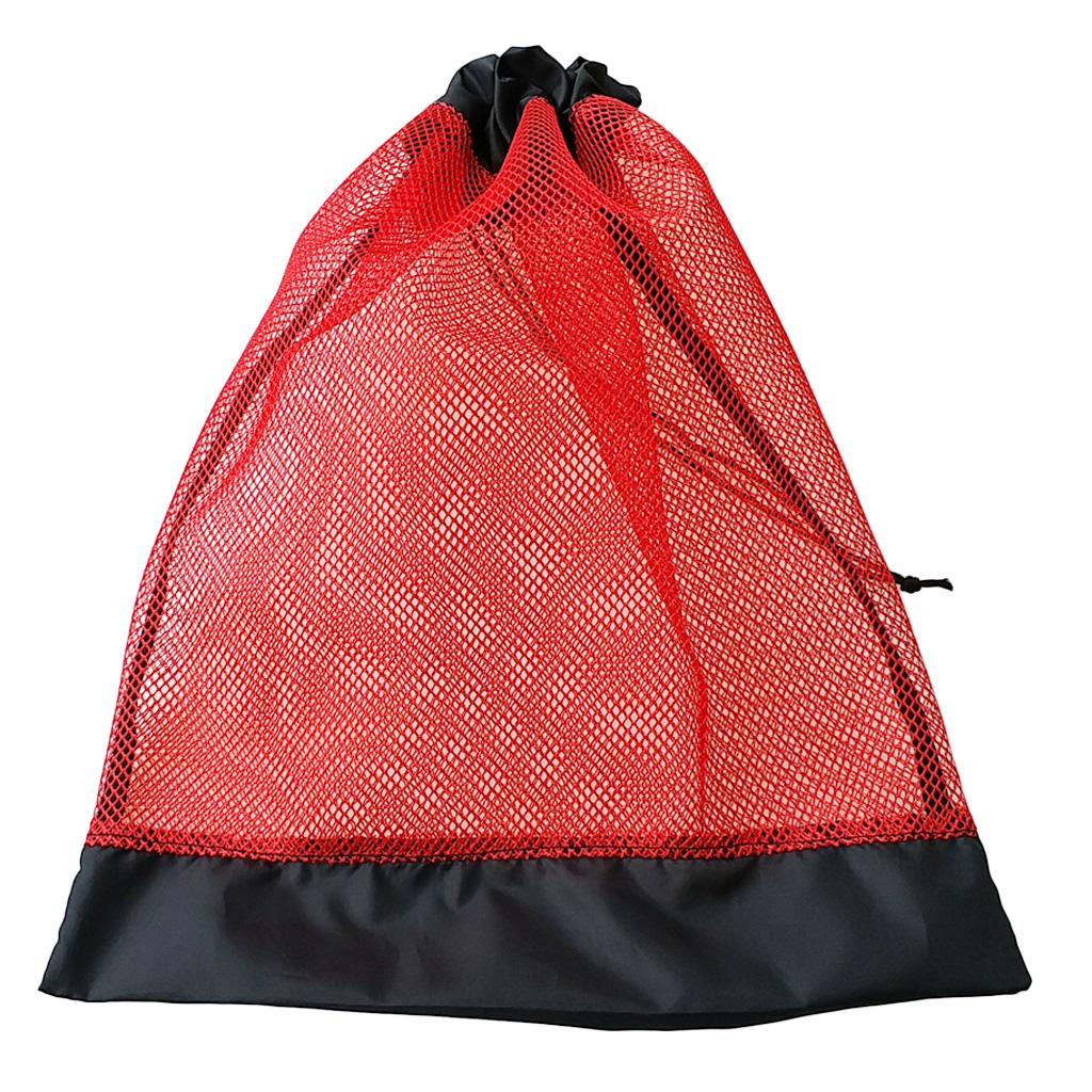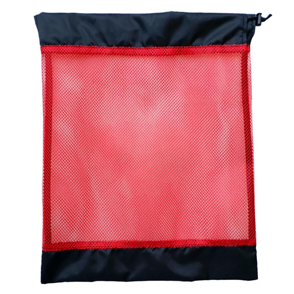 Mesh Drawstring Pouch Scuba Dive Mesh Bag Water Sport Storage Holder Red