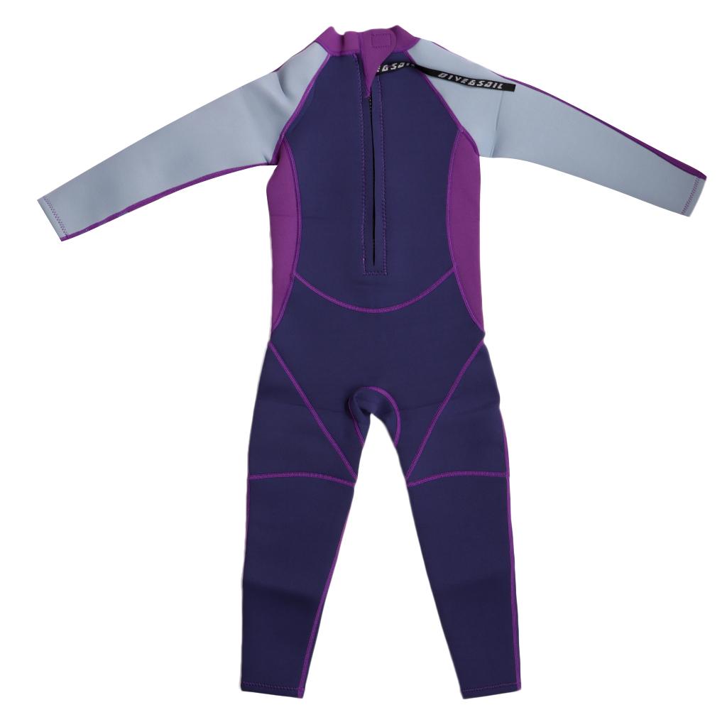 Neoprene Wetsuit Long Sleeve Full Body Swimsuit for Kids Black+ purple S