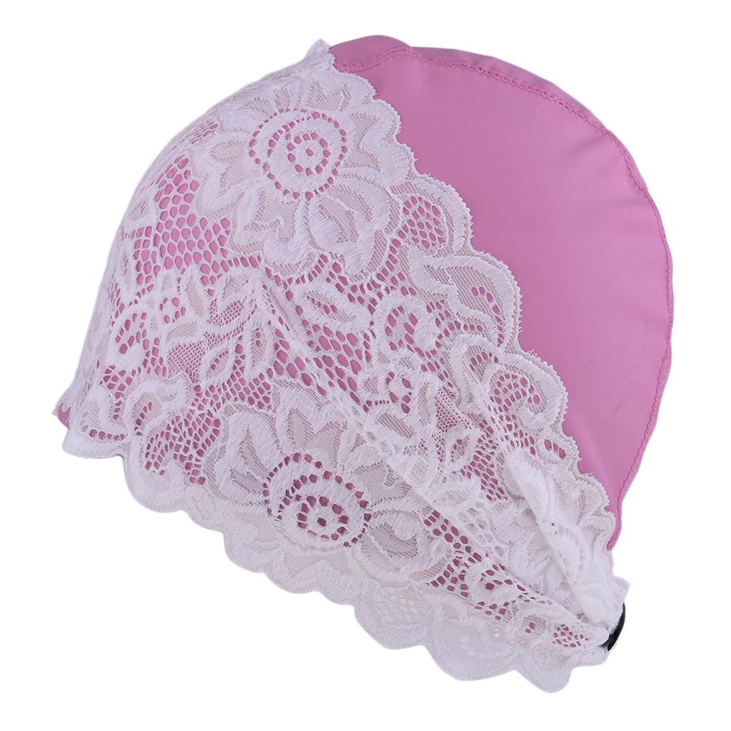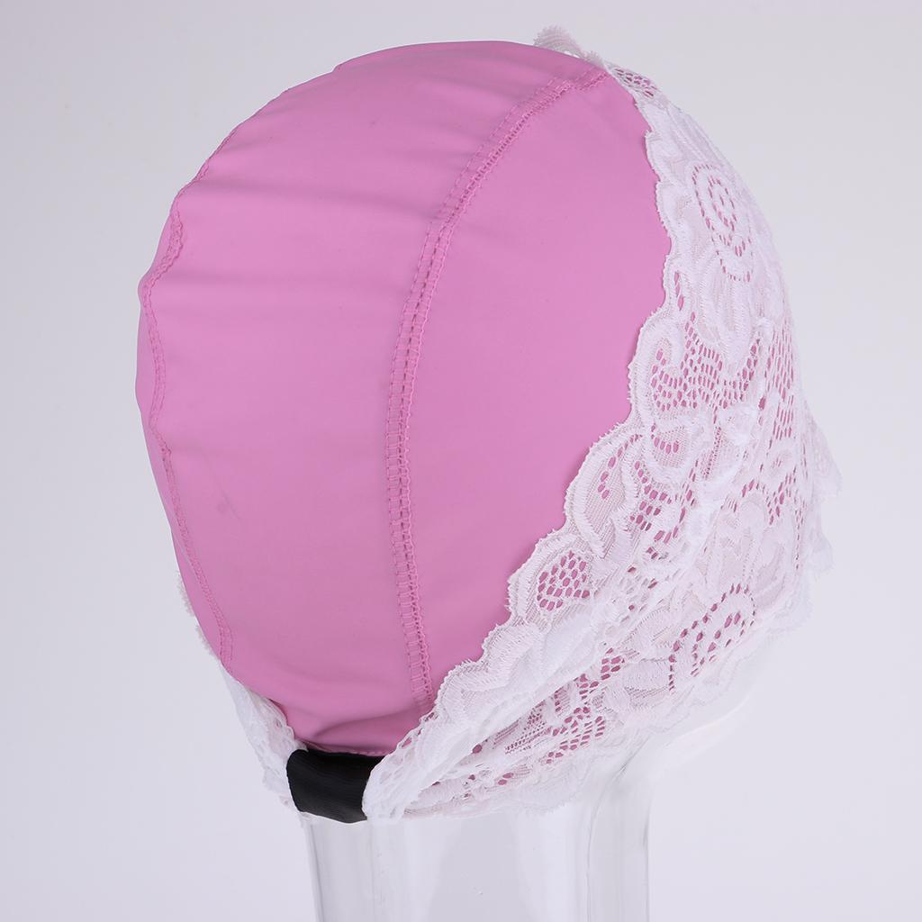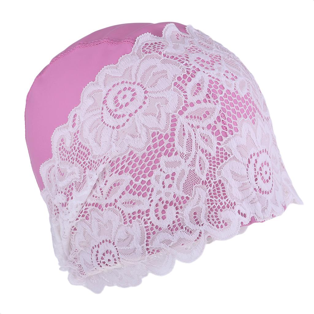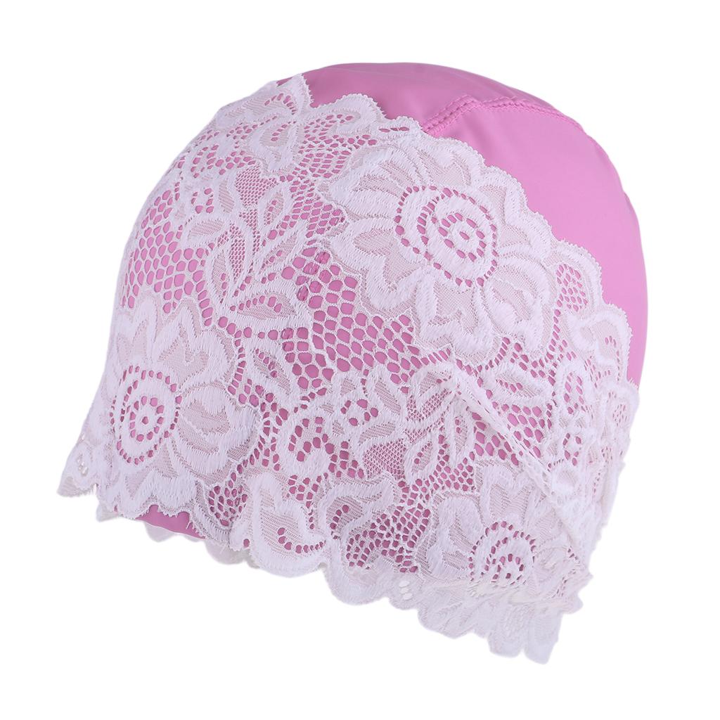 PU Waterproof Lace Cap Professional Swimming Cap Bath Hat Pink