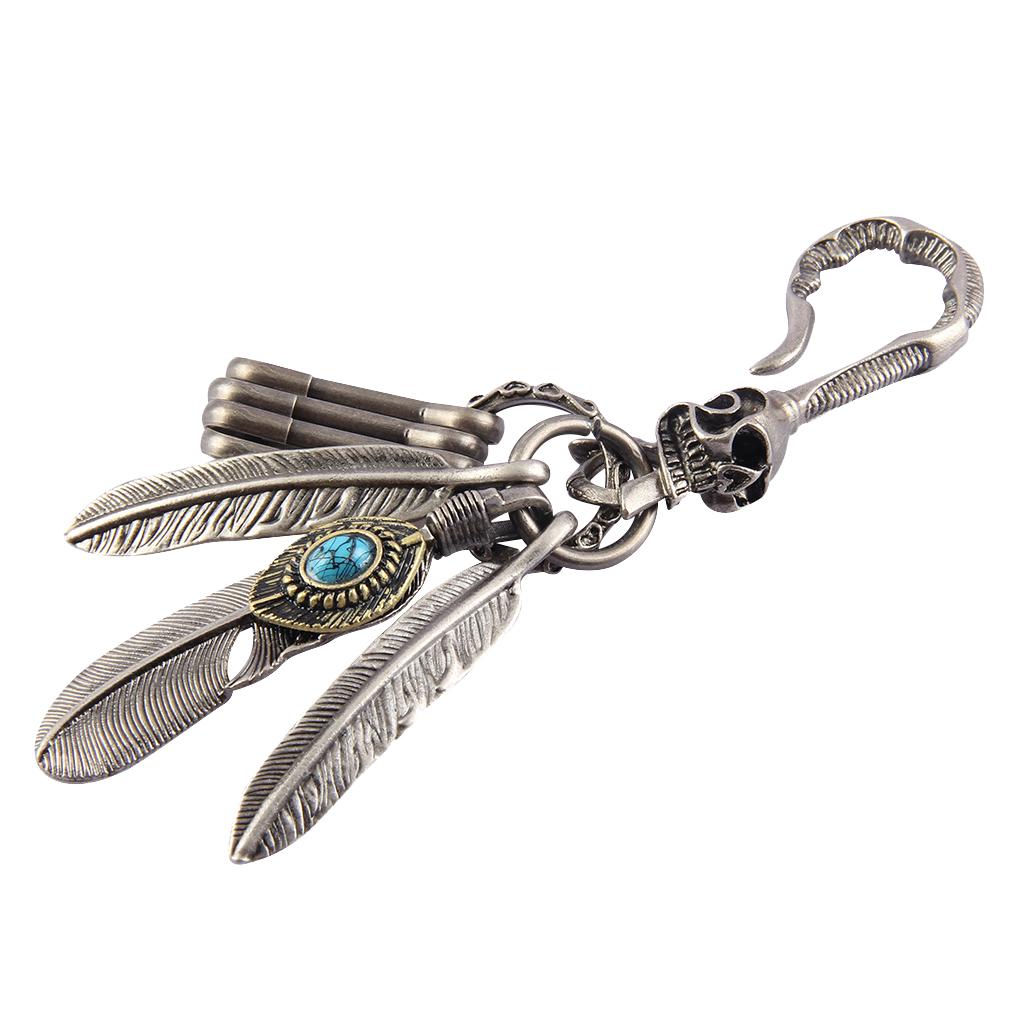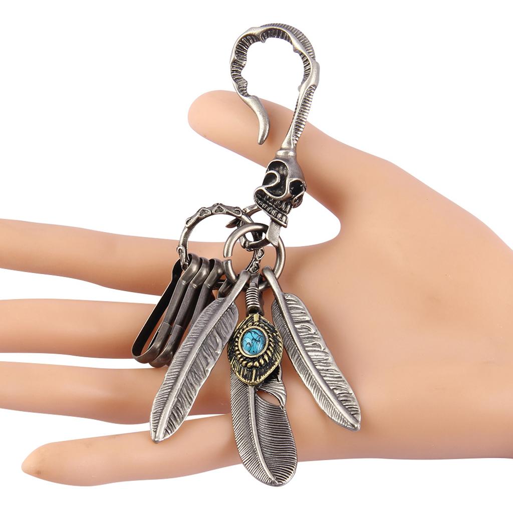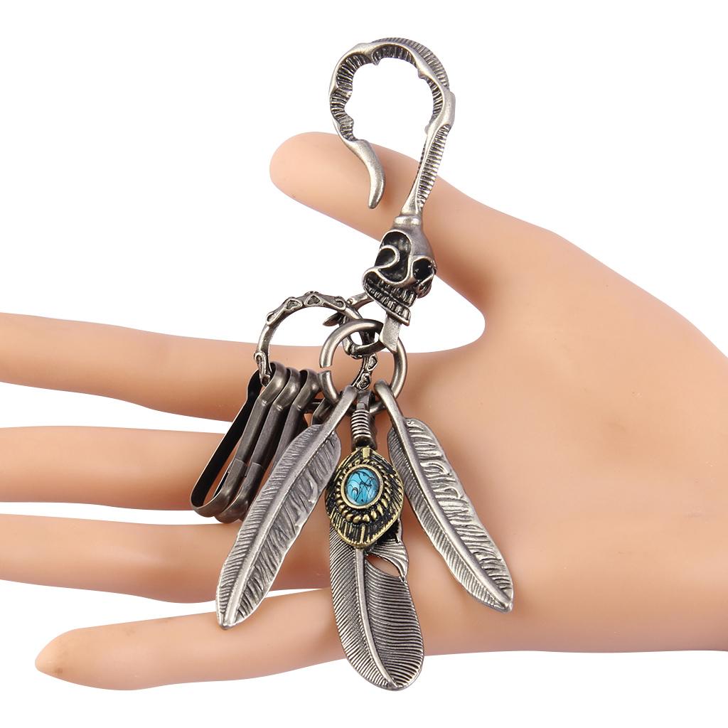 Retro Boho Cool Turquoise Punk Rock Keychain Ring Skull Lobster Claw Keyring