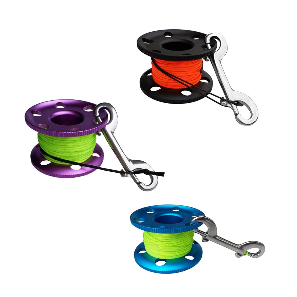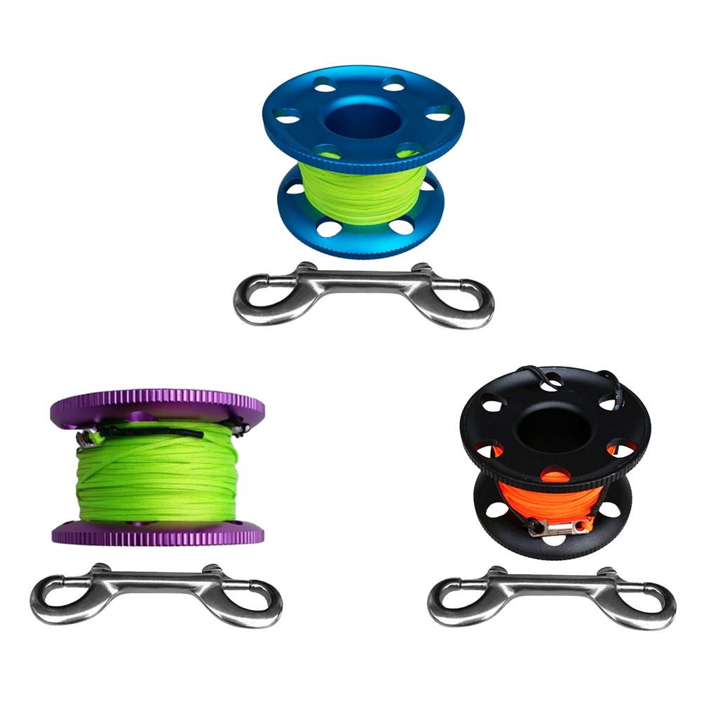 Scuba diving aluminum alloy finger spool reel with high visibility line in length 20m/66ft