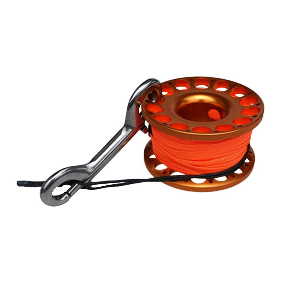 Scuba diving aluminum alloy compact finger spool reel with 15m/49ft high visibility wear-resistant line