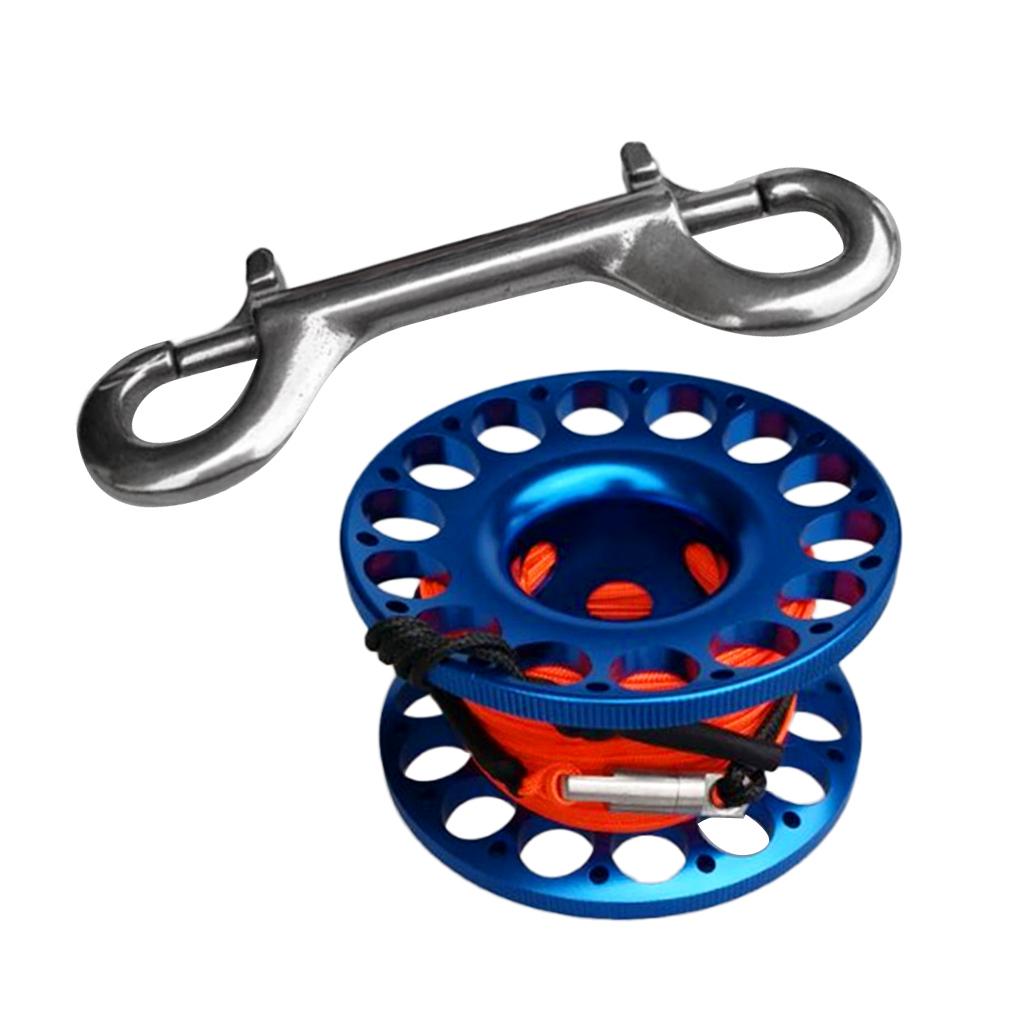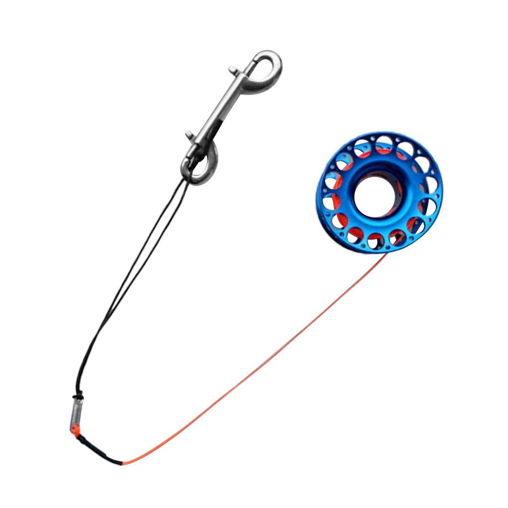 Scuba Diving Dive Aluminum Alloy Finger Reel Spool 30m Line Bolt Snap Blue