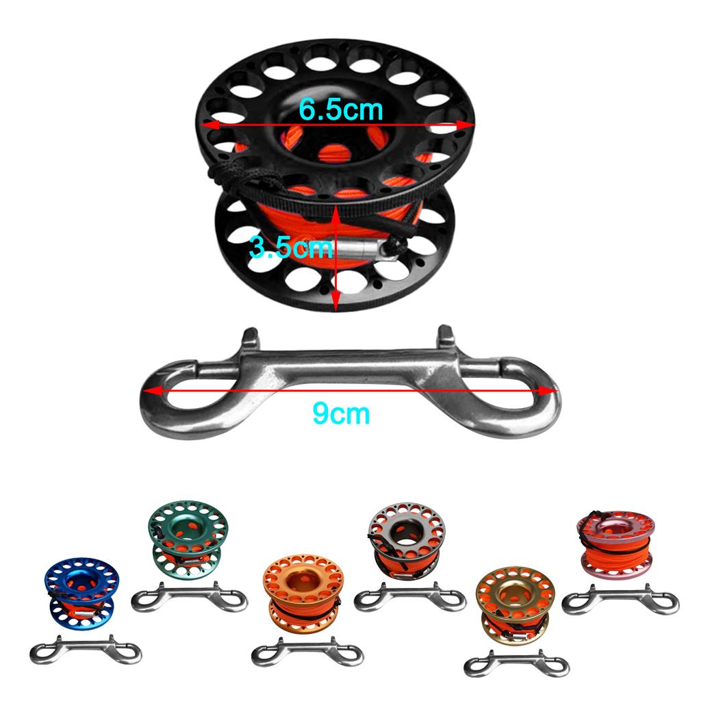 Scuba diving aluminum alloy compact finger spool reel with 30m/98ft high visibility wear-resistant line