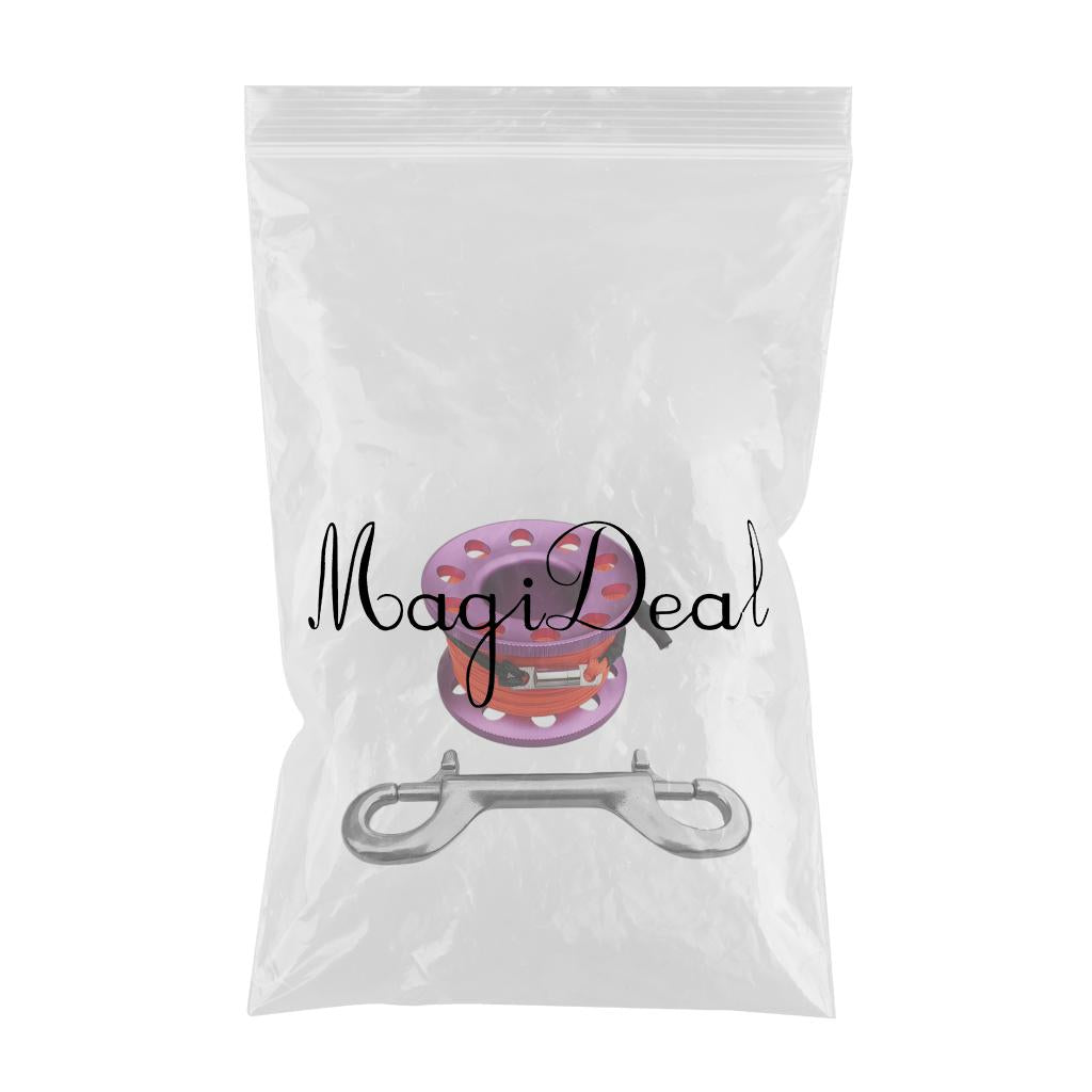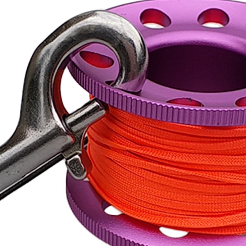 Scuba diving aluminum alloy finger spool reel with 15m/49ft high visibility orange wear-resistant line, small, compact, lightweight, durable and portable