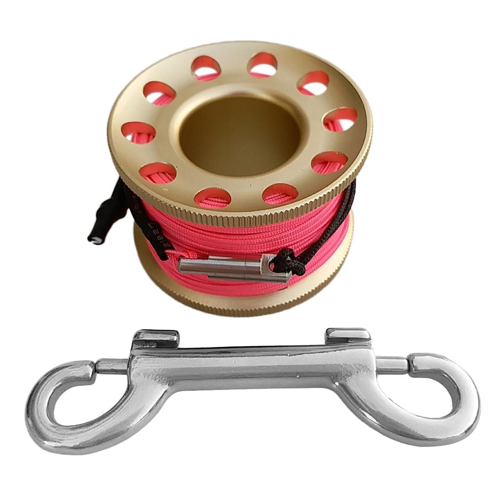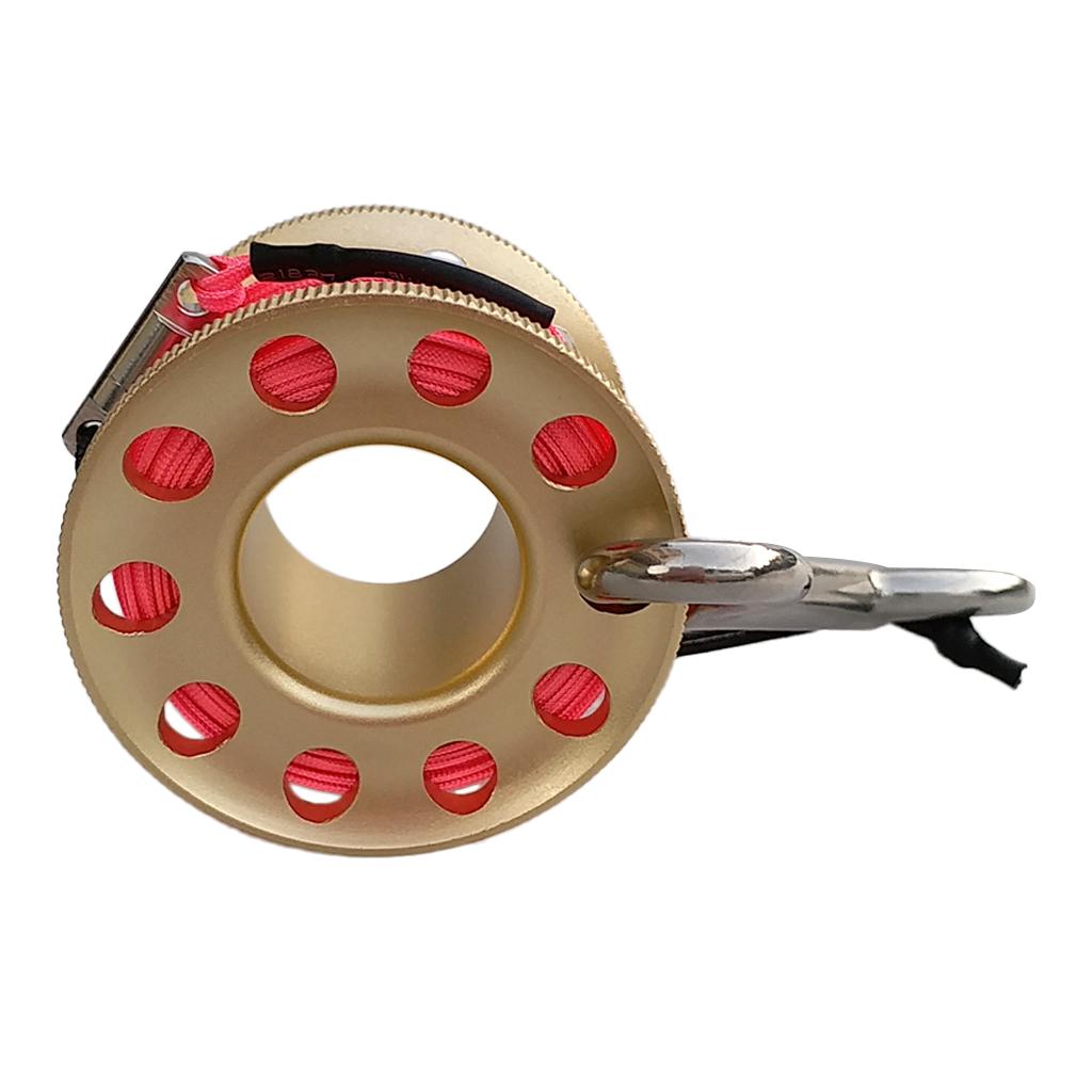 Scuba Diving Finger Reel Guide Spool 15m Line Dual Ended Bolt Snap Gold