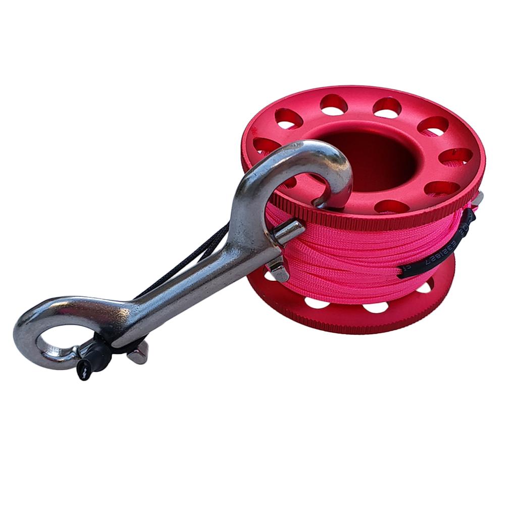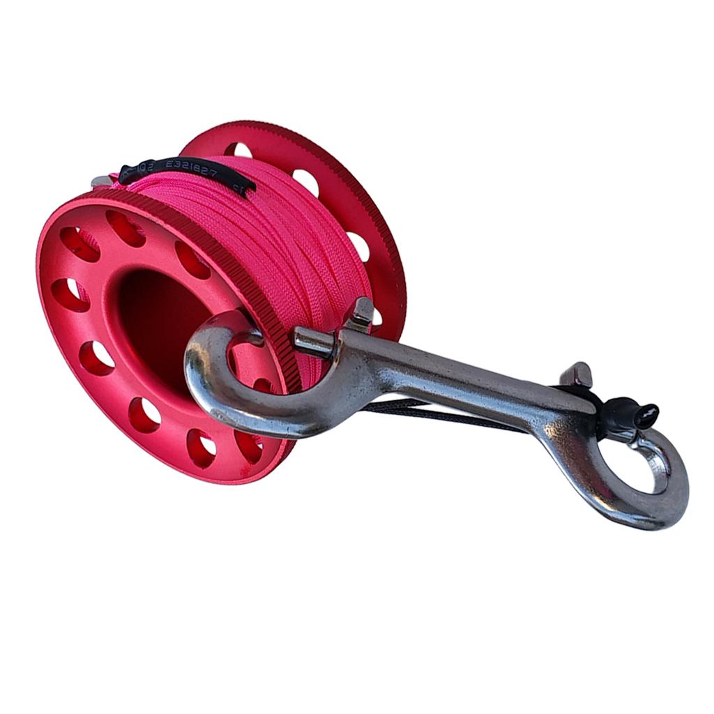 Scuba Diving Finger Reel Guide Spool 15m Line Dual Ended Bolt Snap Red