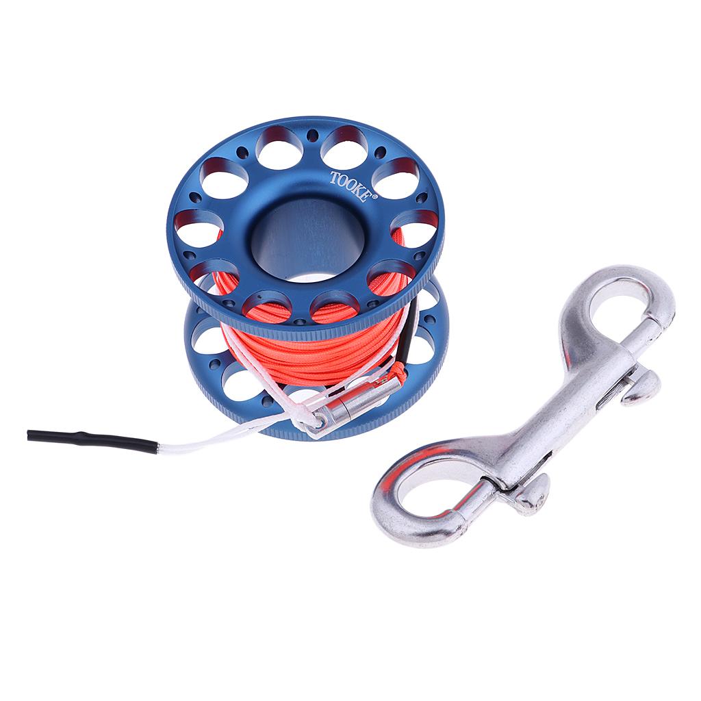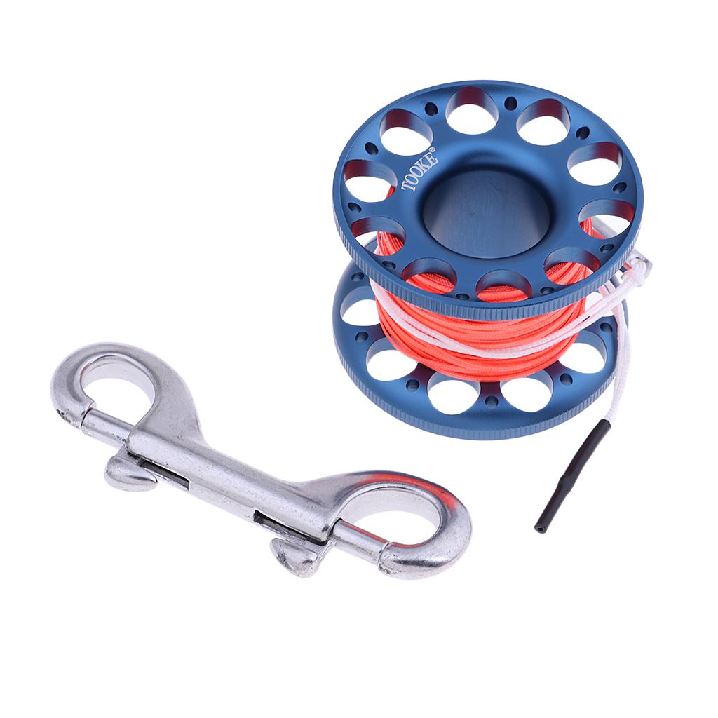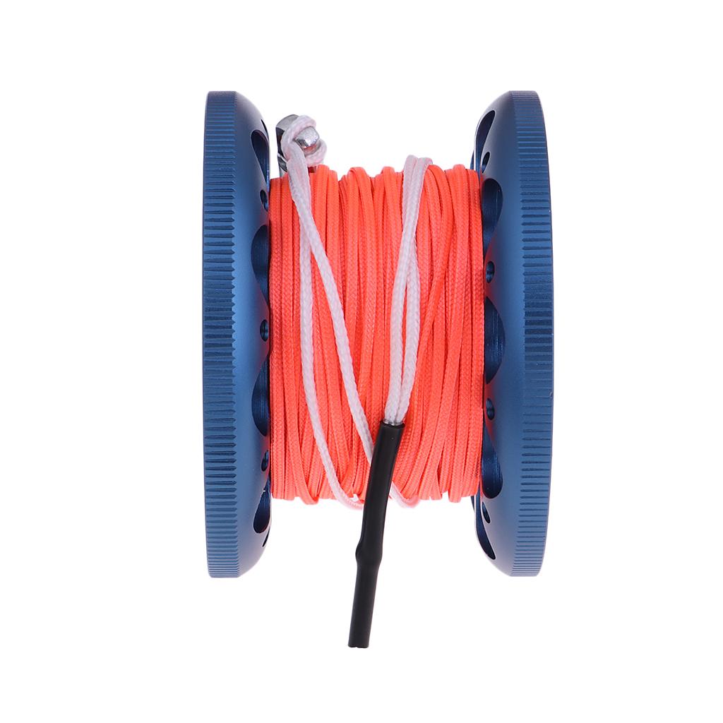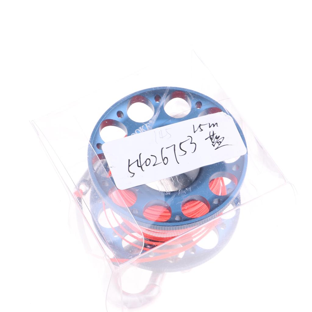 Scuba diving plastic compact finger spool reel with 15m high visibility line.